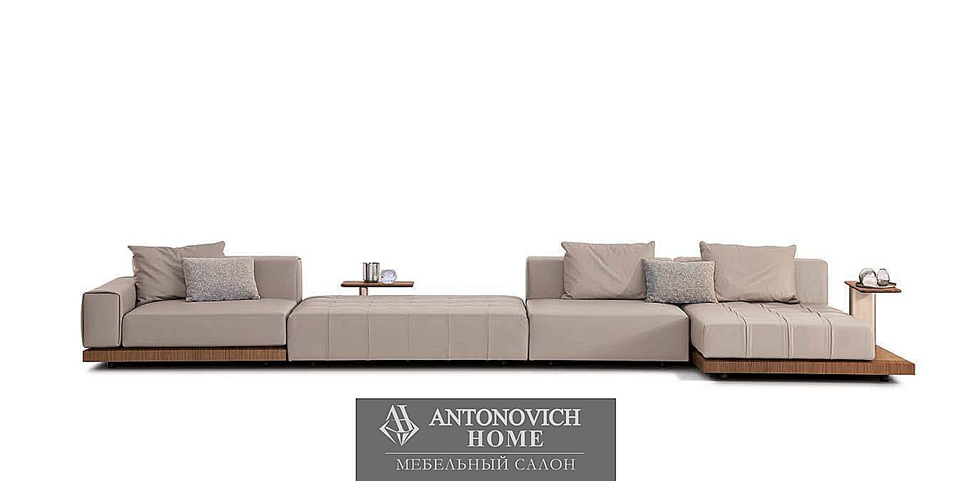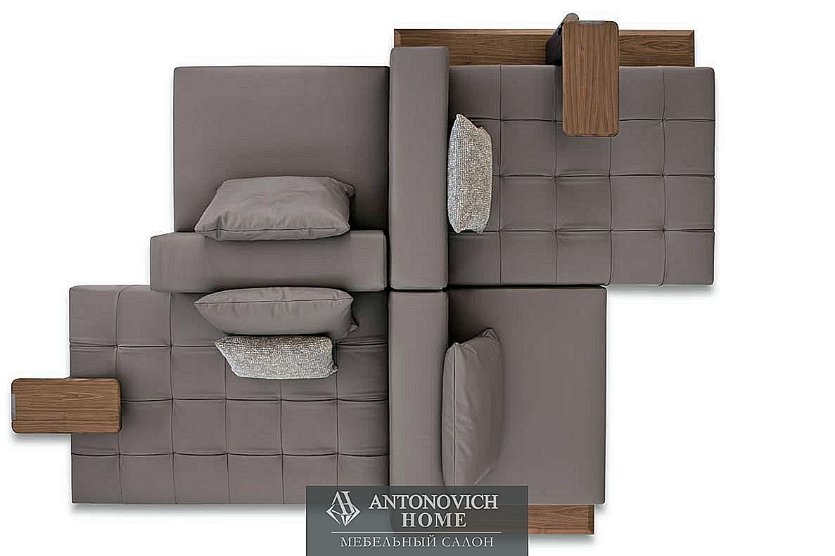 Универсальность — одна из сильных сторон BlackJa. Это диван, который разделен на несколько элементов, которые можно комбинировать друг с другом: сиденья со спинкой, пуф, шезлонг, бывают разные версии: с деревянной платформой или без нее, и могут быть подобраны различные комбинации.