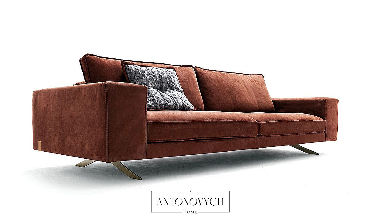 Диван на металлической основе с элегантным и легким дизайном доступен в различных вариантах отделки.