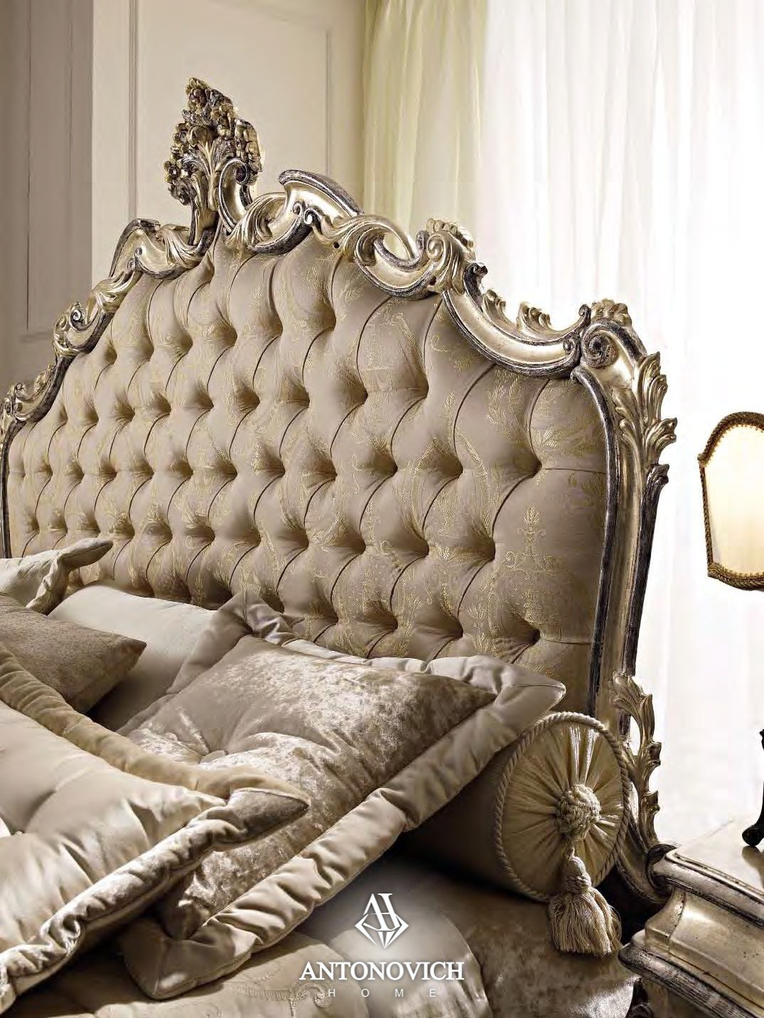 Бесконечность и очарование ночи, заключенные в извилистых барочных линиях ночных столиков и листьях, выполненных в стиле XIX века, обрамляющих изголовье кровати коллекции La notte.