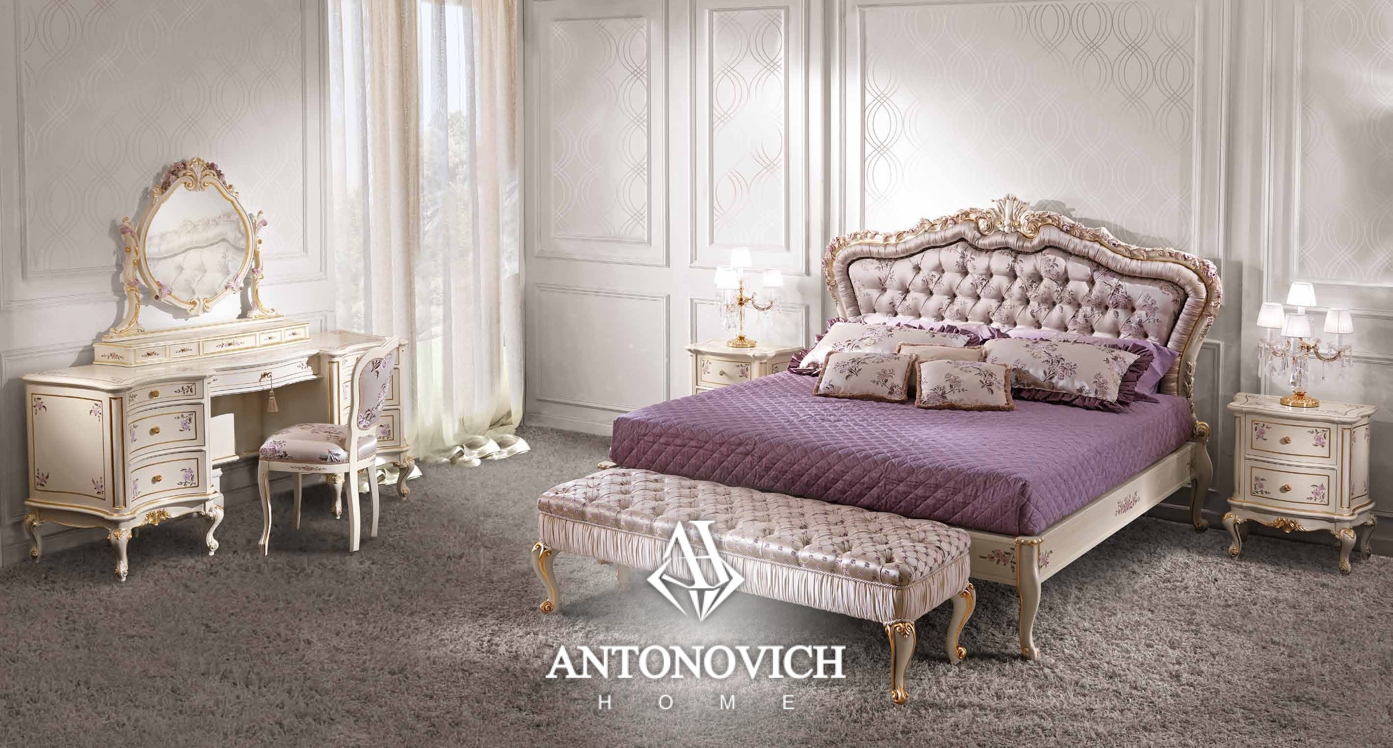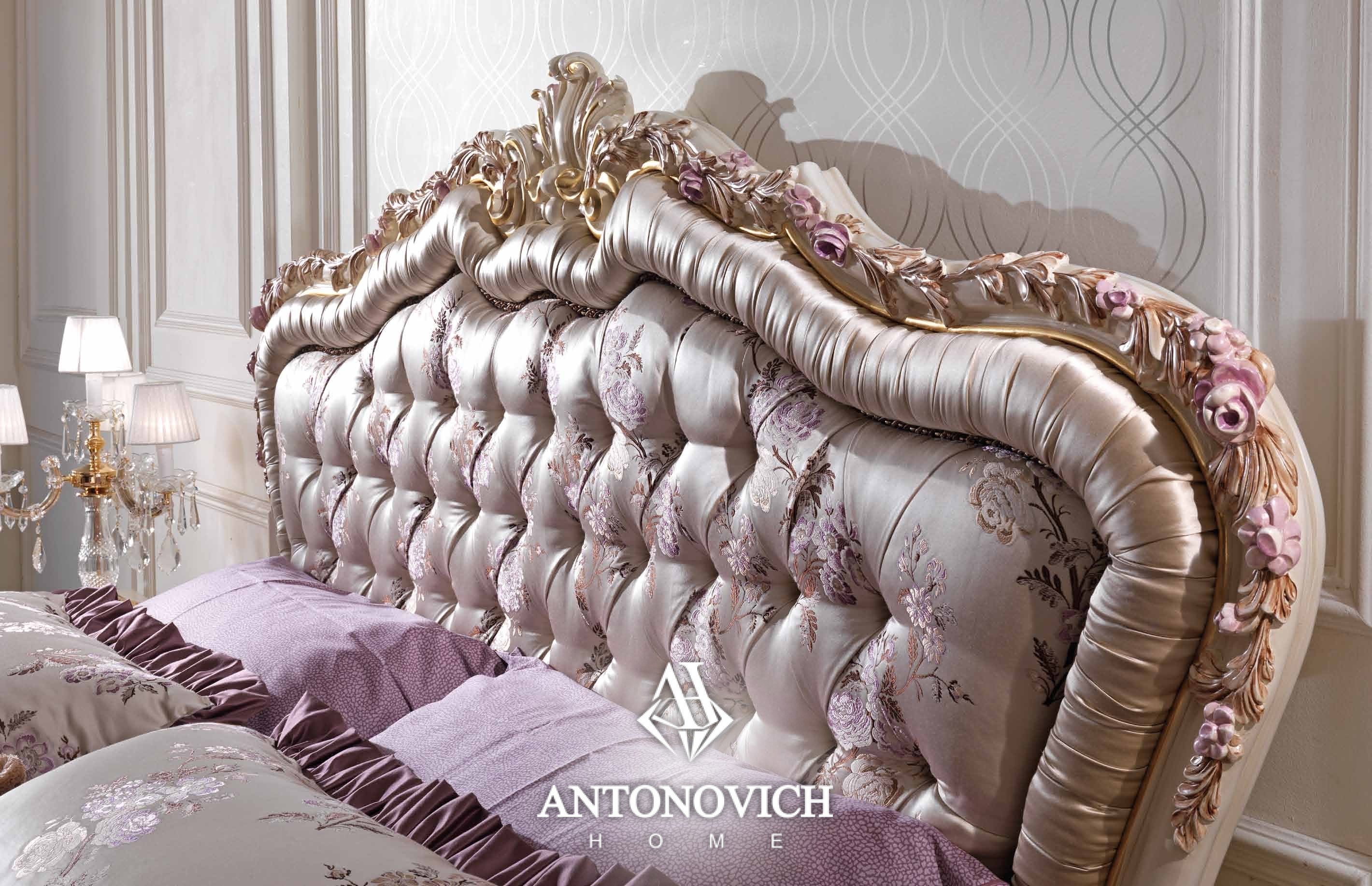Живописные формы, утончённый и романтичный резной декор на изголовье кровати, обивка капитоне придают мебели эмоциональную выразительность и королевский вид!