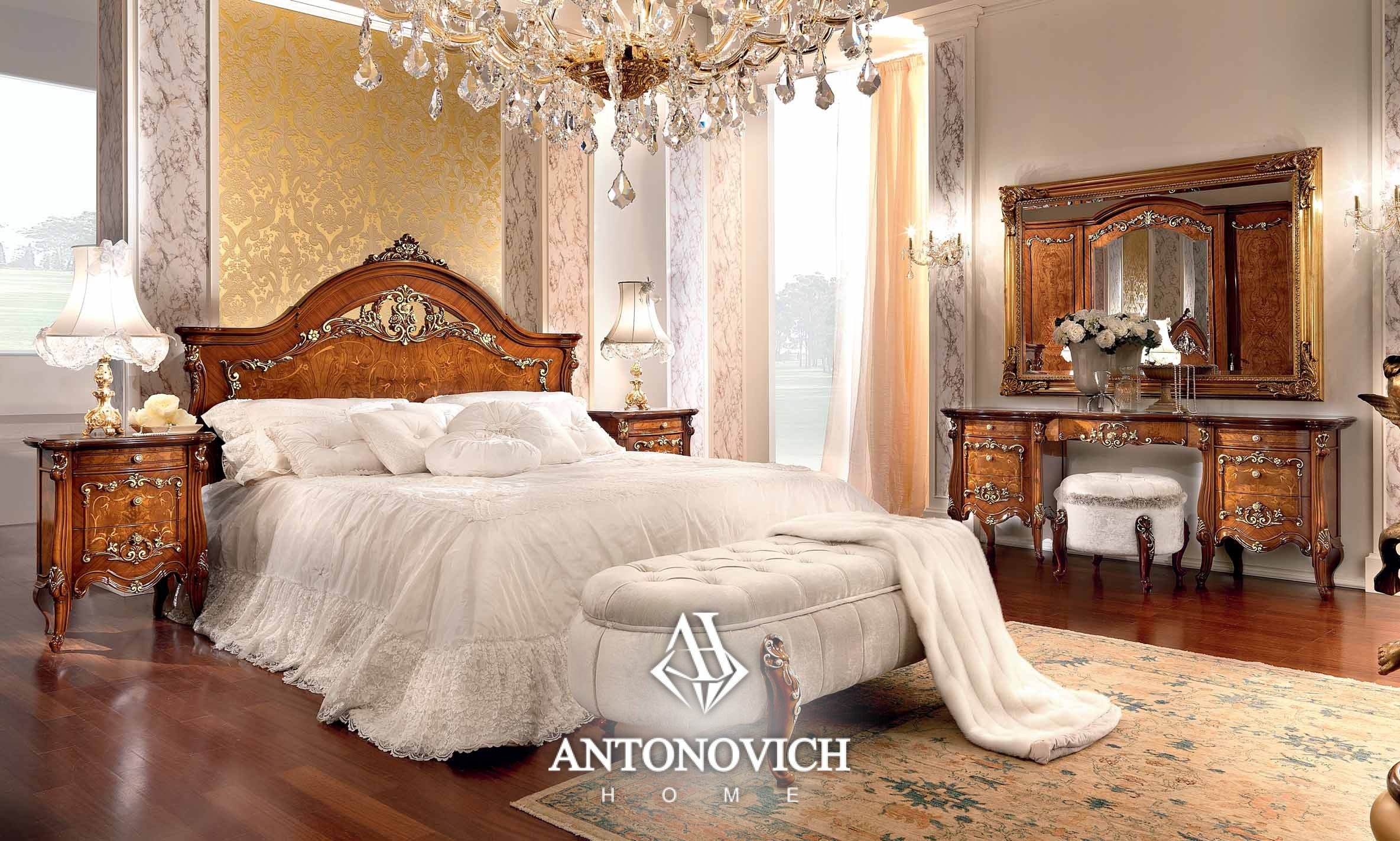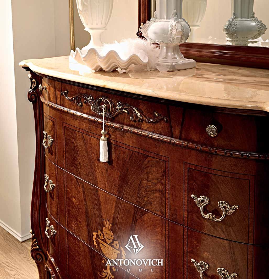 Утончённый декор подчёркивает художественную красоту спальных гарнитуров. Каждая деталь несёт на себе отпечаток мастерства итальянских краснодеревщиков.