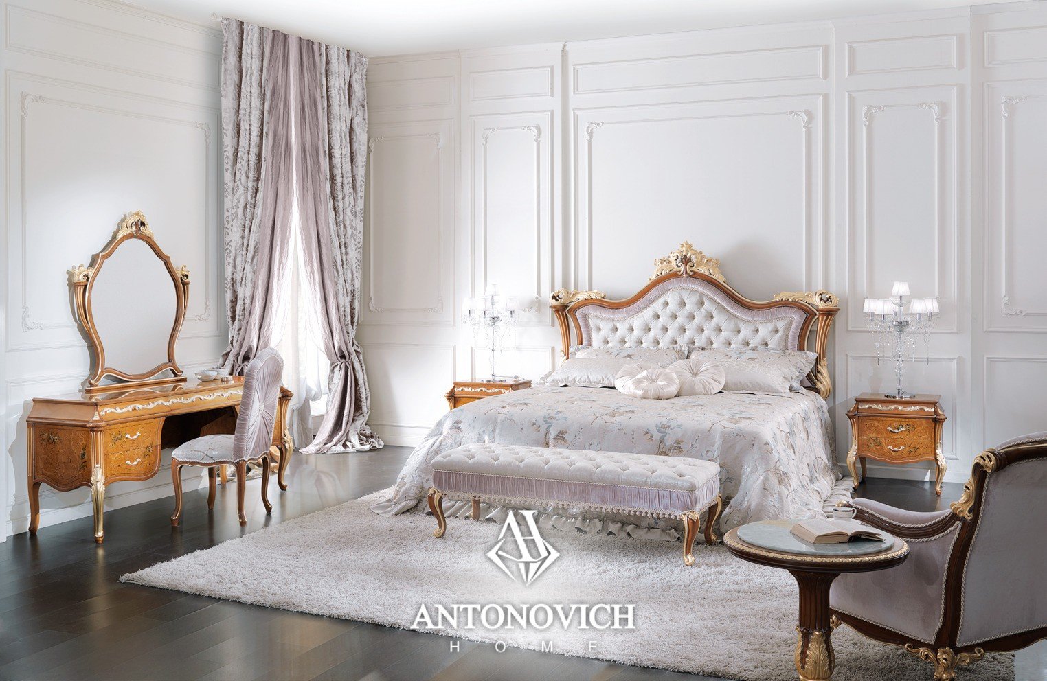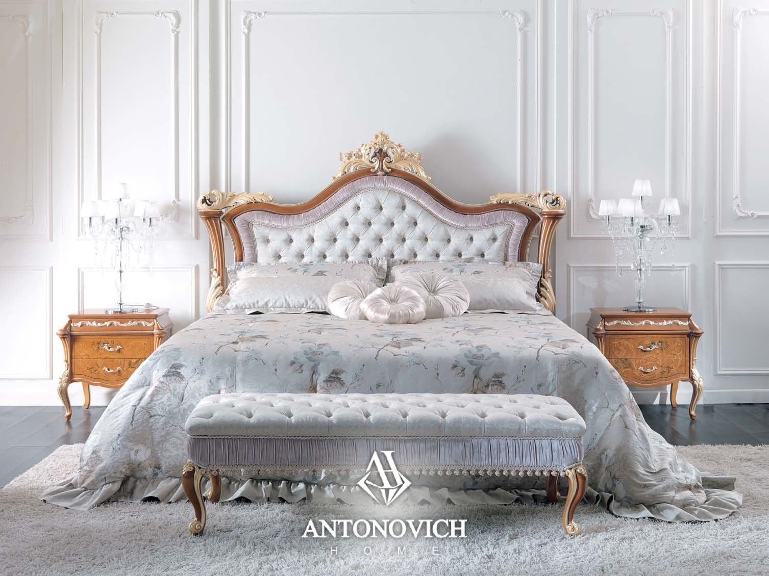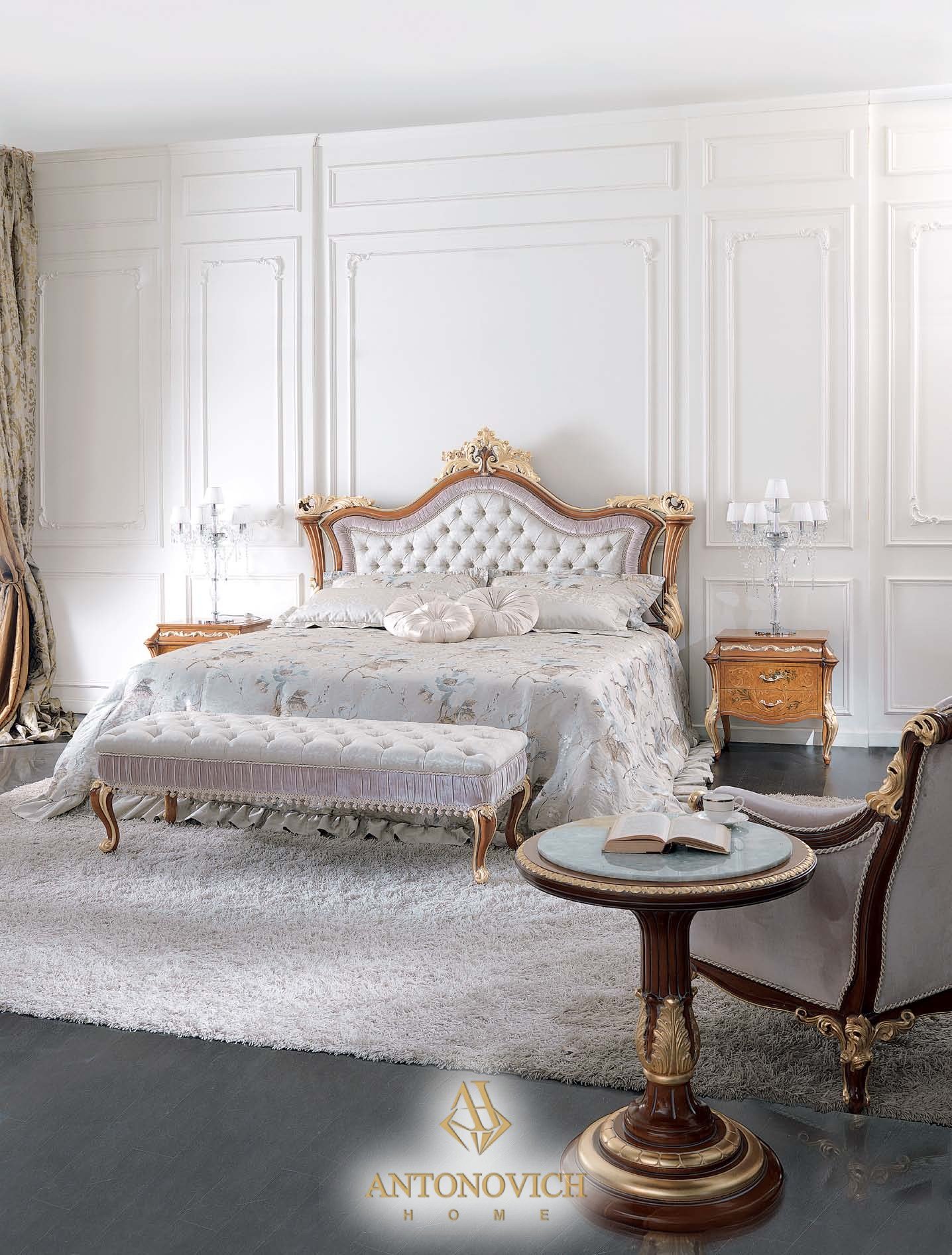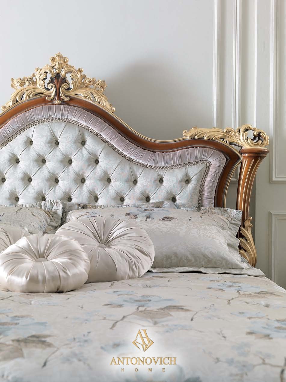Живописные формы, утончённый и романтичный резной декор на изголовье кровати, обивка капитоне придают мебели эмоциональную выразительность и королевский вид!