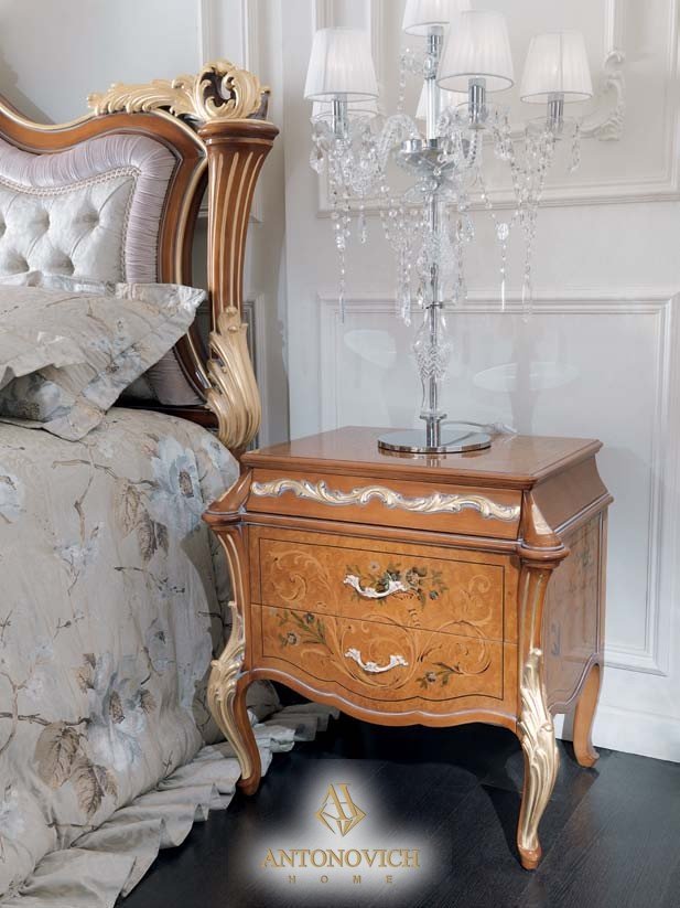 | Прикроватная тумба CEPPI, орех, золотые детали, инкрустация | Д 66 Г 47 В 65 |