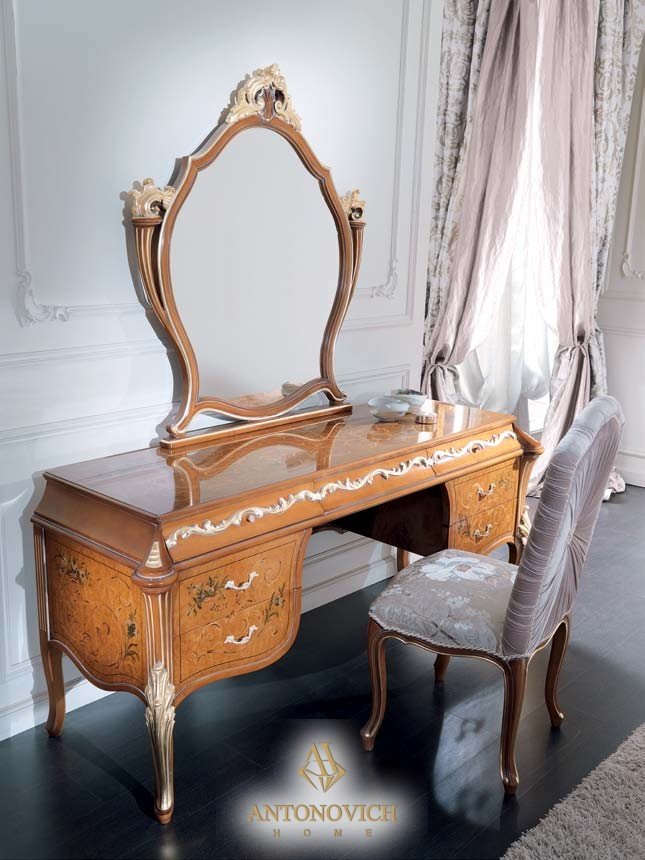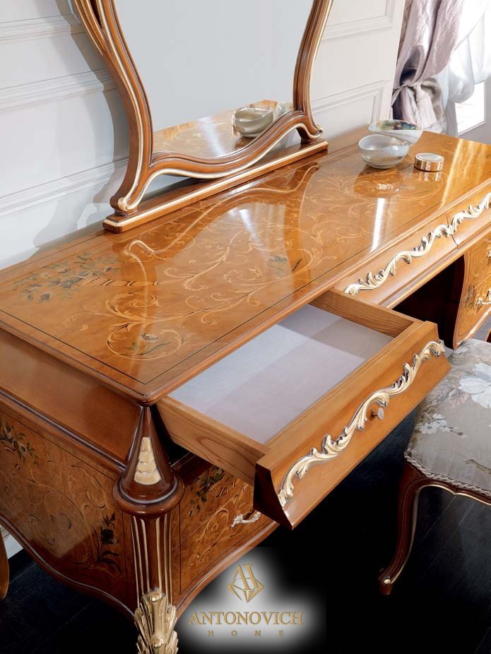 | Туалетный столик CEPPI, 7 ящиков, орех, золотые детали, инкрустация | Д 184 Г 61 В 80 |