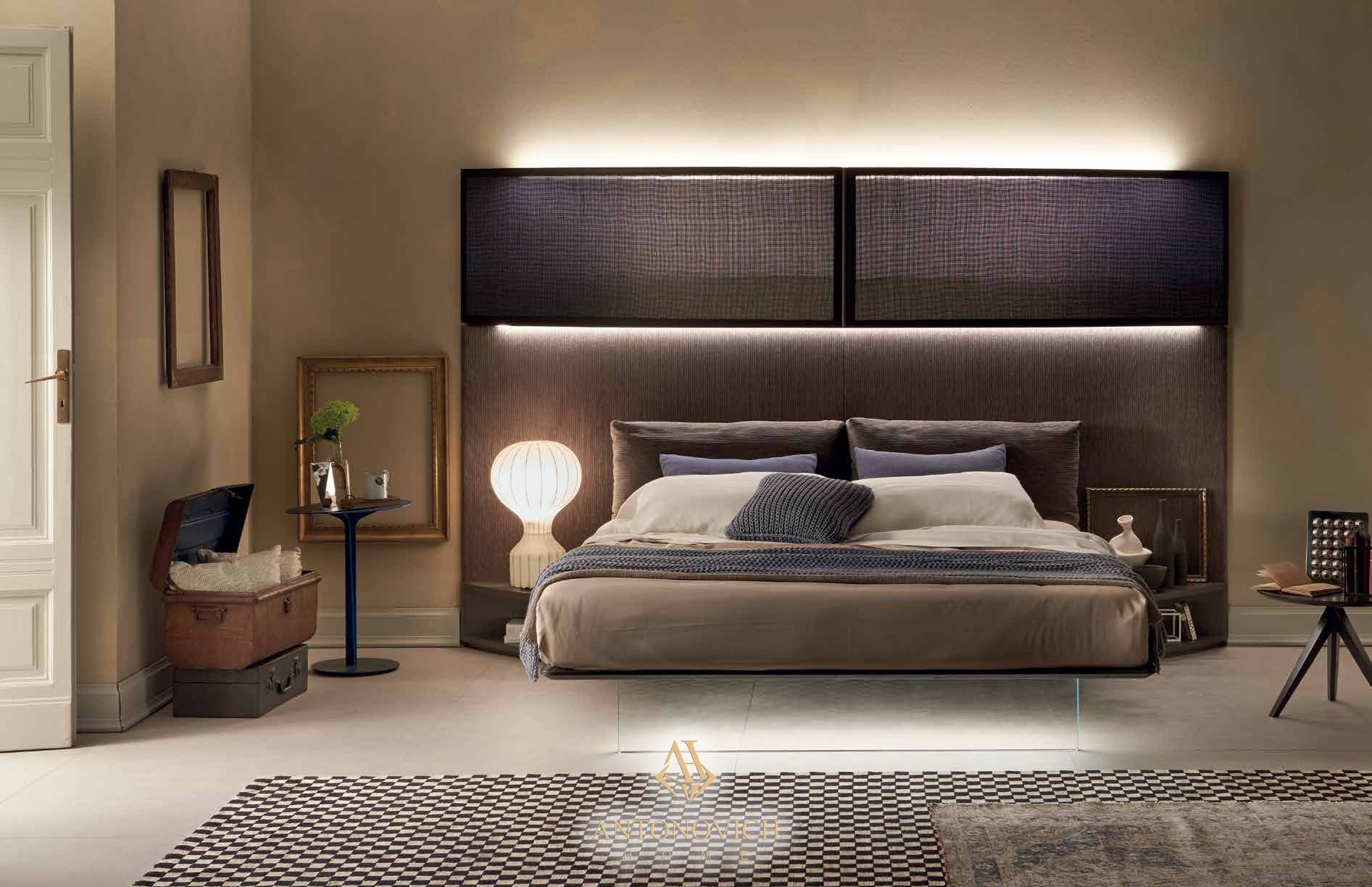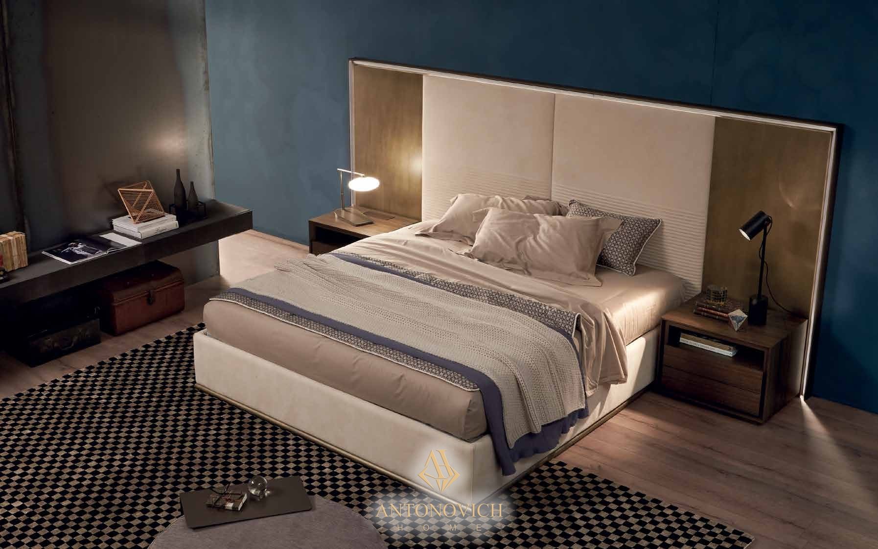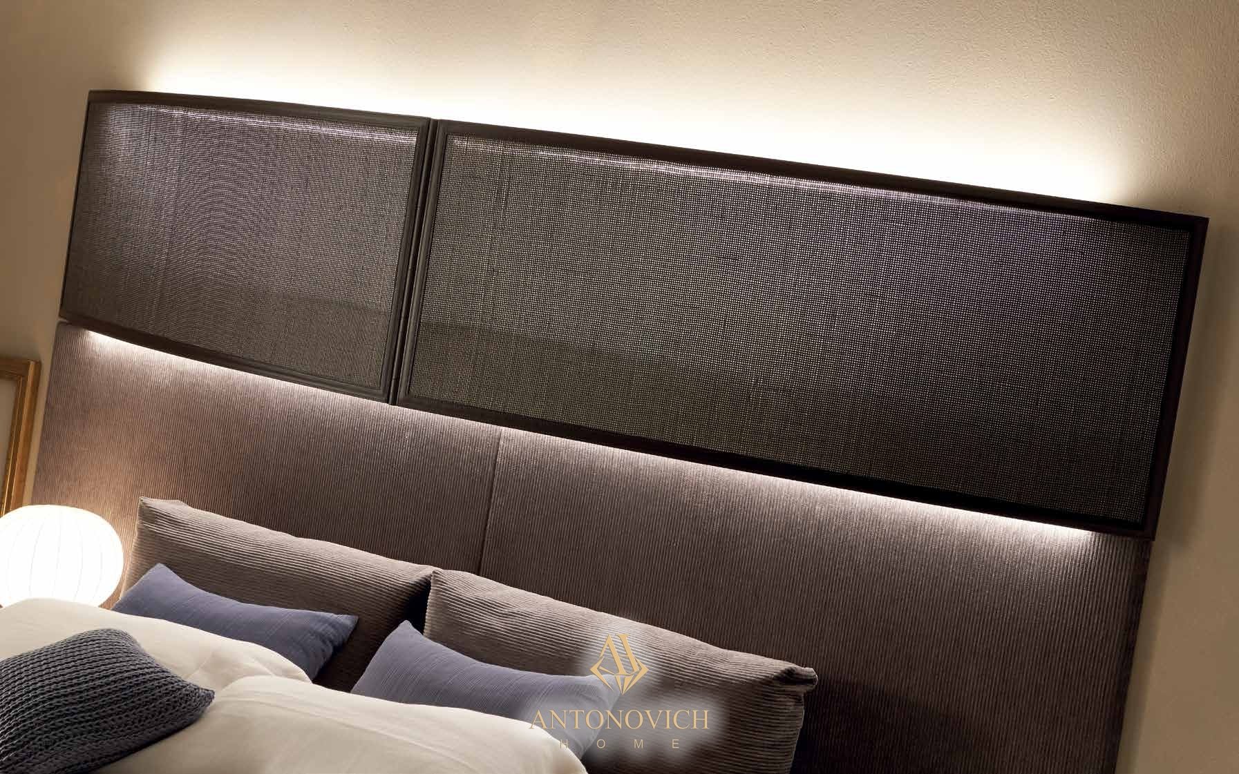 Кровать Frame: Роскошное изголовье кровати Frame с подсветкой Led, прекрасно сочетает в себе такие отделки как: крашенная состаренная бронза, нубук и массив дерева.