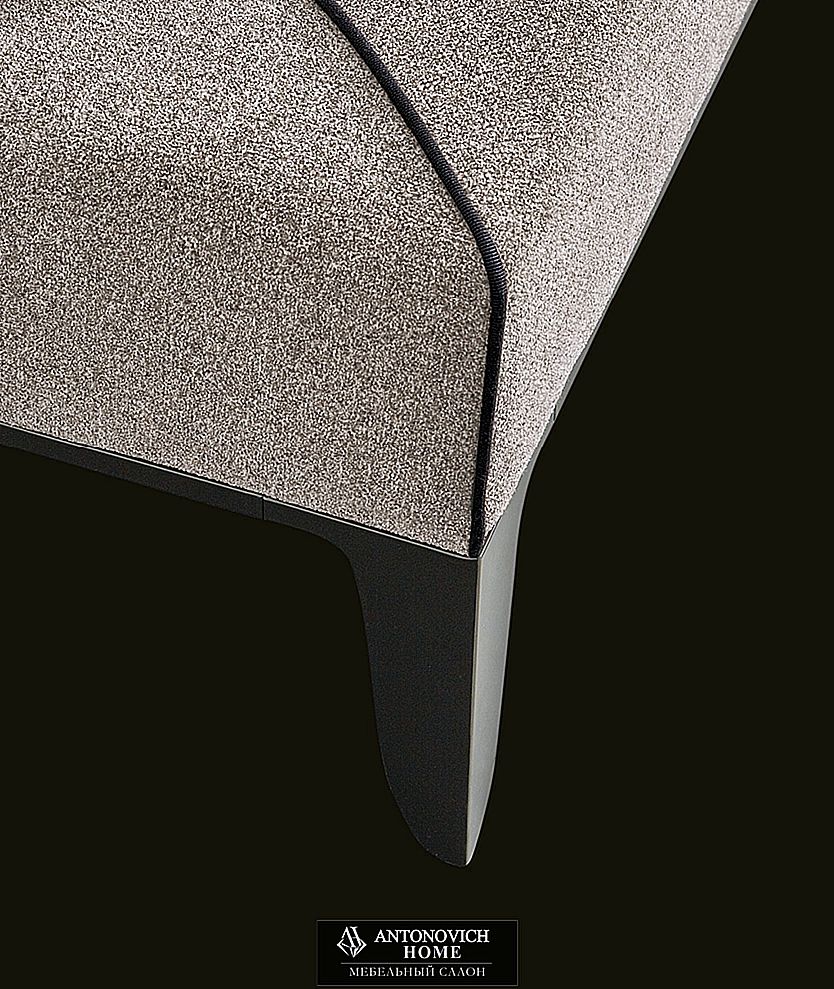 Главным героем серии Gentleman Night Collection выступает кровать, которая перекликается с настроением и эстетикой коллекции мебели для гостиной. Плавные линии широкого изголовья, которое украшают изысканные детали, например окантовка периметра репсовой лентой, напоминают приподнятый воротник пиджака. Кровать возвышается на тонкой и элегантной ножке с никелированной отделкой темного цвета или цвета шампанское.