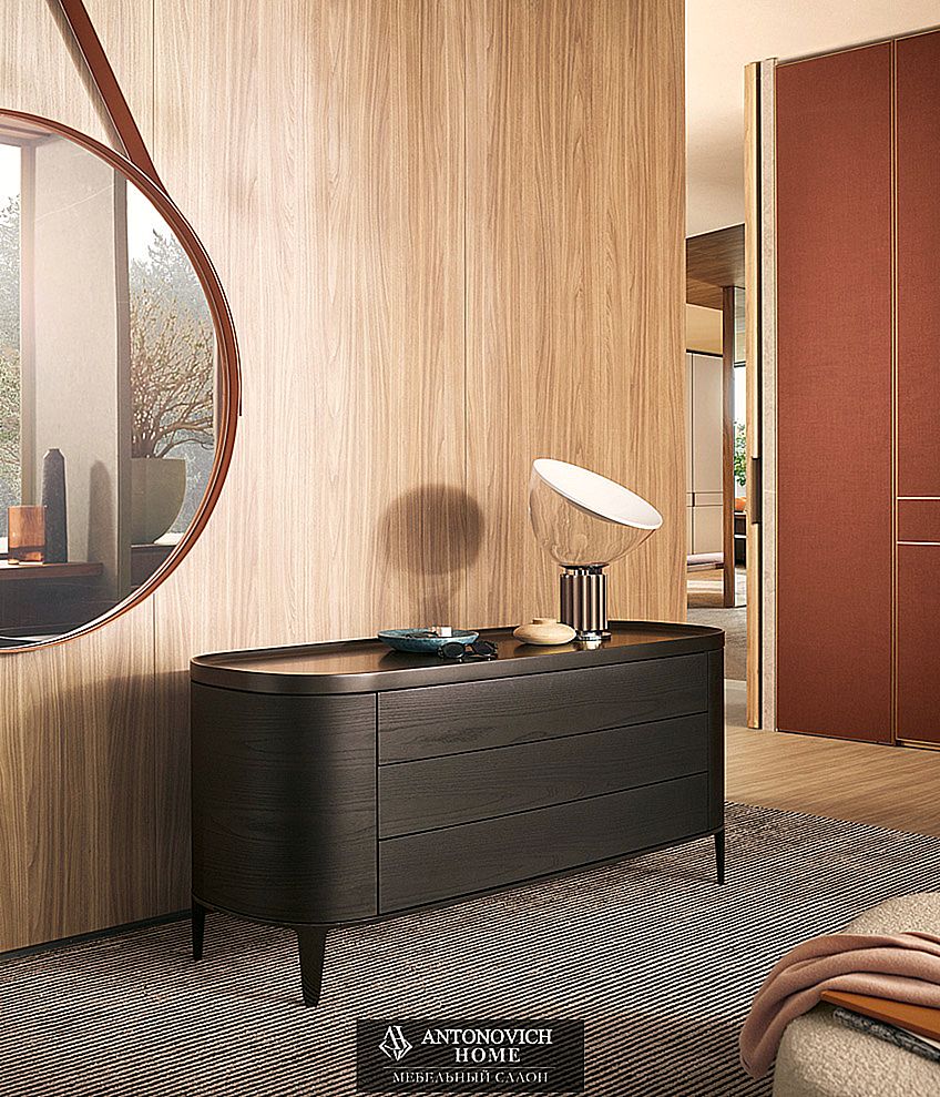 Элегантные линии прикроватных тумбочек и комодов Gentleman привносят в спальню естественное благородство души и эстетическую изысканность настоящего джентльмена. Прикроватные тумбочки, приподнятые над землей на легких ножках, характеризует классический стиль и внимание к деталям. Завершает коллекцию для спален комод с изогнутыми плавными линиями. Этот элемент способен соединить различные элементы воедино, придавая всей коллекции единое стилевое направление.