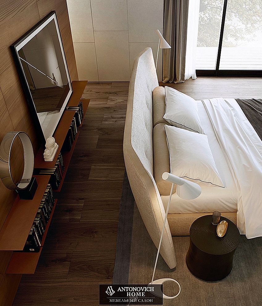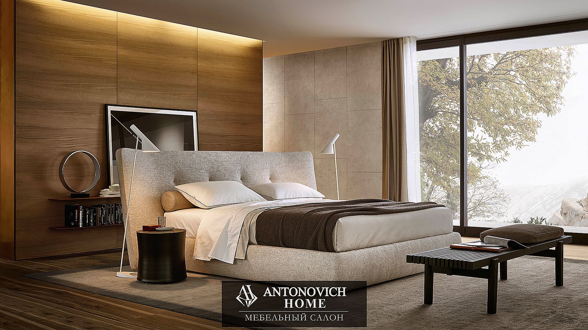 Просторная современная кровать с элегантным мягким изголовьем, напоминающим лацканы мужского пиджака. Кровать Rever от Poliform разработана специально, чтобы стать главным героем спальни, и лучше всего смотрится в центре комнаты. Наклонное изголовье и изысканная отделка фронтальной части «каретной стяжкой» легкого контрастного цвета подчеркивают исключительный дизайн кровати. Кровать полностью обтянута текстилем или кожей, а также дополнена деталями с отделкой из кожи Nabuk. Кровать Rever доступна с жестким, анатомическим или складным основанием с контейнером.