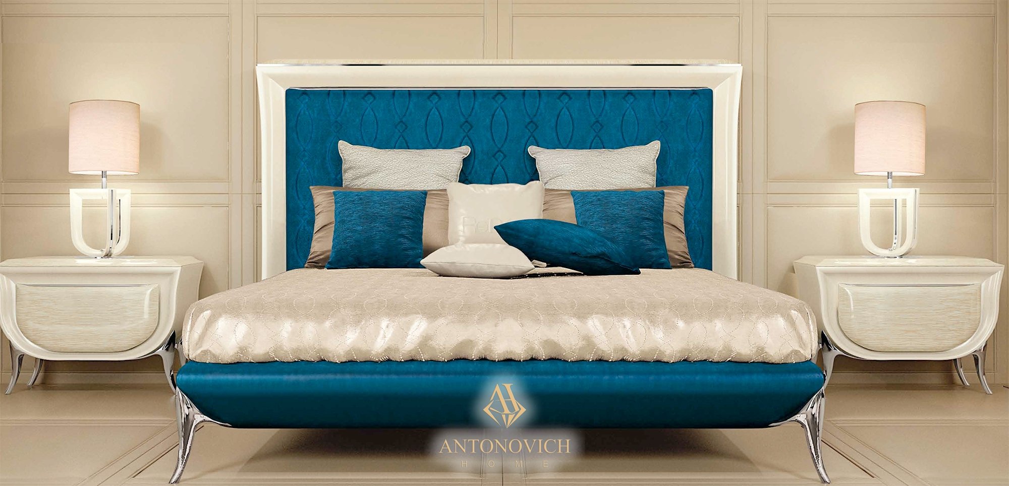 Строгие линии и формы кровати коллекции Trilogy с лакировкой из натурального перламутра поражают своей элегантностью, изголовье, украшенное изысканной стёганой обивкой, перекликается по цвету с покрывалом.