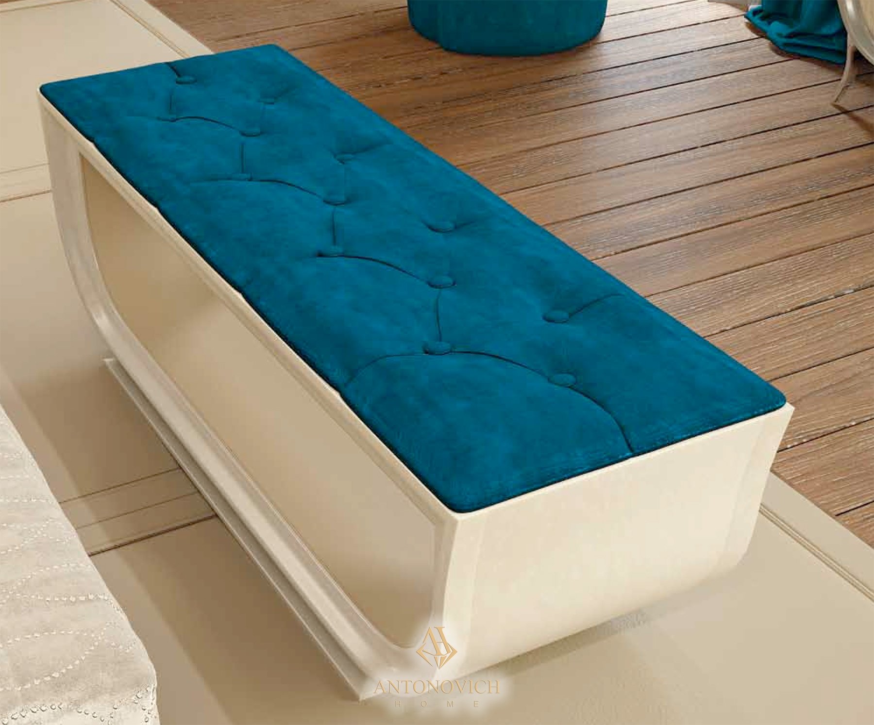 Элегантная банкетка с пикированной сидушкой и кожаной обивкой внутри.