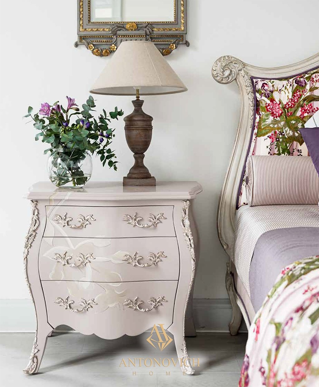 | Прикроватная тумбочка Salda с 3 выдвижными ящиками, декорирована резьбой и росписью | Д 72 Ш 42 В 67 |