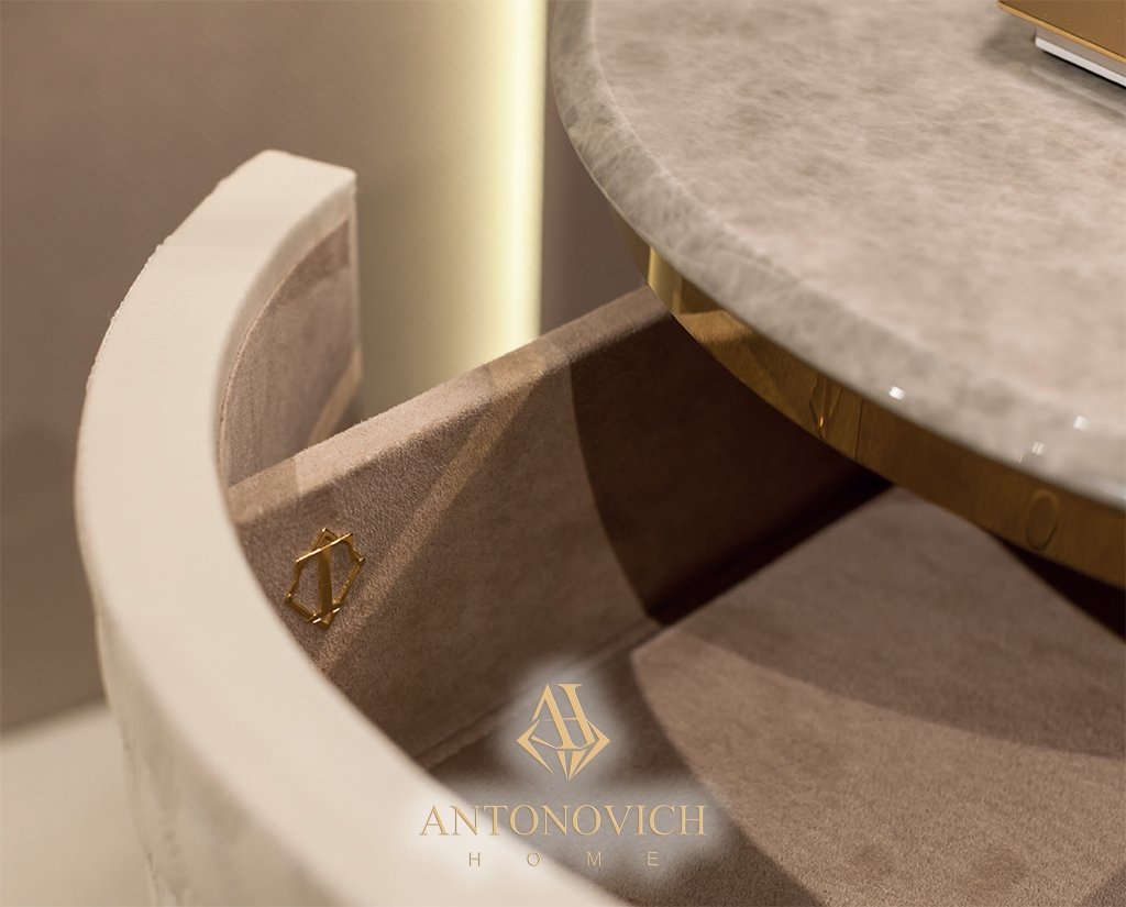 Рафинированная отделка кожей и экзотическим деревом, изысканное тиснение и позолоченные логотипы компании, фурнитура и основание создают богемный образ коллекции, уже полюбившейся во всём мире почитателями эксклюзивной мебели.