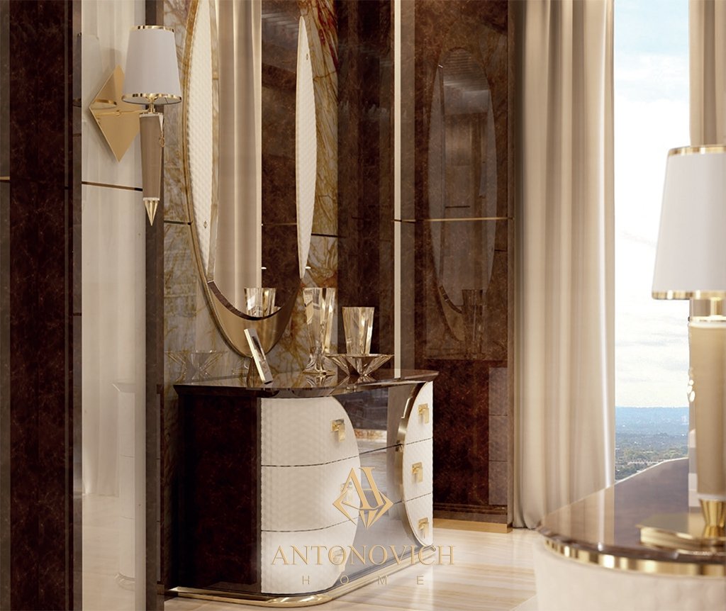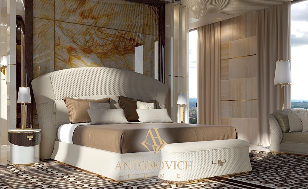 Особенно прекрасна величественная кровать коллекции Vogue, которая вместе с остальными элементами спальной комнаты создаёт гламурную атмосферу, пропитанную роскошью.