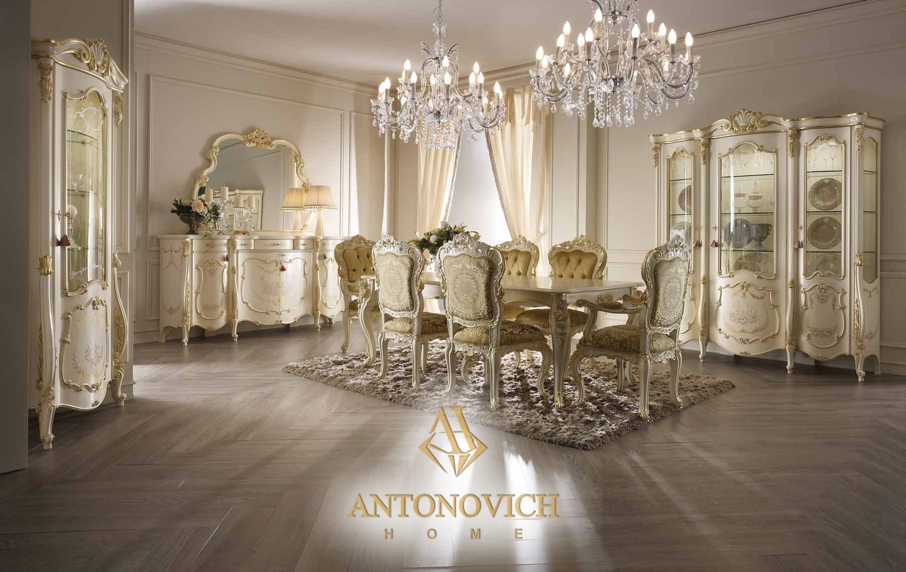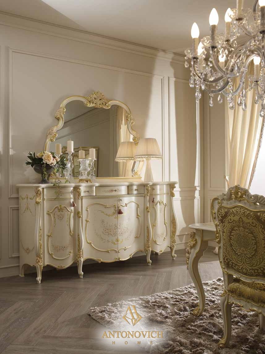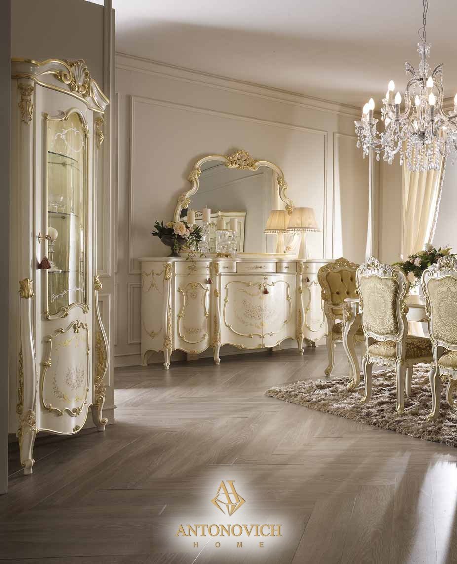 Итальянская столовая Monnalisa фабрики Alberto Mario Ghezzani богатым декором и грациозными линиями отражает, как нельзя лучше, безупречный вкус её обладателей.