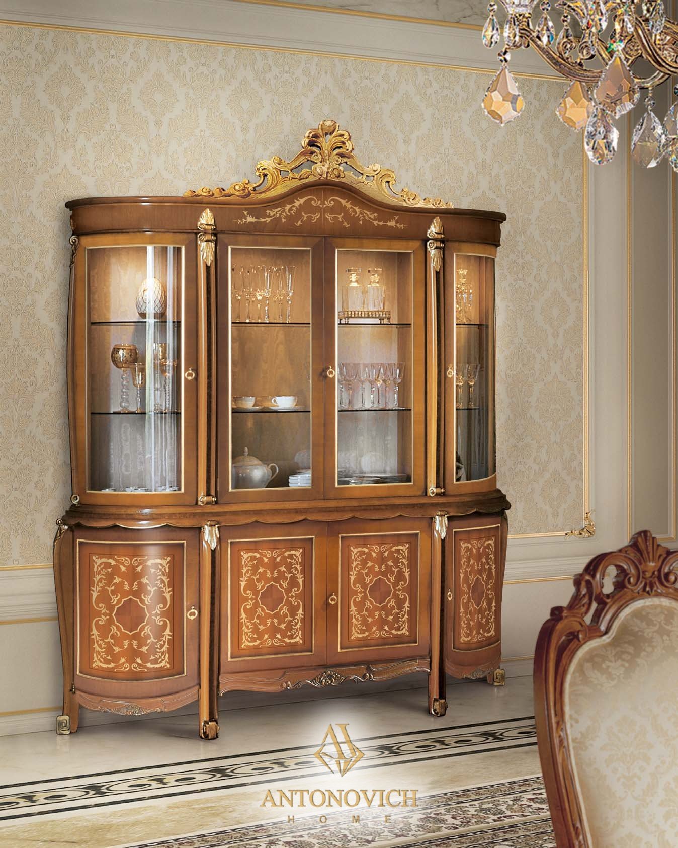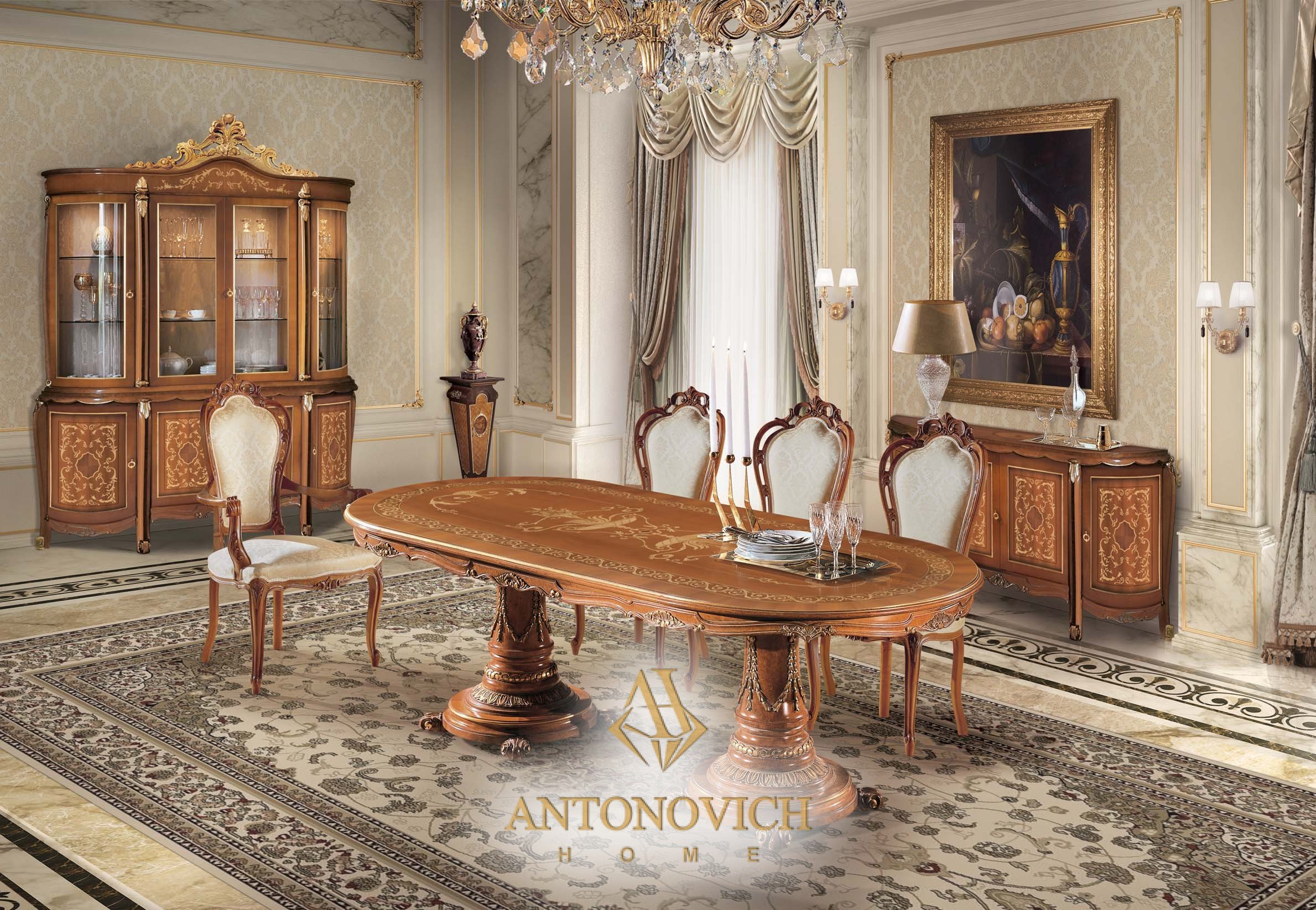 Позолоченные детали резьбы настраивают на торжественный лад, а аристократическая парадная атмосфера заставит обладателей этой коллекции столовой мебели гордиться своим роскошным интерьером и домом.