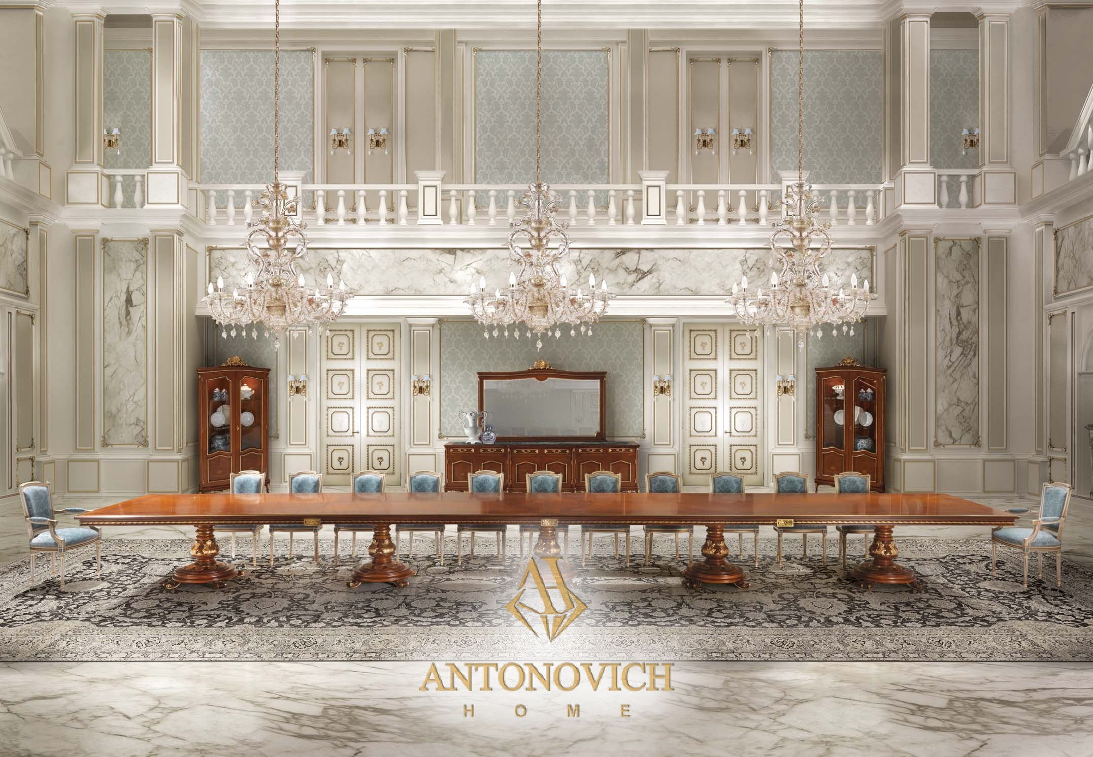 Итальянская столовая MEONI фабрики Angelo Cappellini — амбициозная коллекция столовой мебели. Пышно украшенная, с богатой инкрустацией и золотым декором коллекция заявляет о себе эффектно и пафосно.