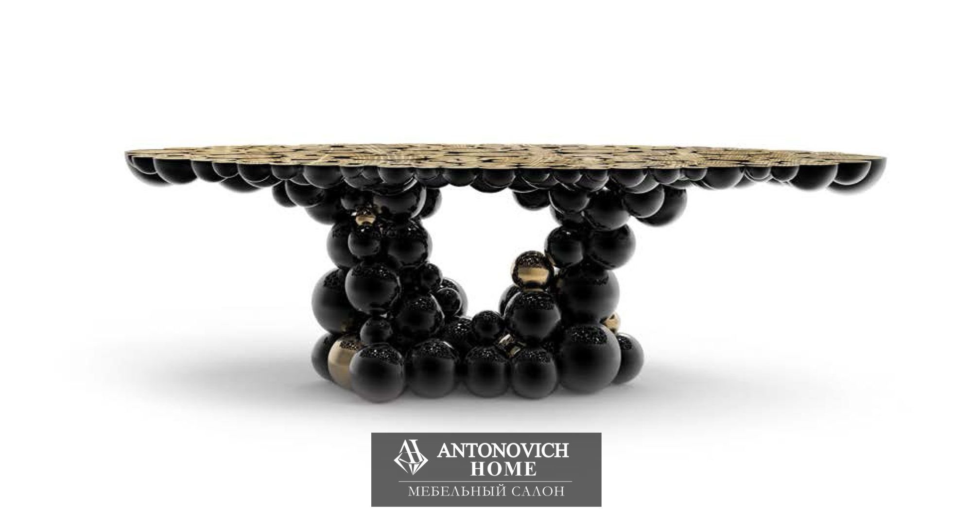 Блестящий черный лак и позолоченные сферы с позолоченной латунной поверхностью с текстурой дерева.