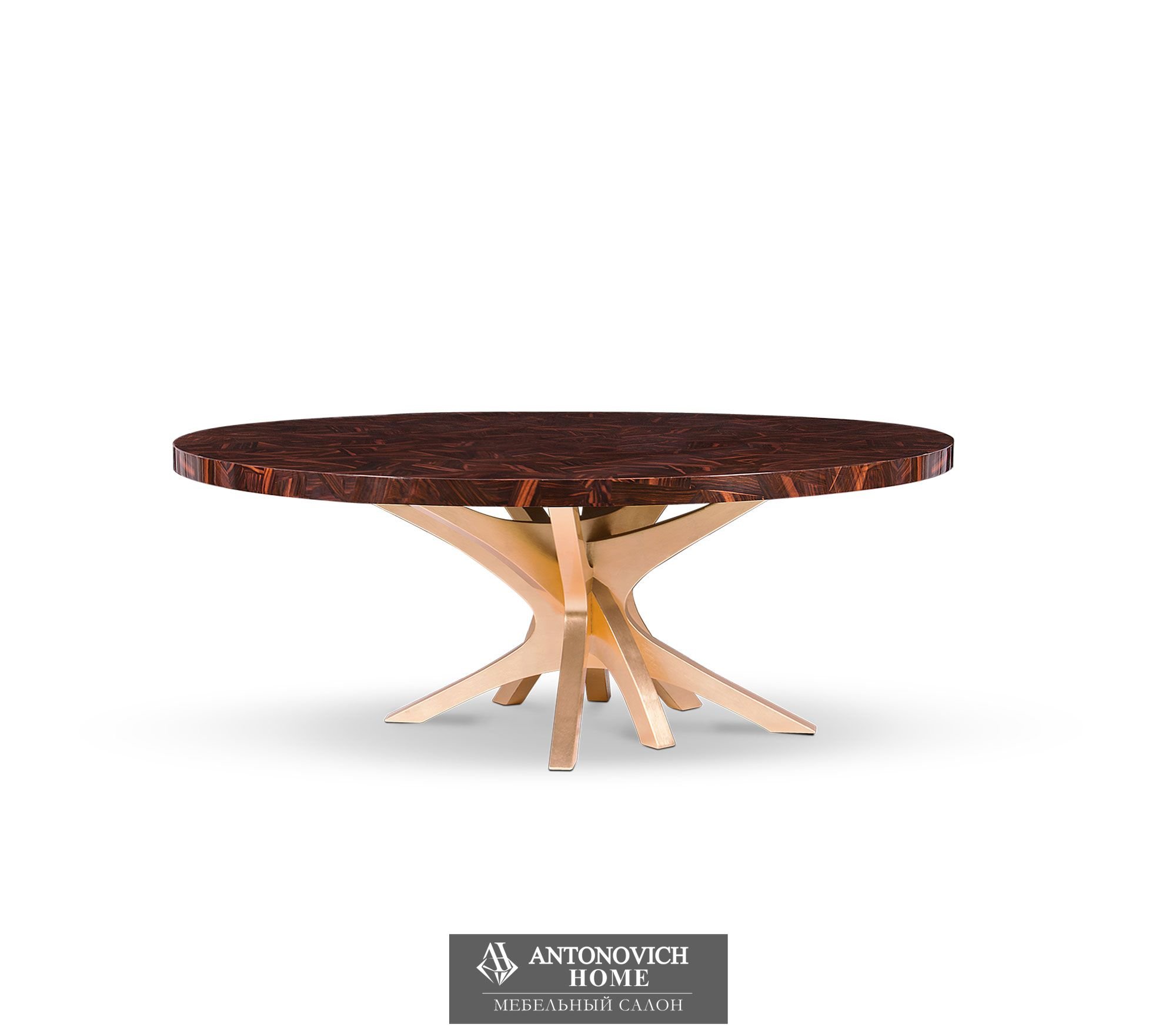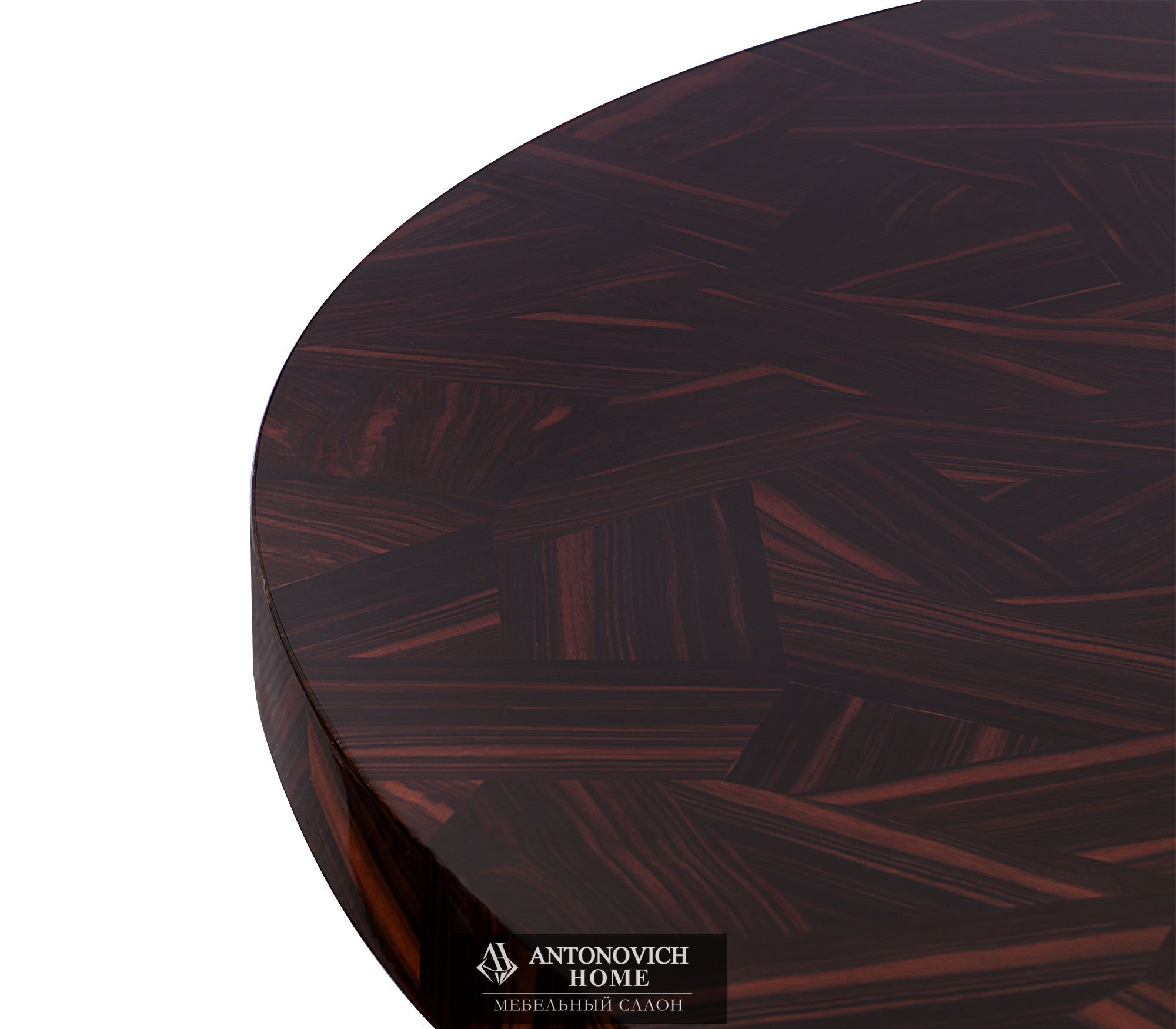 Эксклюзивный патч-стол Boca do Lobo имеет замысловатый верх из шпона и скульптурную основу для придания изысканности любому домашнему интерьеру. PATCH стол подходит для современной гостиной или изысканной кухни. Верх этого обеденного стола покрыт интригующей геометрической мозаикой из шпона, а основание — из дуба. Этот круглый центральный стол затем покрывается глянцевым лаком. Это 76 см в высоту и 160 в длину, идеально обработанные с уникальными ножками снизу, подходящими для любого вида дома или напольной эстетики.