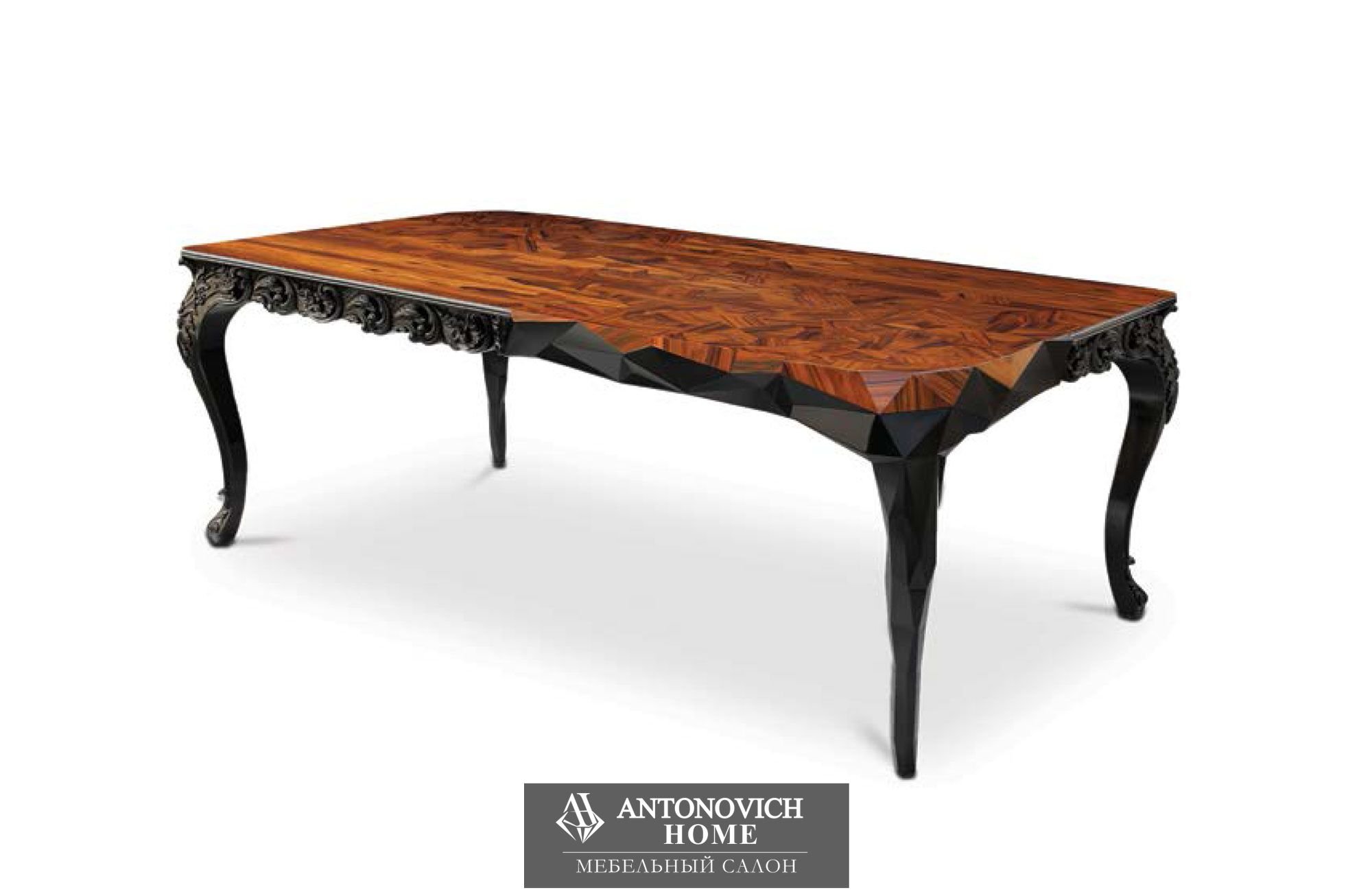 Стол Royal —это настоящий шаг вперед для Boca do Lobo. Это вырезанные вручную детали замысловатого дизайна и отделки маркетри, выполненные мастерами с удивительной точностью. Изготовленные из дерева, каждая деталь выполнена с высокой точностью: от рамы в стиле барокко и минимализма с гранями до уникальной столешницы в лоскутном коллаже из шпона, отделанного высокоглянцевым лаком. Этот необычный образец сочетает в себе новые тенденции дизайна и архитектуры, но при этом никогда не забывает о богатых традициях прошлого. Двойная индивидуальность этого стола прекрасно сочетается: барокко встречается с чистыми линиями, отражая философию Boca do Lobo: бросать вызов прошлому и будущему.
