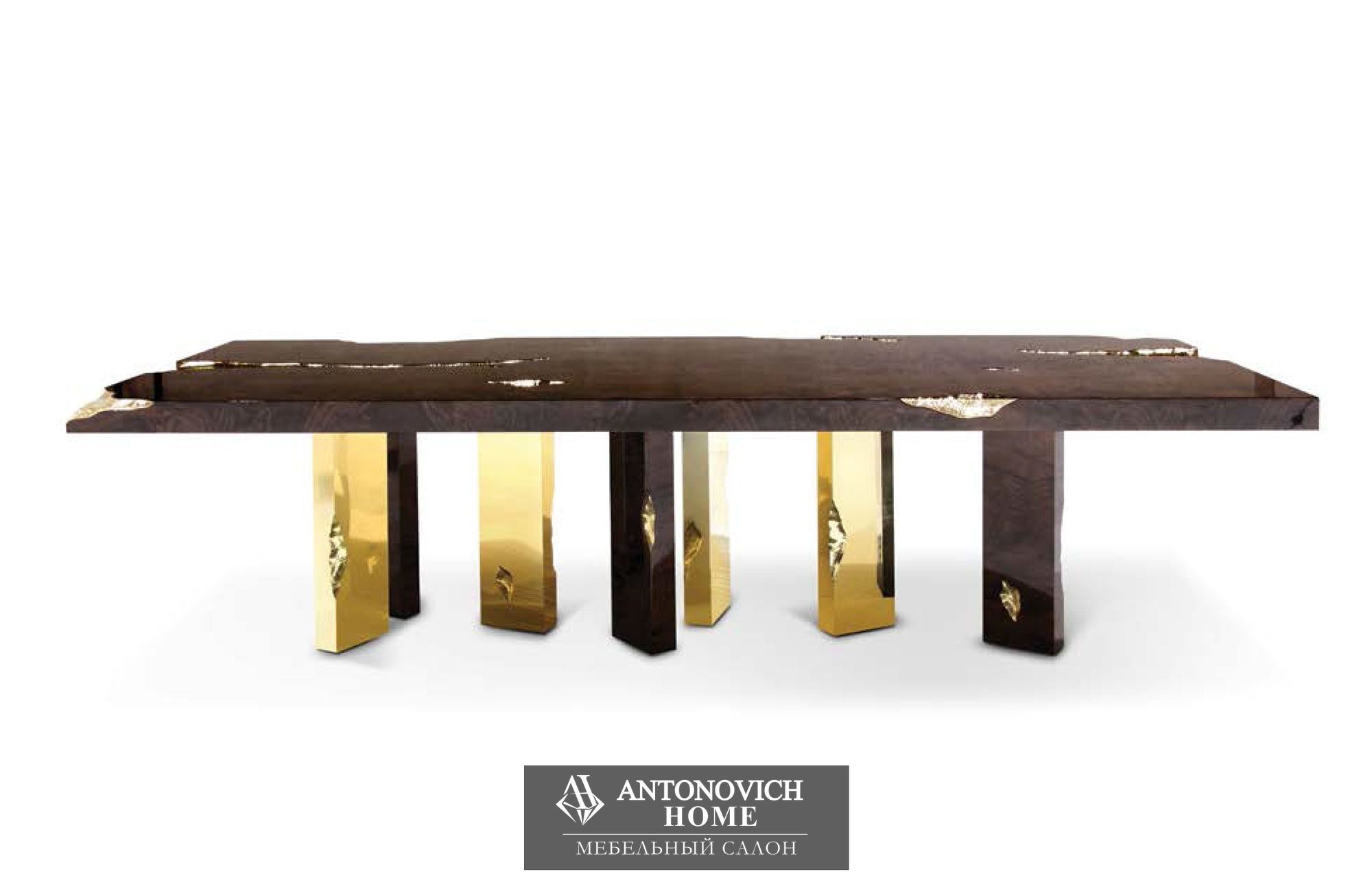 Великая Империя строится веками, и те, кто восстают после падения, обретают свою истинную силу. Само собой разумеется, что великие решения принимаются за могущественными столами среди решительных умов. Обеденный стол Империя (EMPIRE) фабрики Boca do lobo символизирует поколения собраний и решений, как во время праздника или напряженности. Его трещины отражают тяжелые времена, открывая золотой интерьер в манифесте к власти. Безупречная и яркая, оставшаяся поверхность указывает на процветающее будущее, напоминая человеку о тосте за процветание.