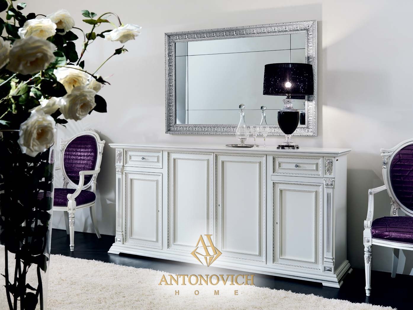 | 4-дверный белый лакированный сервант Ceppi с серебряными деталями | Д 210 Г 50 В 100 |