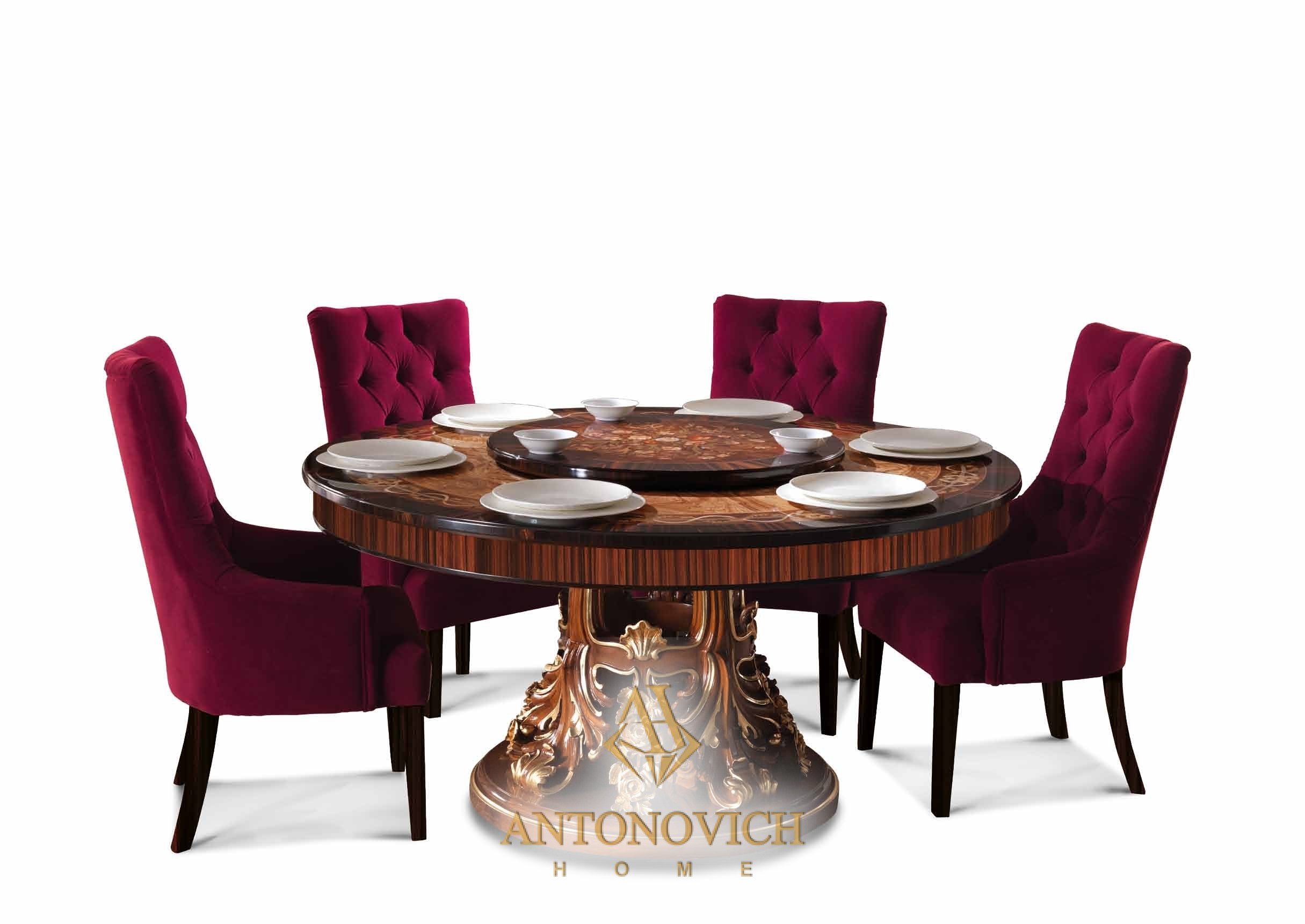 | Круглый обеденный стол Ceppi, отделка черного дерева и ясеня с инкрустациями и ручной резьбой, покрытой сусальным золотом | Ø 160 В 80 |