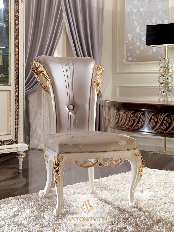 Благородный светлый оттенок мокко подчёркивает перфектность дизайна мебели для столовой, а золотые узоры декора являются транслятором статусности и престижности этой брендовой коллекции.