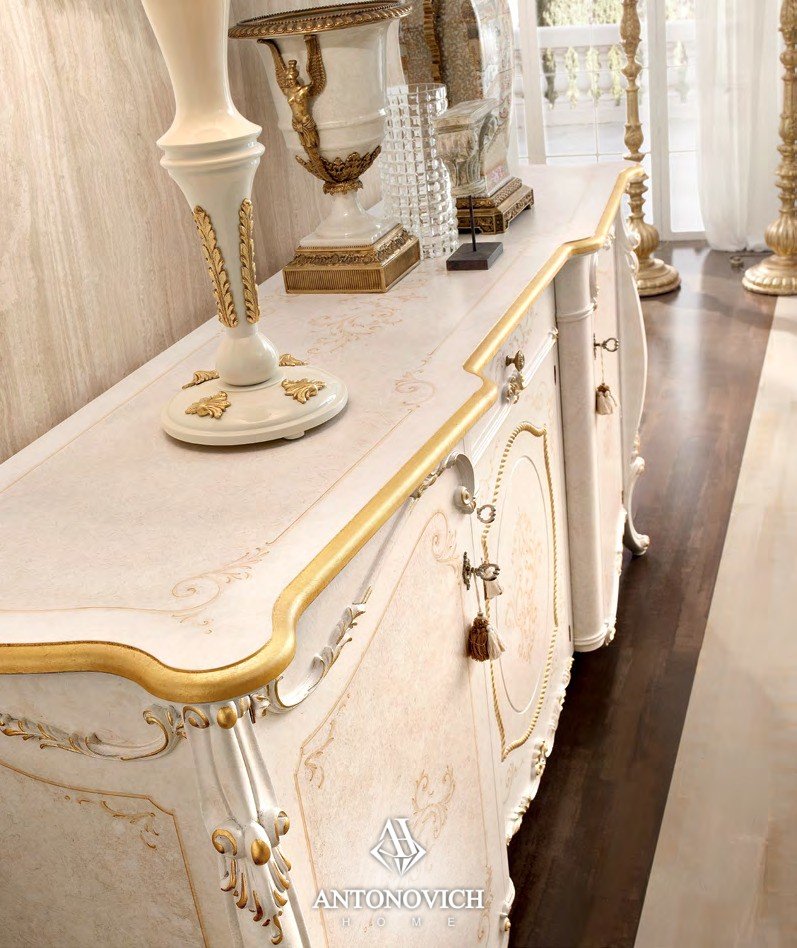 Коллекцию отличает изысканный дизайн, сочетающий потрясающей красоты инкрустации и фигурные элементы, изысканную современную фурнитуру в контрасте с высокохудожественной росписью сусальным золотом, а также уникальный резной декор, выполненный вручную.