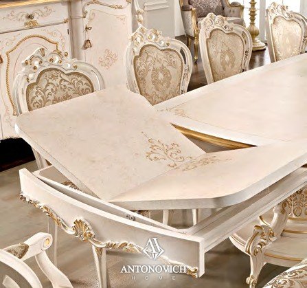 Гарнитур для столовой Doge выполнен в классическом стиле и выпускается в белом матовом лакированном покрытии.
