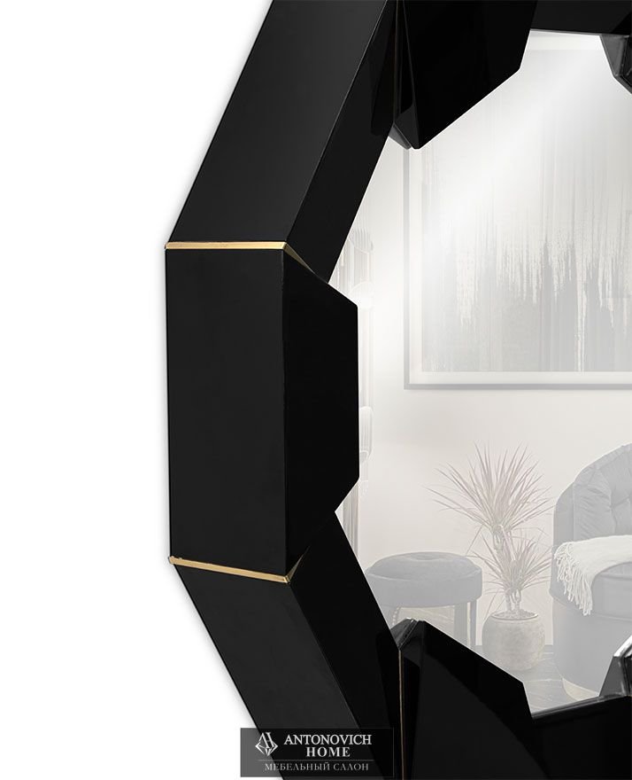 Зеркало Darian. Такие материалы, как черный лак и латунь, объединяются в идеальную гармонию, чтобы создать такой шедевр, как Darian Black. Простой, но уникальный предмет роскоши, который отражает функциональность зеркала и великолепие художественного произведения. Декоративный, практичный и божественный. Латунь —единственный материал, обладающий идеальной гармонией для создания такого шедевра, как Darian Gold.