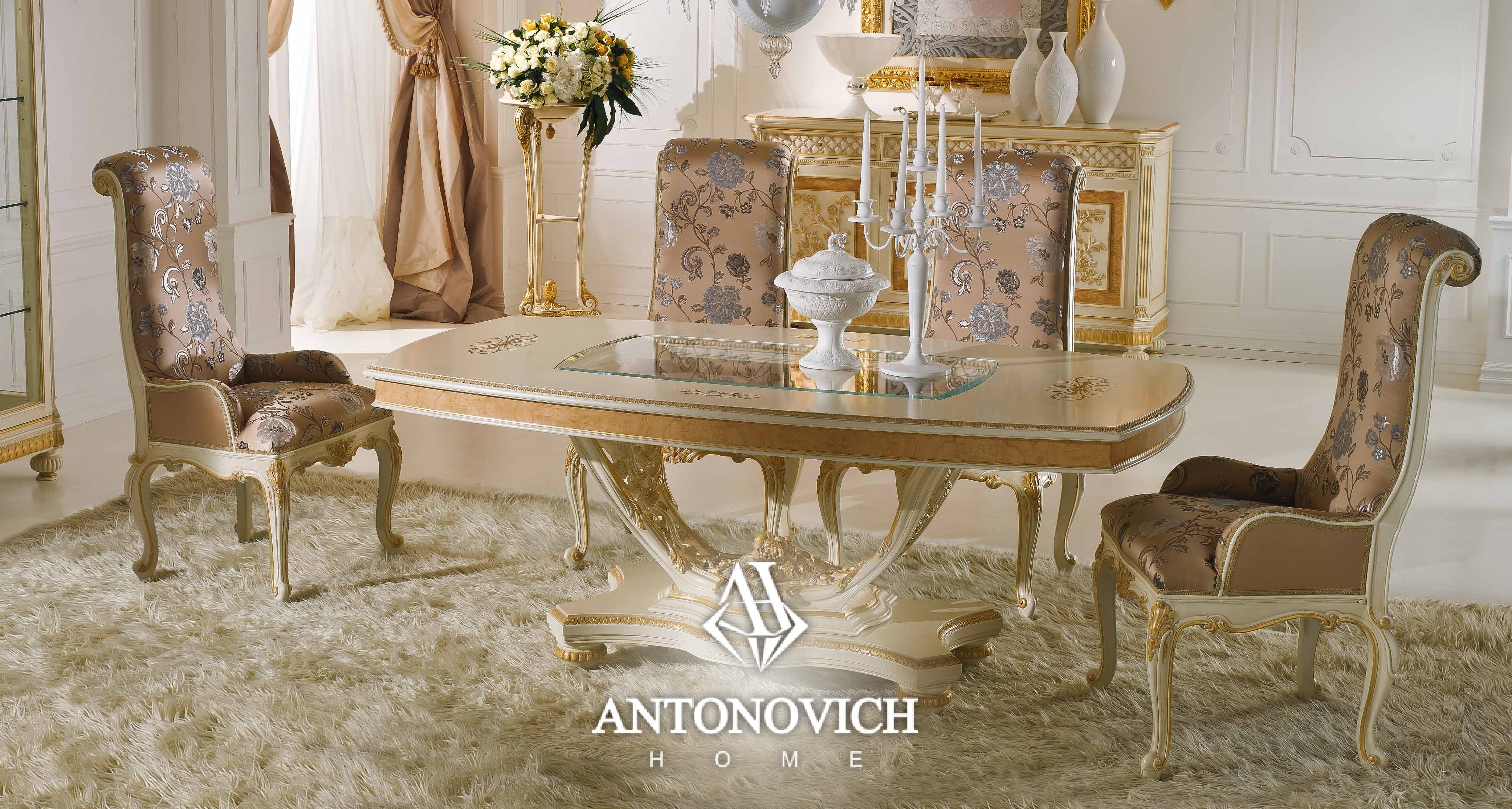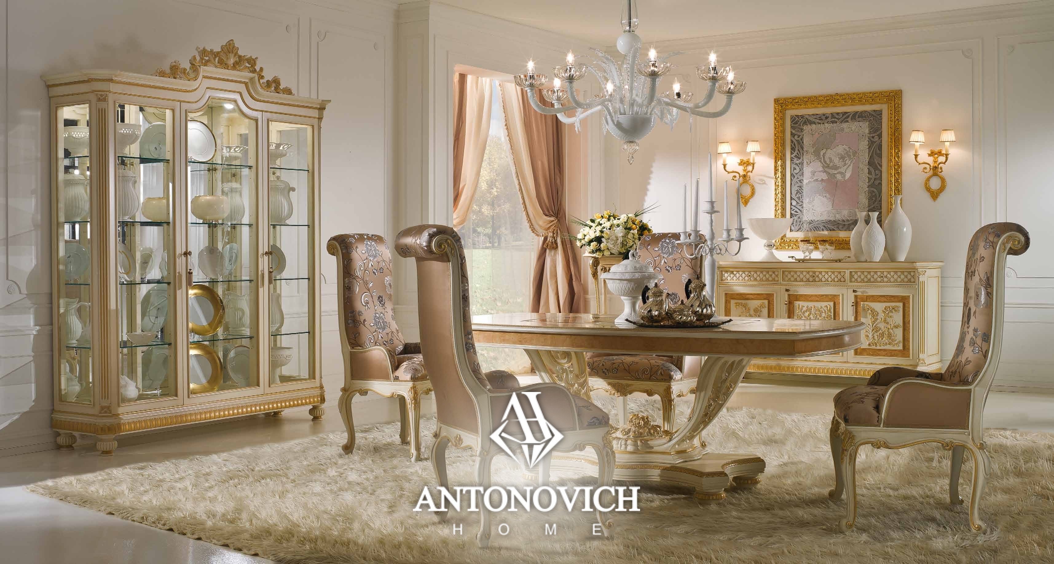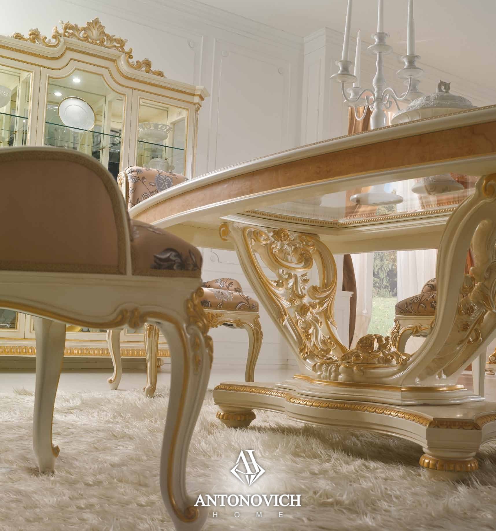 Столовая коллекции EDO laccato завораживает блеском сусального золота и плавностью форм.