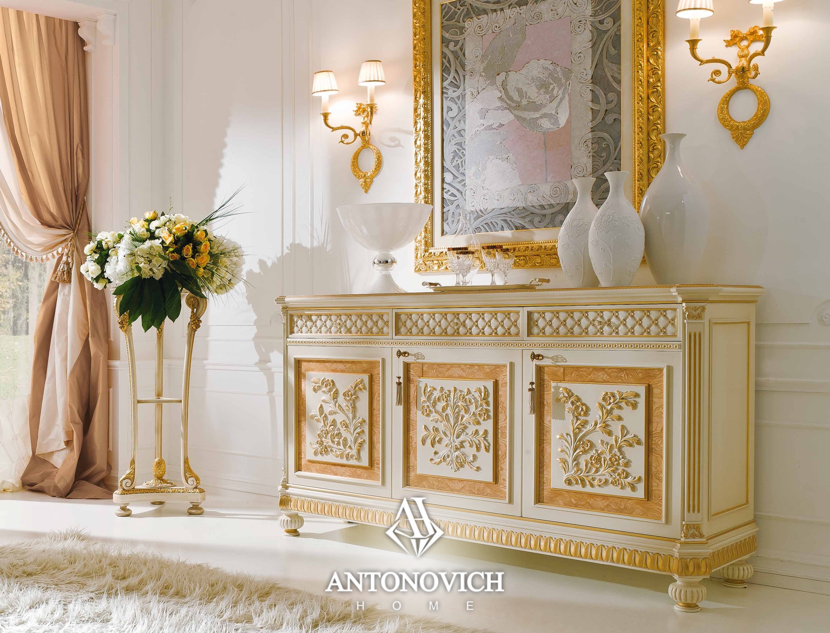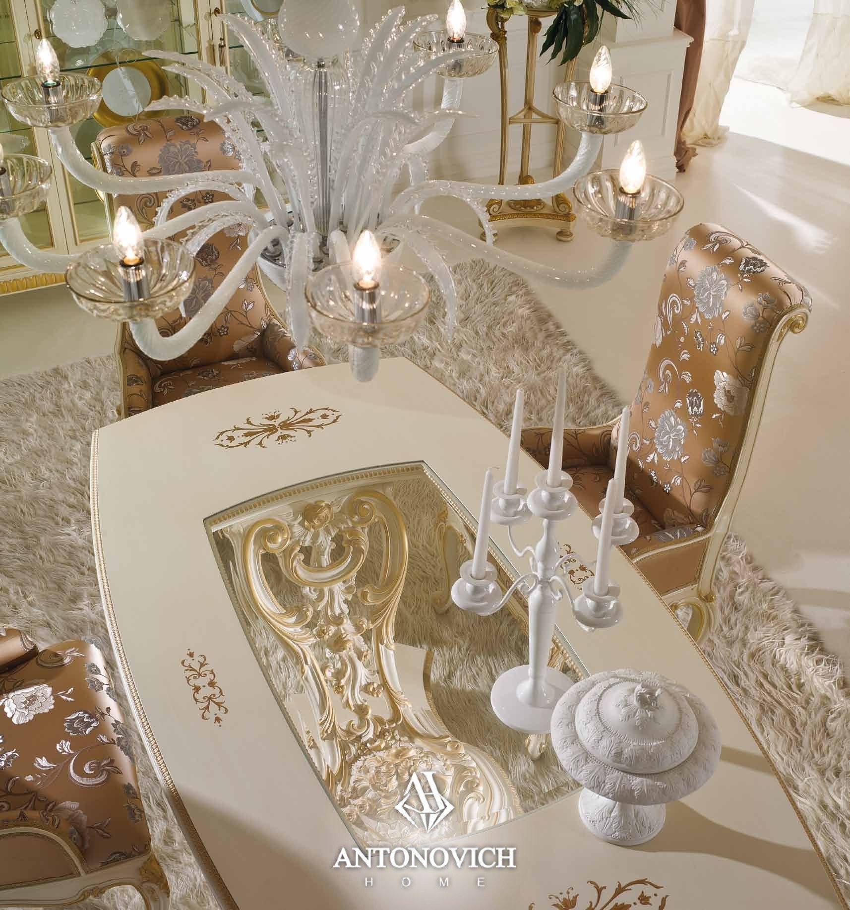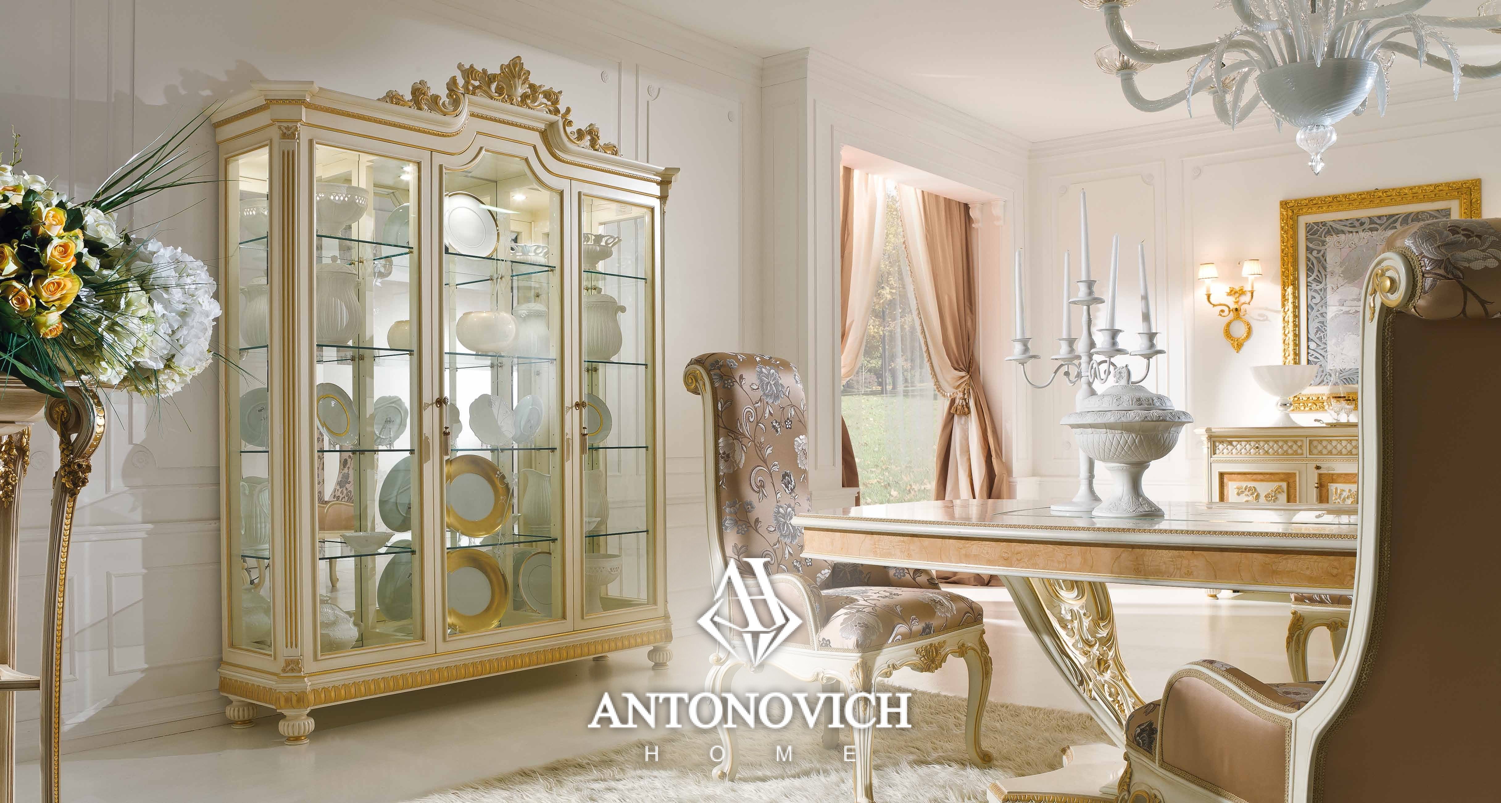 Столовая коллекции EDO laccato завораживает блеском сусального золота и плавностью форм.