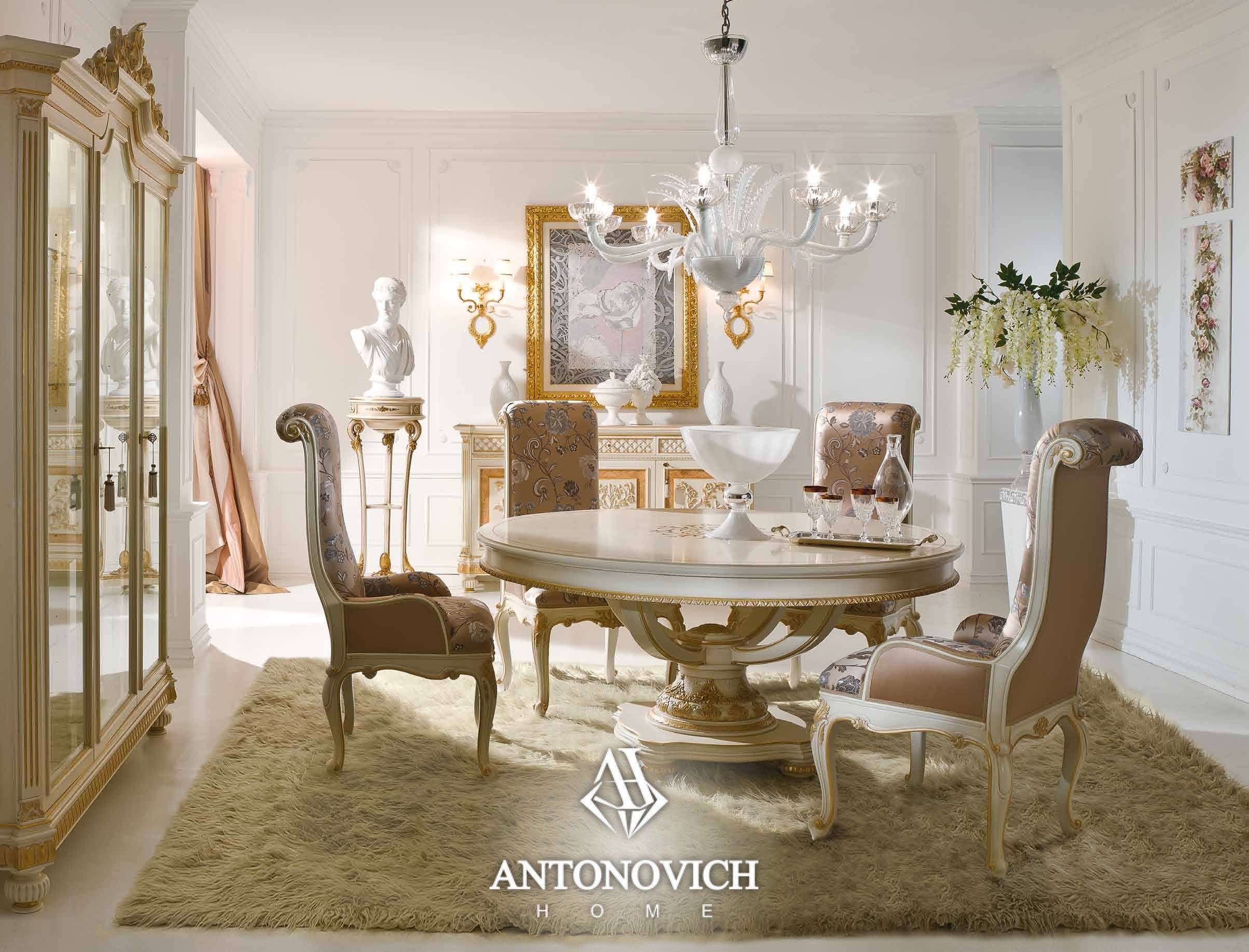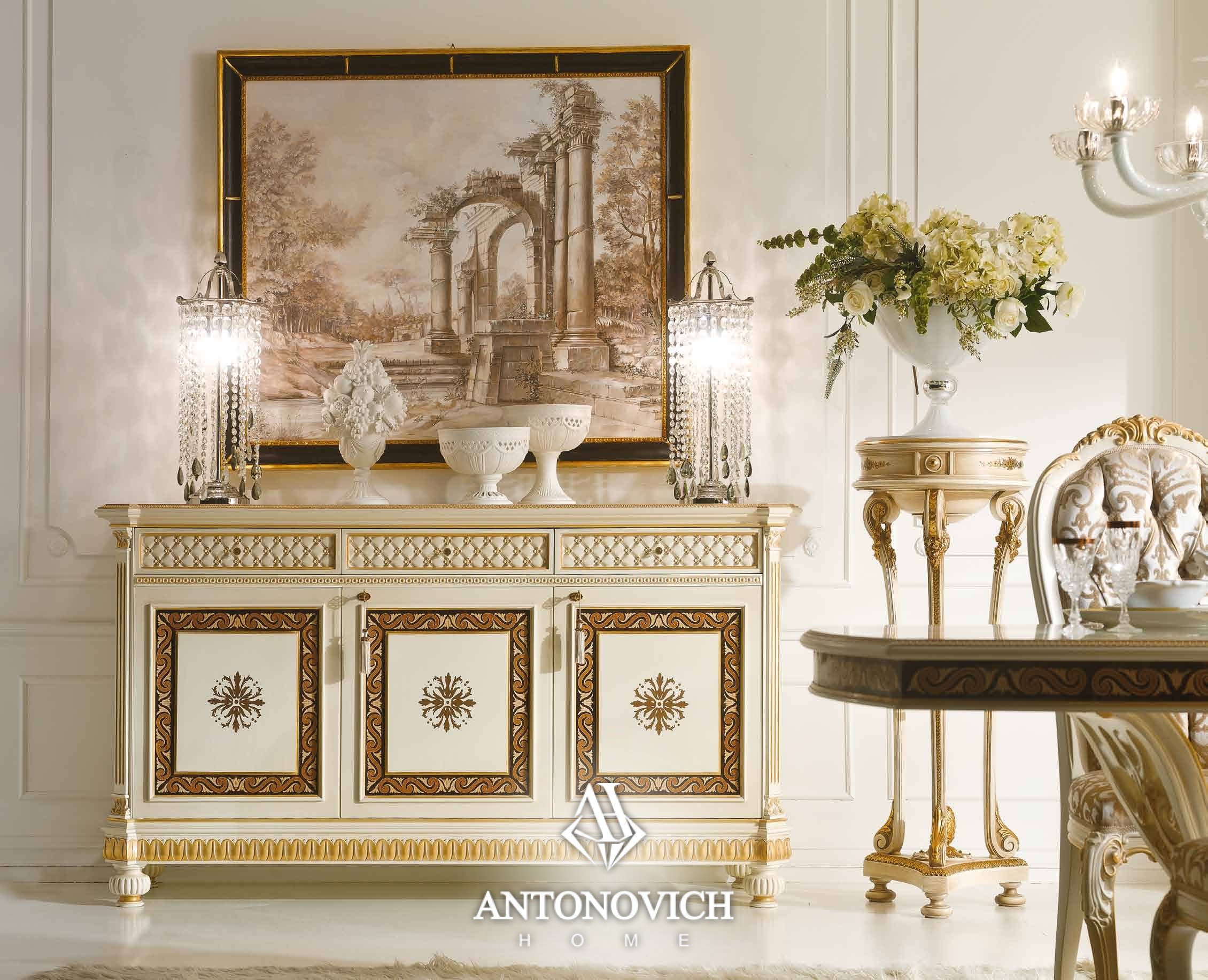 Стол и стулья, сервант и буфет гармонично и изысканно заполняют столовую комнату.