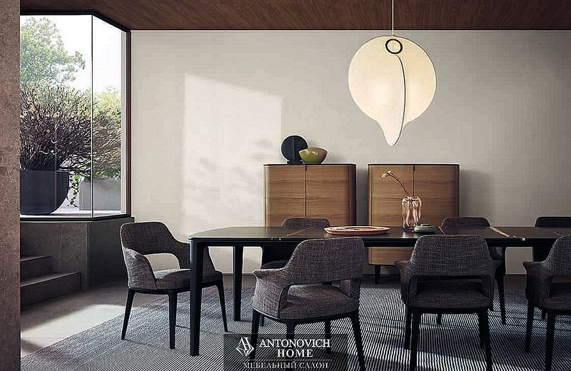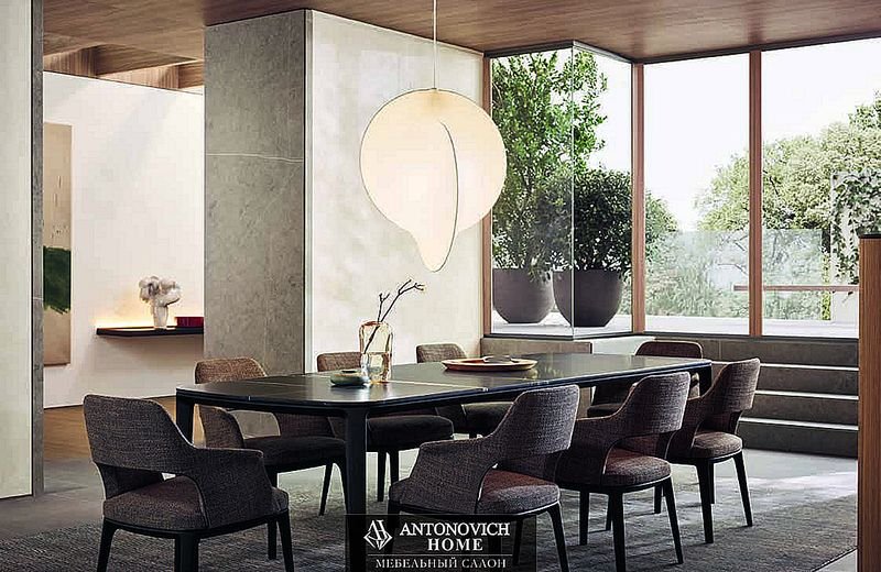 Обеденная зона спроектирована в гармонии с гостиной. Стиль важен. Коллекция от кутюр, благодаря прекрасным материалам и отличным деталям.