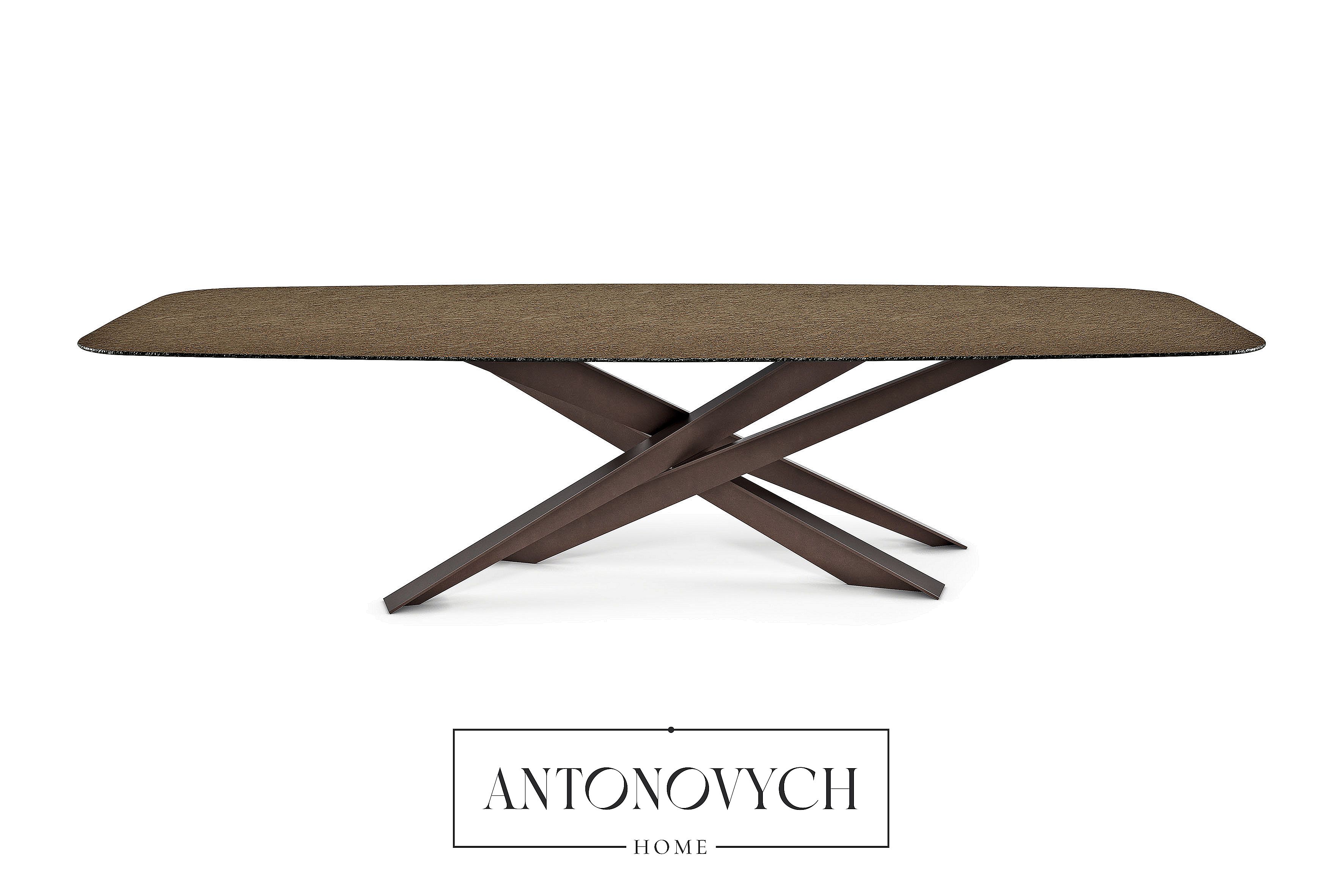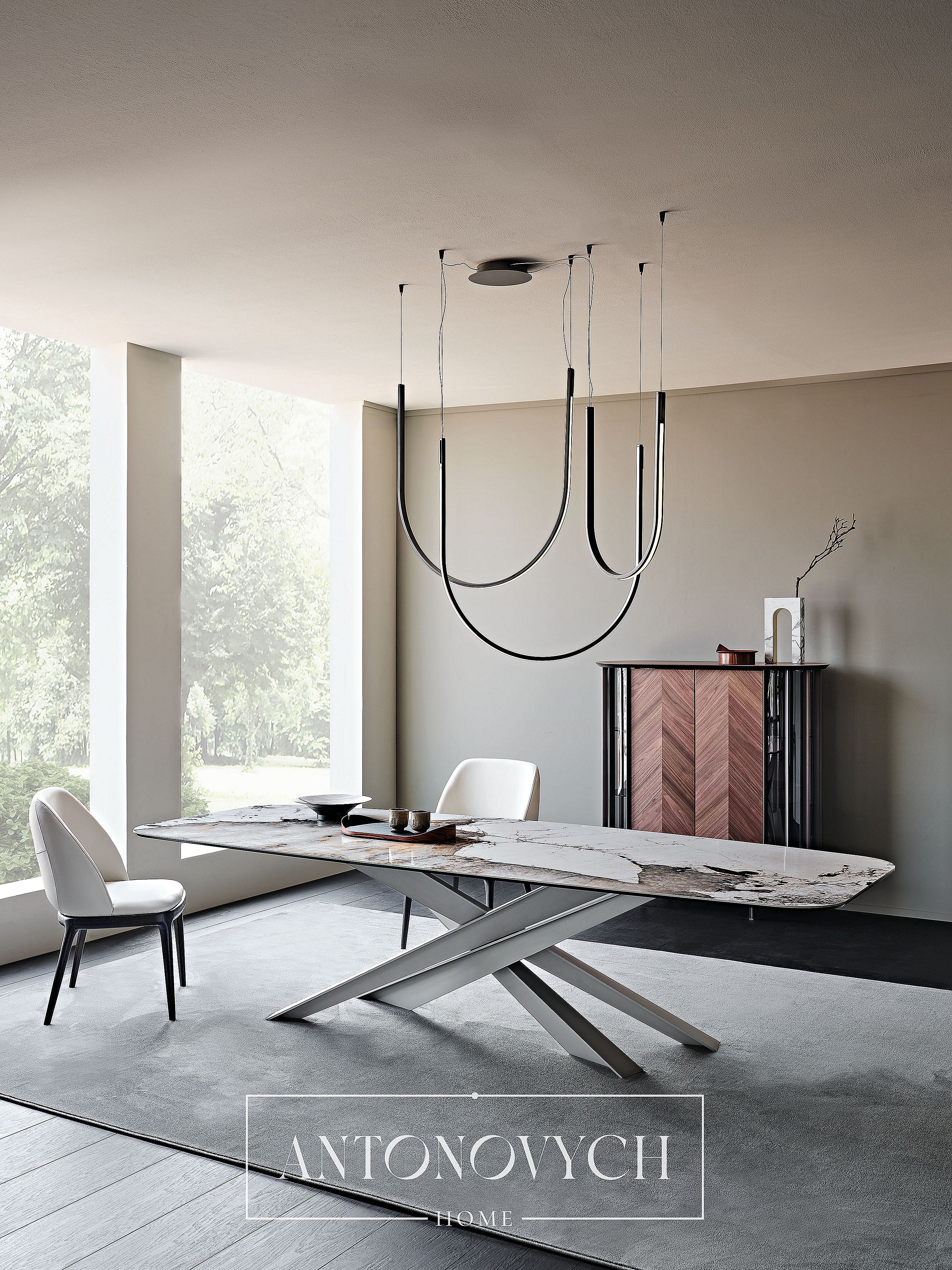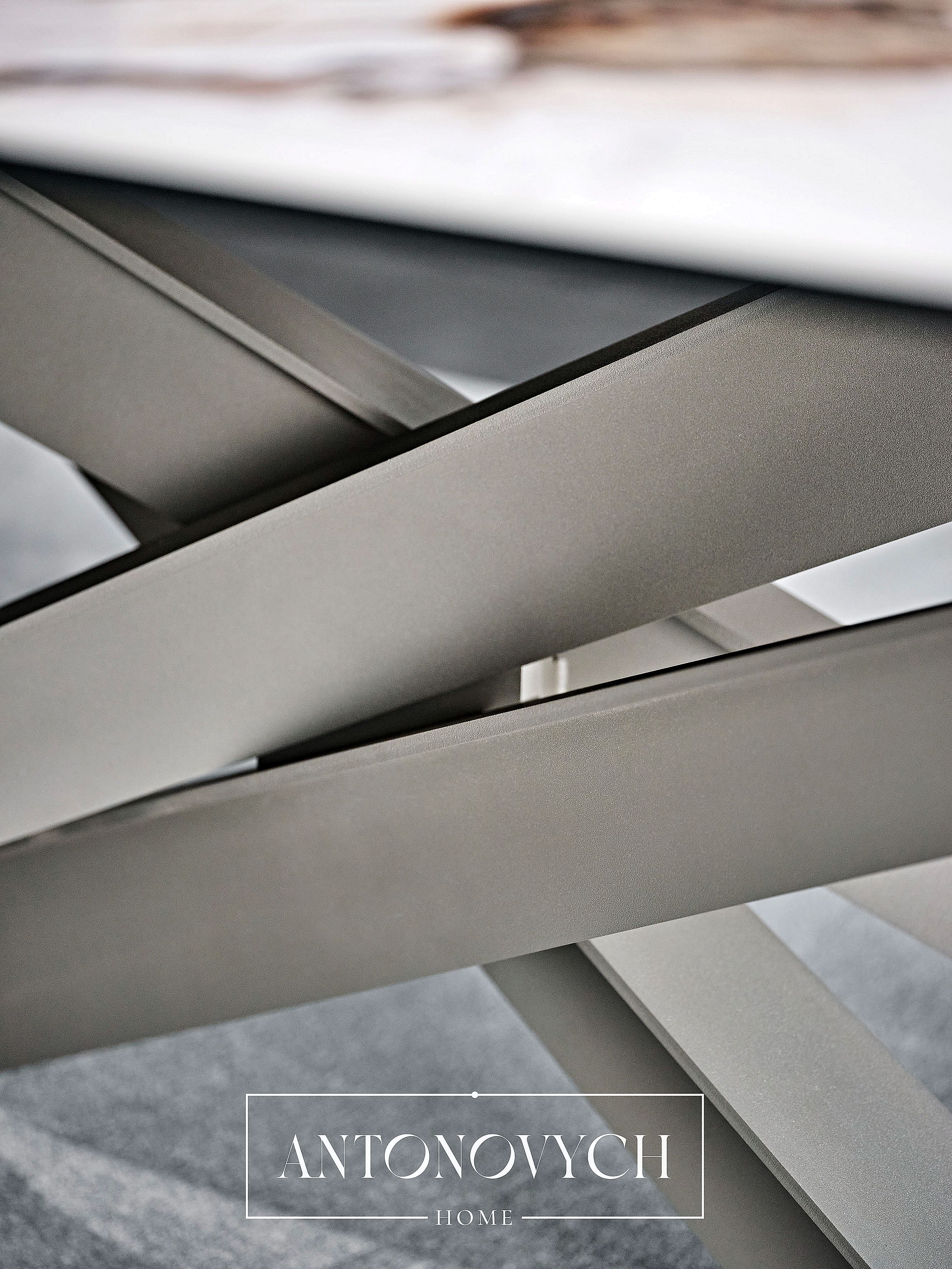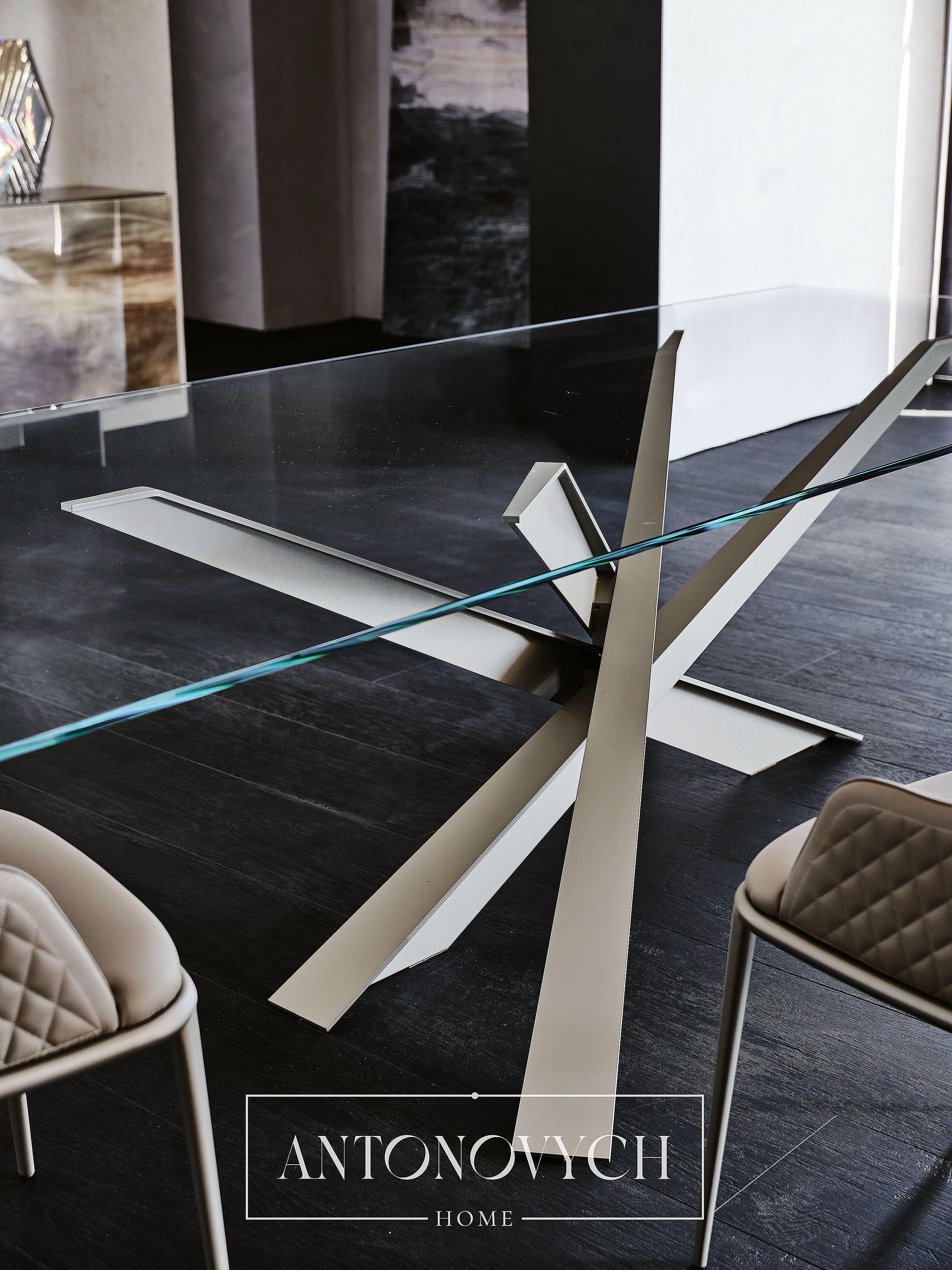 Семейство столов современного дизайна Lancer может похвастаться скульптурным, величественным и непревзойденным стилем. Что делает Lancer уникальной и ценной моделью, так это основание с сильной архитектурной ценностью, оживленное ярким графическим знаком. Четыре лезвия рассекают воздух и пересекаются друг с другом, создавая энергичную композицию с явно невоспроизводимым узором. Каждая ножка спроектирована с Т-образным сечением, что увеличивает возможности пересечения и перекрытия. Таким образом, вся основа усилена ритмичным эффектом светотени, в котором слепые зоны контрастируют с металлическими частями, освещенными светом.
