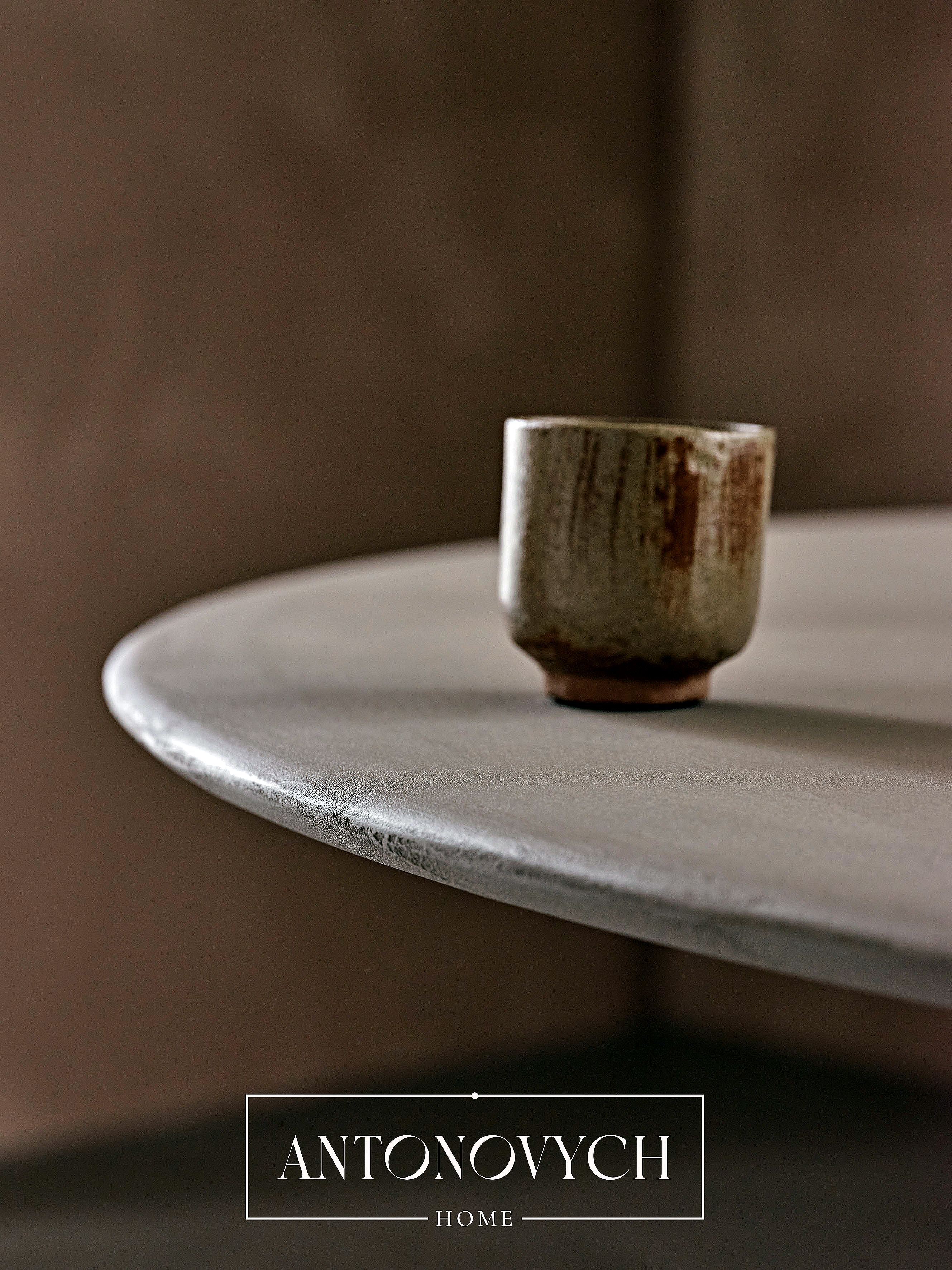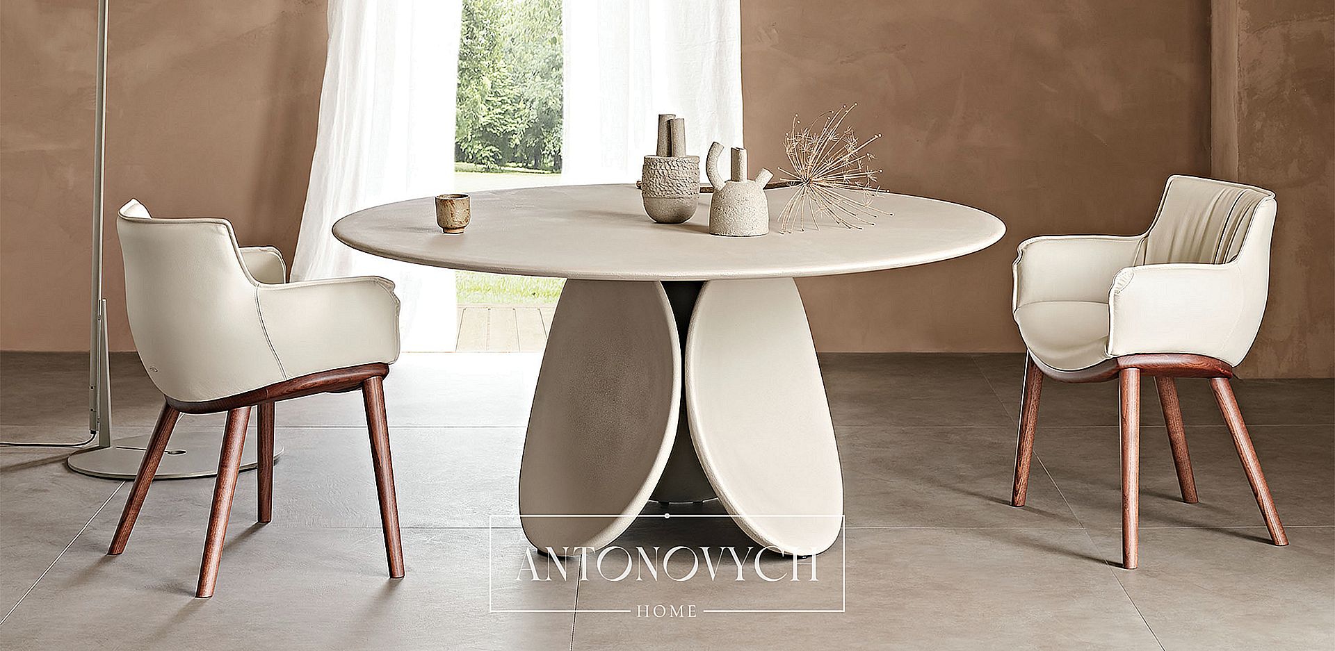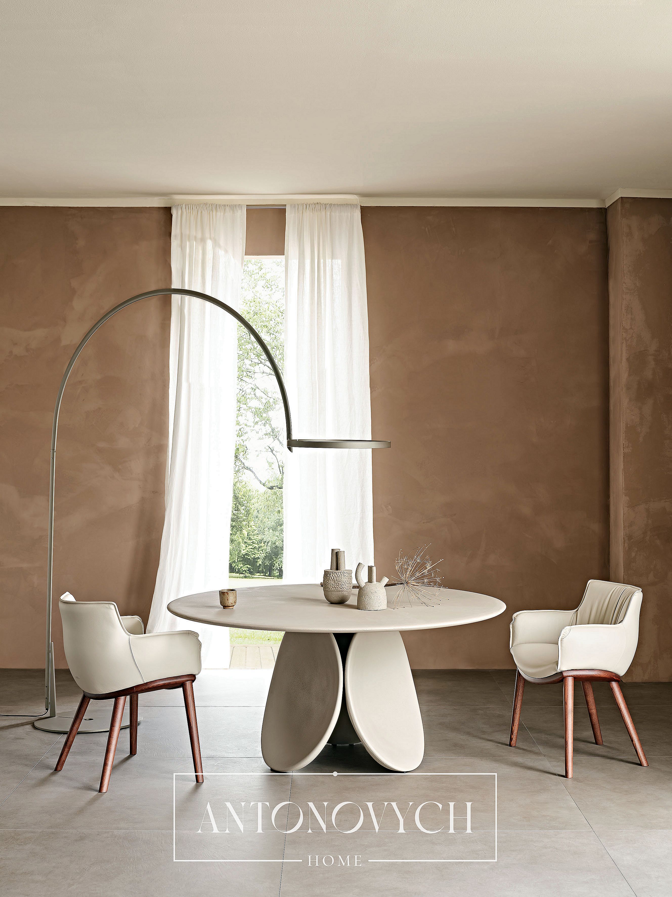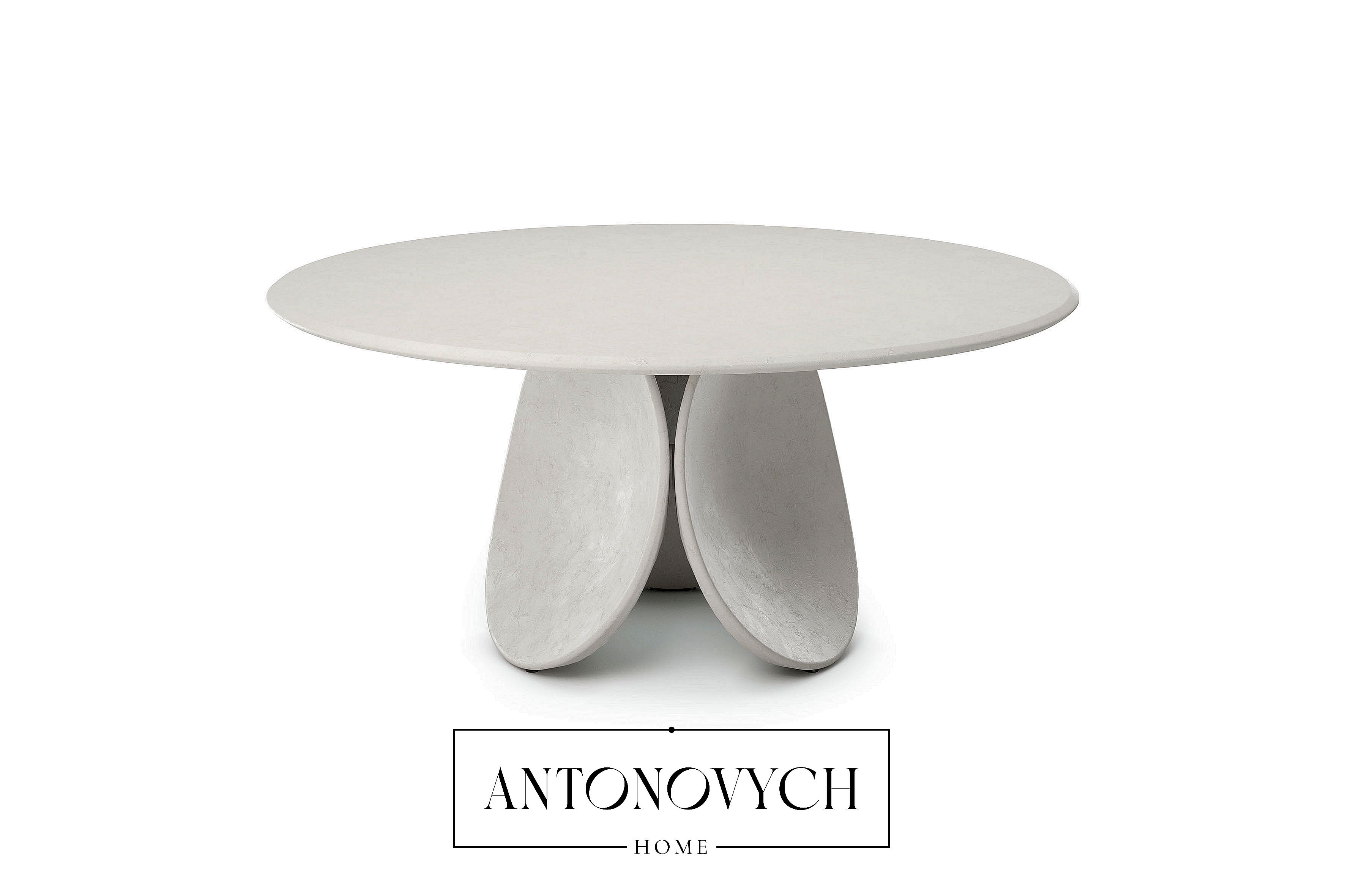 Дизайн настольной скульптуры «Максим» проистекает из неразрывной связи между ее формой, состоящей из трех лепестков, и материалом, из которого она изготовлена. Подобно тому, как скульптура возникает из материала в руках мастера, так же, глядя на этот круглый дизайнерский стол, вы можете оценить усилия и время, затраченные человеком на его формирование. Это происходит от ручного мастерства и техники холодного формования, которая не требует использования энергетических ресурсов. Промышленные процессы предназначены только для поддержки высокого ремесленного компонента ручных этапов заливки жидкого цемента и отделки. Основание этого современного стола на самом деле отделано глиной землистых и естественных оттенков. Максим выпускается в двух версиях: круглый стол с прозрачной стеклянной столешницей, позволяющей оценить скульптурную основу во всей ее полноте, и модель Maxim Argile, полностью вылепленная из глины, что придает ей еще более органичный вид. Эта прочная отделка также делает стол Maxim идеальным в качестве стола для дизайна на открытом воздухе. «Когда материала достаточно самого по себе, без надстроек и дополнений, мы имеем чистый и непосредственный объект, который уже является готовым продуктом», — объясняют дизайнеры Пио и Тито Тосо.