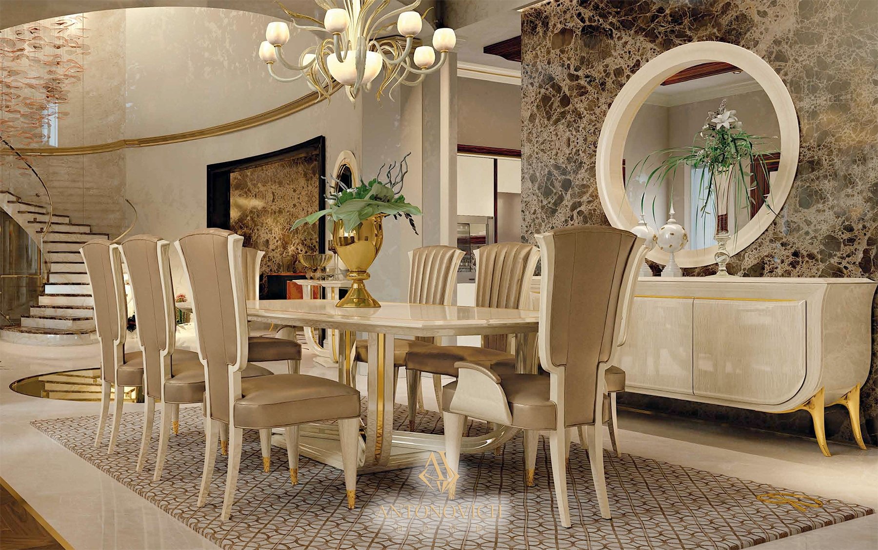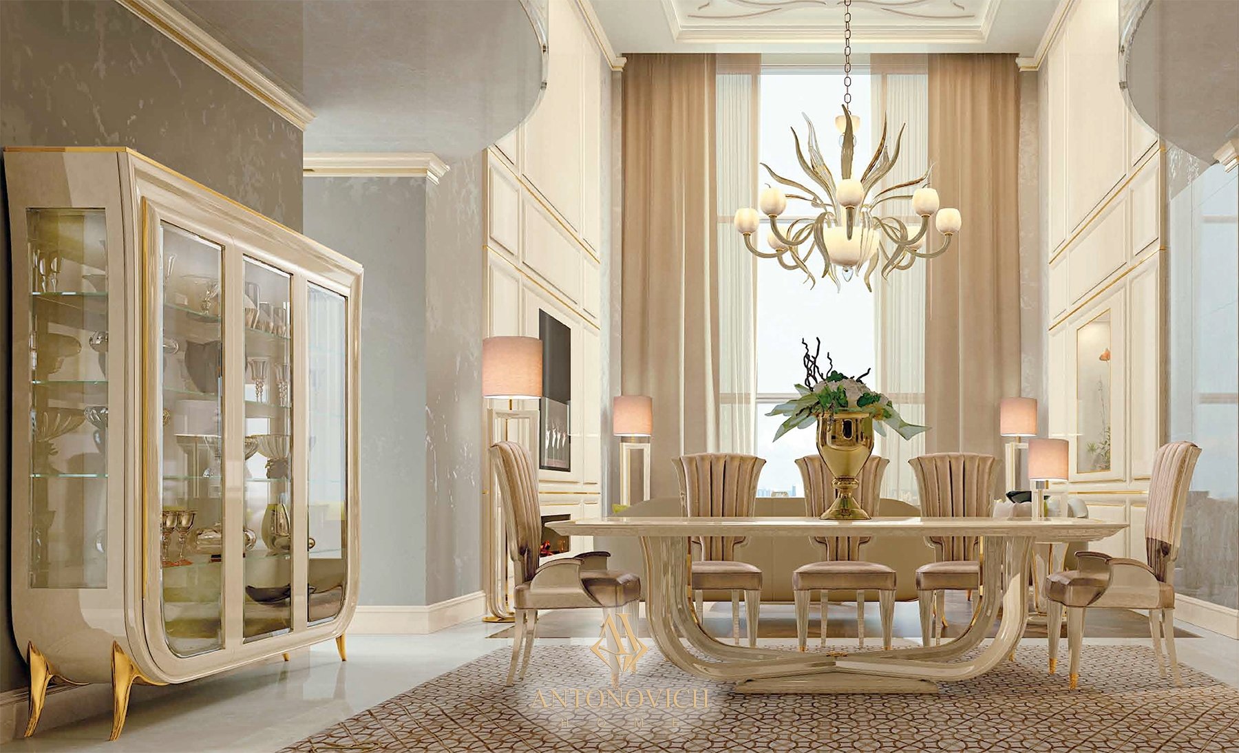 Сочетание лака цвета слоновой кости с перламутром и хромированной латуни обретает форму в элегантных и поражающих своей красотой интерьерах Trilogy для дневной зоны.