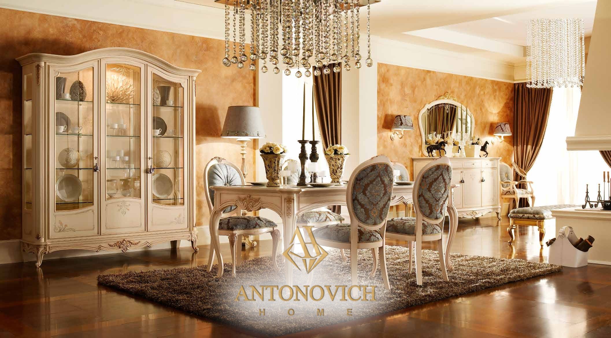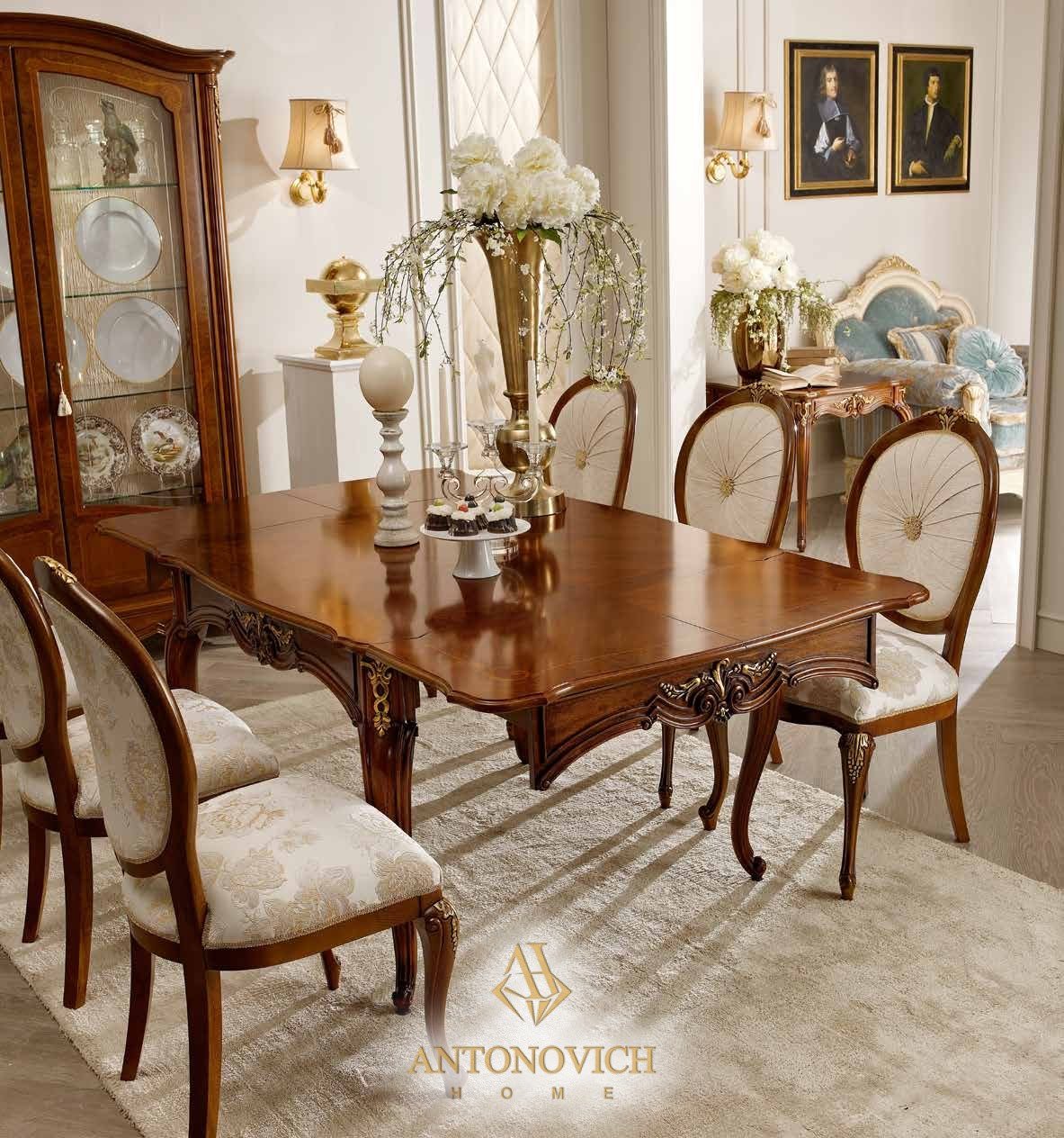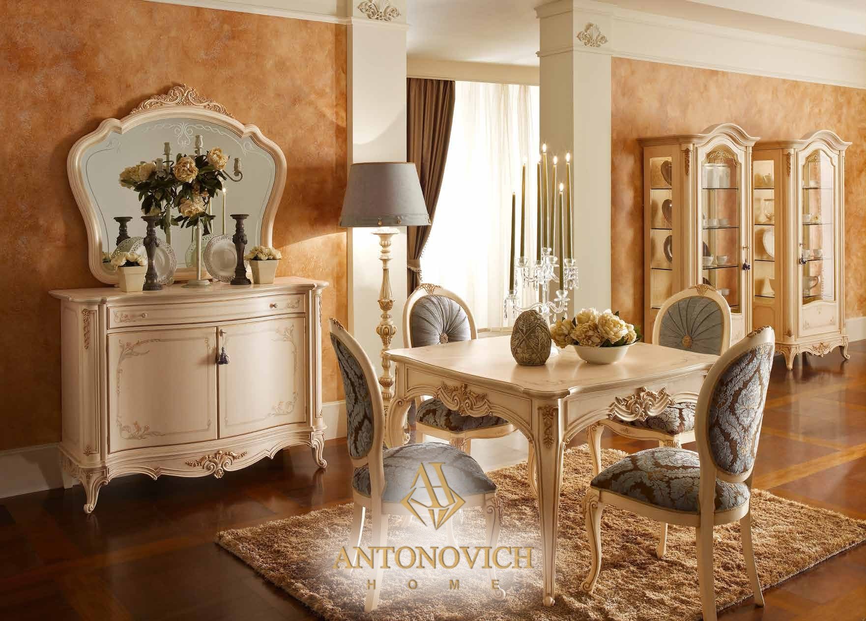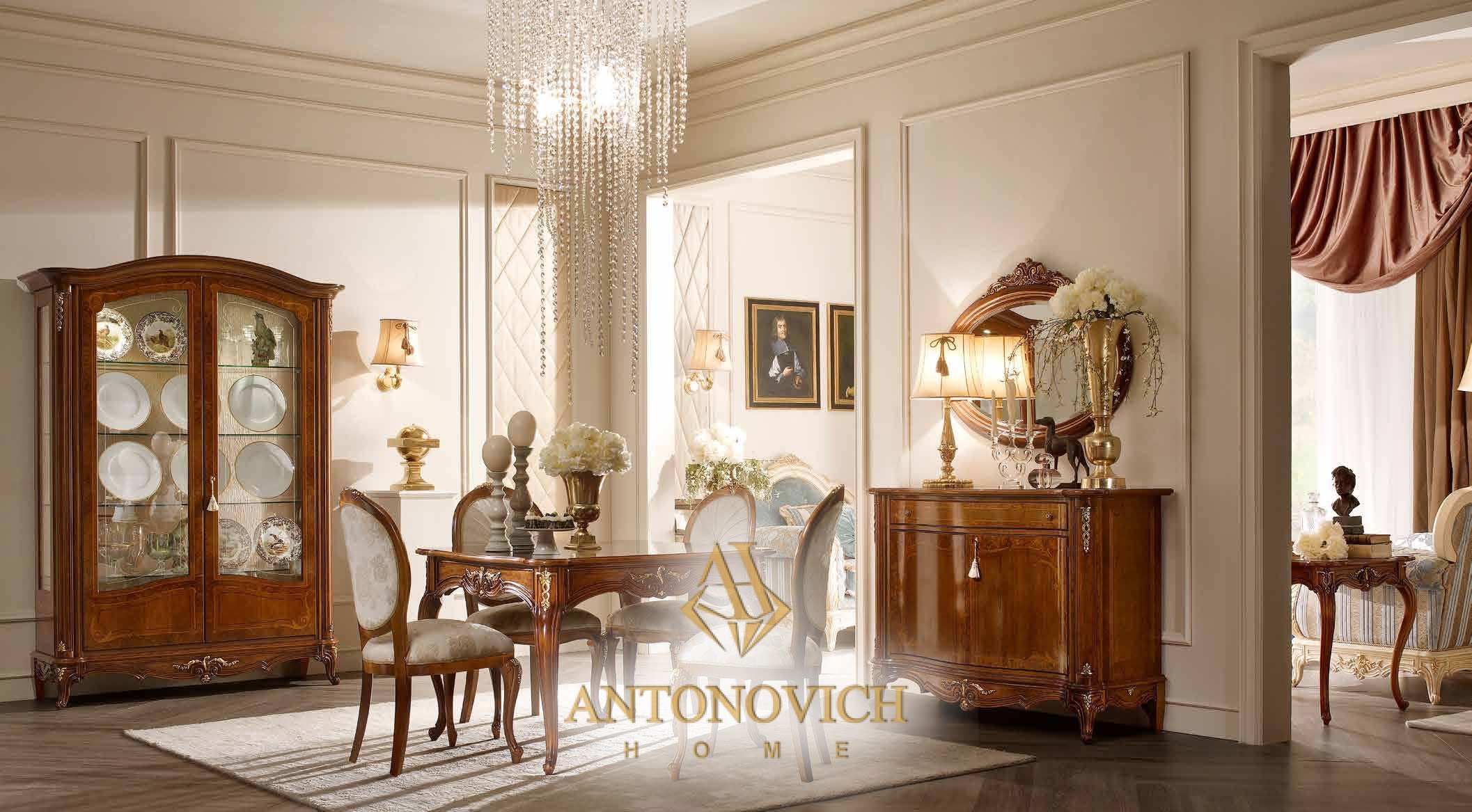 Столовая в классическом стиле от итальянских мебельщиков компании VALDERAMOBILI — великолепный ансамбль предметов мебели, виртуозно объединивший безукоризненное качество, аристократический стиль, богатство и совершенство декора.