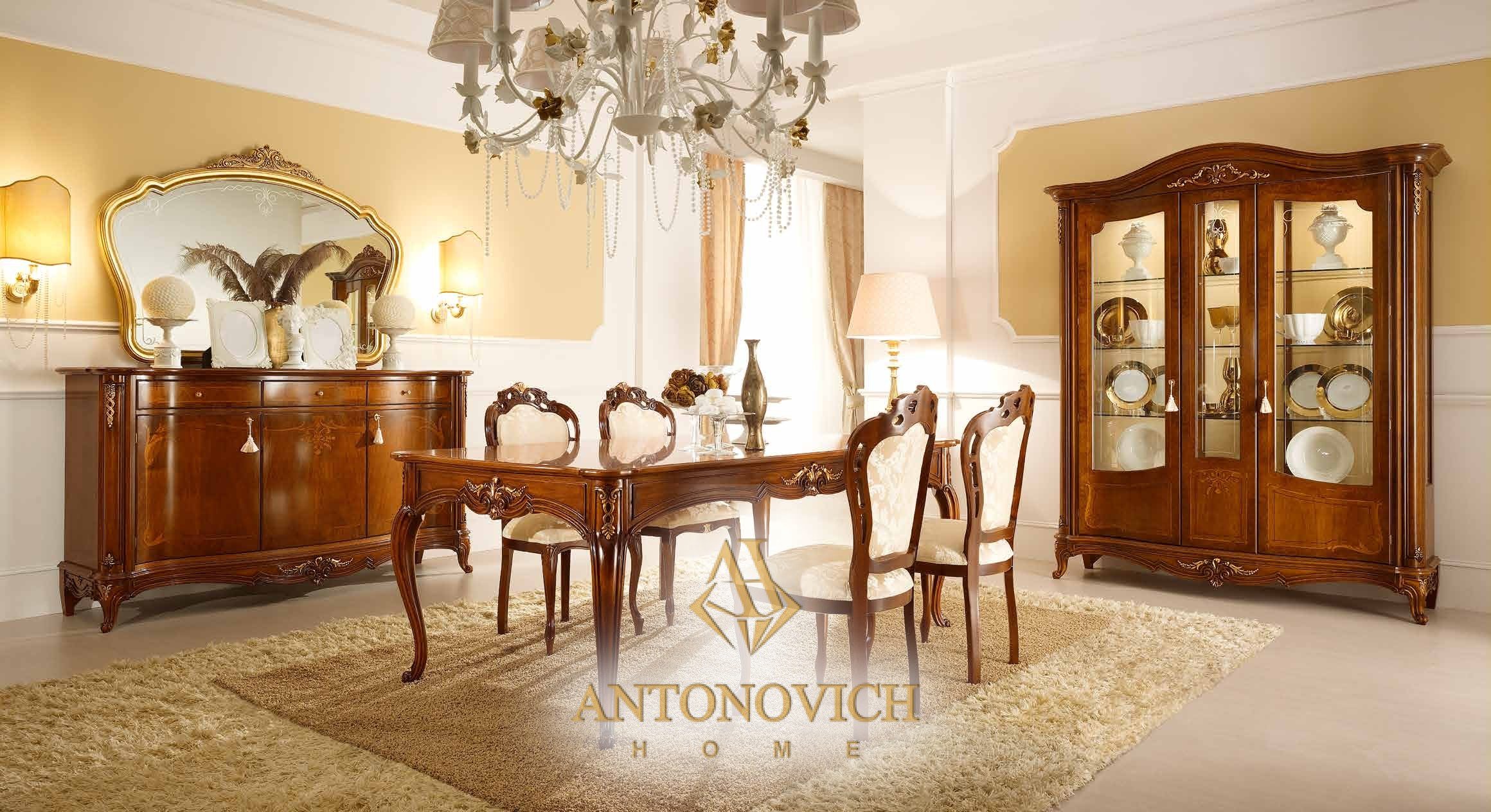 Столовая в классическом стиле от итальянских мастеров компании VALDERAMOBILI — это гарантированное качество и образец респектабельности.