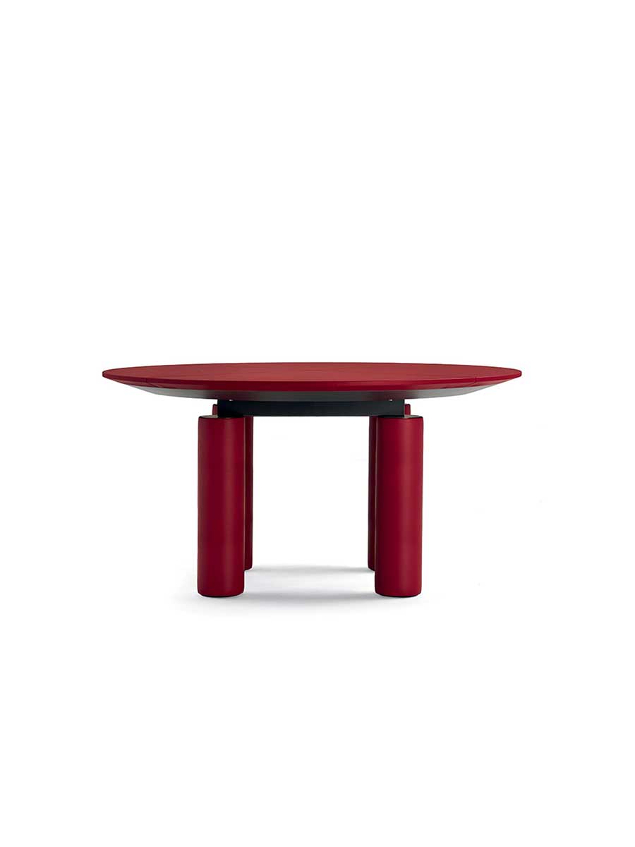 Круглые столы для совещаний C.E.O. Cube имеют цилиндрические ножки из металлических трубок с лёгкой обивкой и кожаной обивкой. Каркас изготовлен из чёрного железа. Столешница состоит из двух перекрывающих друг друга панелей со скошенными краями: нижняя панель окрашена в чёрный цвет, а верхняя — с лёгкой обивкой из пеноматериала и обивкой из кожи Pelle Frau®.