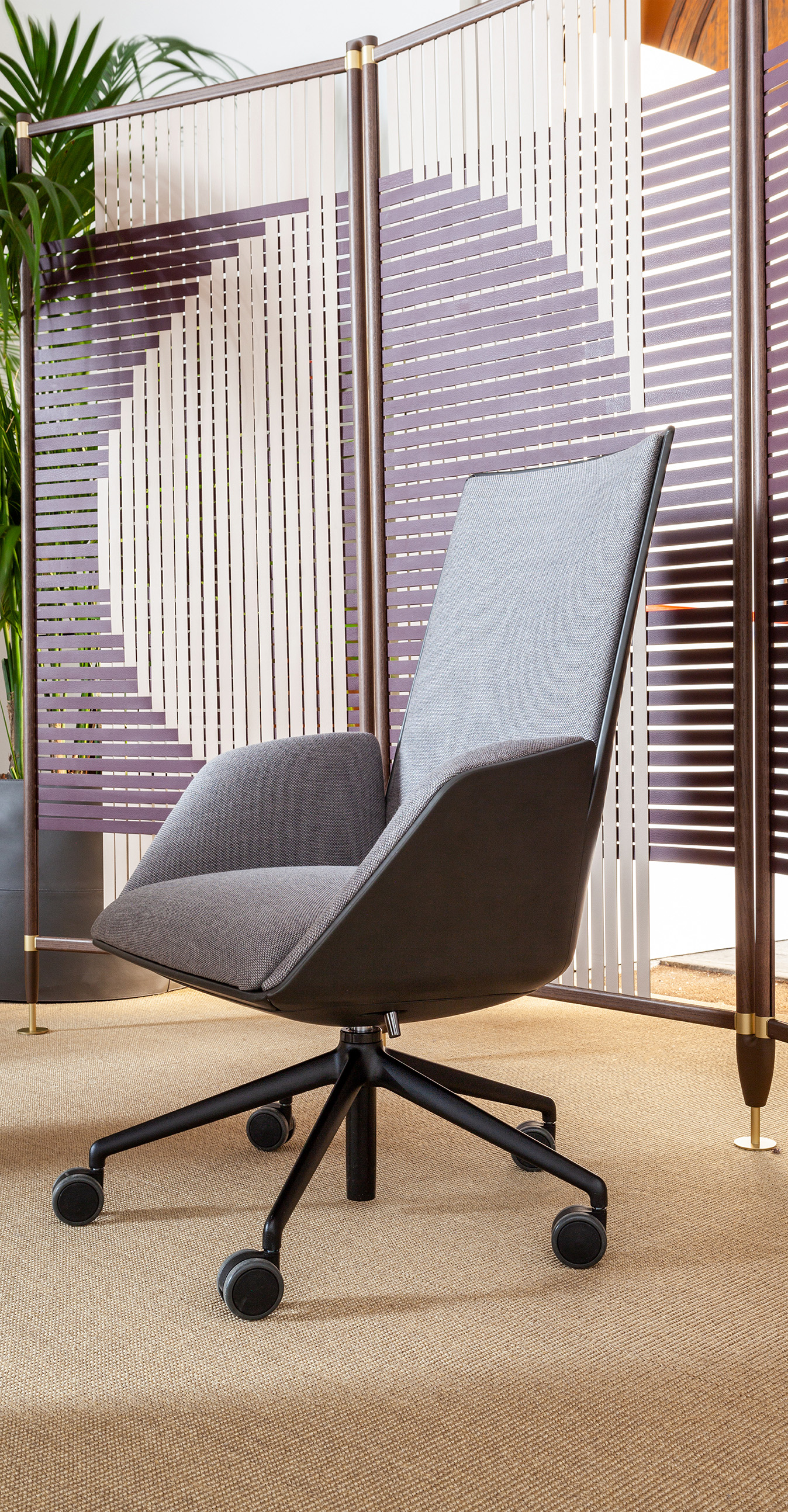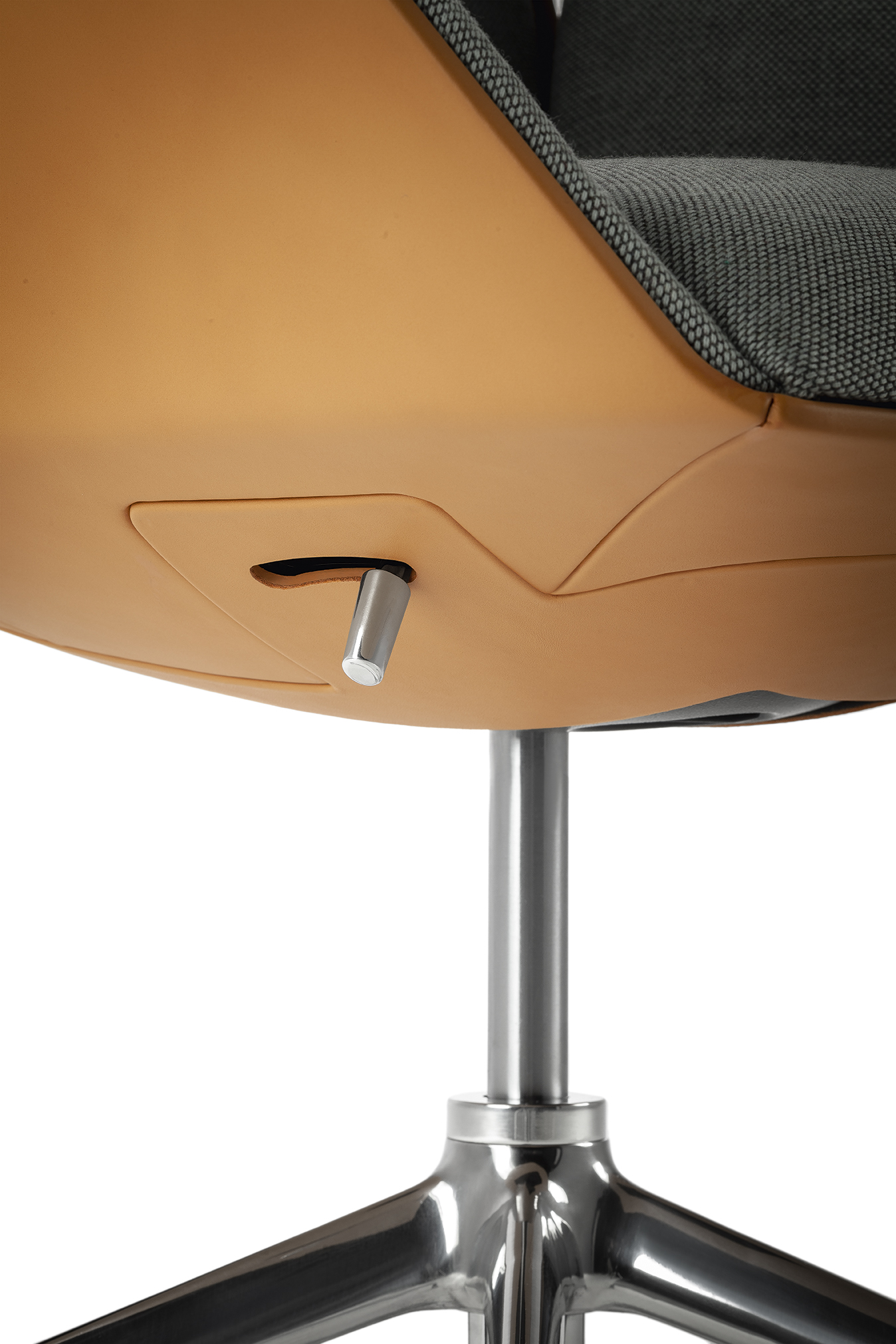 В офисном кресле Cercle эргономические исследования были особенно продвинуты. Синхронизированный механизм интегрирован в монокок и дополнительно оптимизирован компанией Poltrona Frau для обеспечения высочайшего уровня комфорта. Каркас изготовлен из полиуретана с металлической вставкой. Наполнитель выполнен из пенополиуретана с дифференцированной плотностью в наиболее комфортных зонах и прошит полиэстеровой ватой. Основание, выполненное из полированного или окрашенного в черный цвет алюминия, имеет пять спиц и соединительную колонну с корпусом, оснащенную газовой пружиной и окрашенную в тон основания. Офисное кресло Cercle доступно с различными типами подлокотников и может быть полностью обито кожей Pelle Frau® или в версии, сочетающей кожу с внутренней поверхностью и ткань.