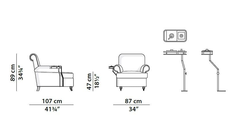 Каркас выполнен из бука и тополя, ножки — тонированные под орех или пескоструйные тёмно-коричневые, с глянцевыми латунными или хромированными колесиками. Наполнение — полиуретан разной плотности с акриловым волокном. Сиденье на блок-пружинах, покрытых полиуретаном. Спинка — на пружинах. Подушки сиденья — из вымытого и стерилизованного пуха с внутренней вставкой из полиуретана. Декоративный кант в тон коже.