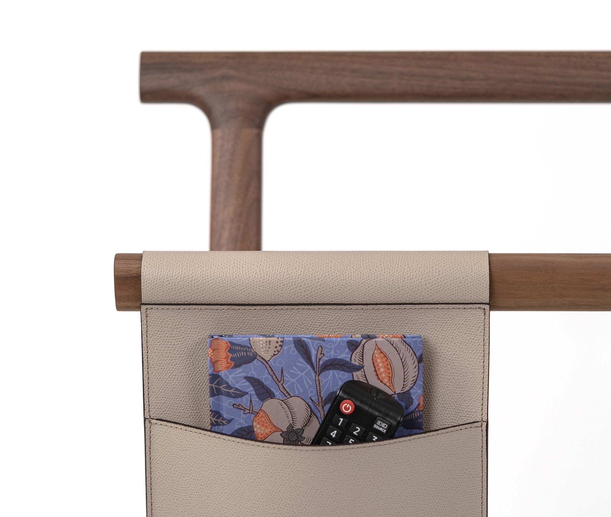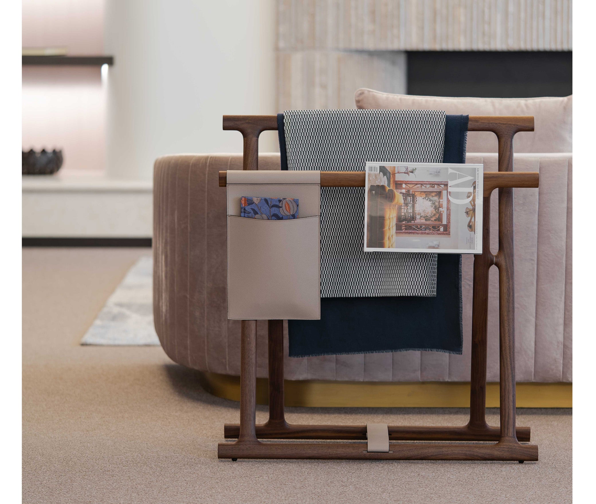 Пледница Chelsea выполнена из прочного орехового дерева и дополнена съёмным кожаным карманом — идеальное решение для любого уголка, которому не хватает изящного штриха.