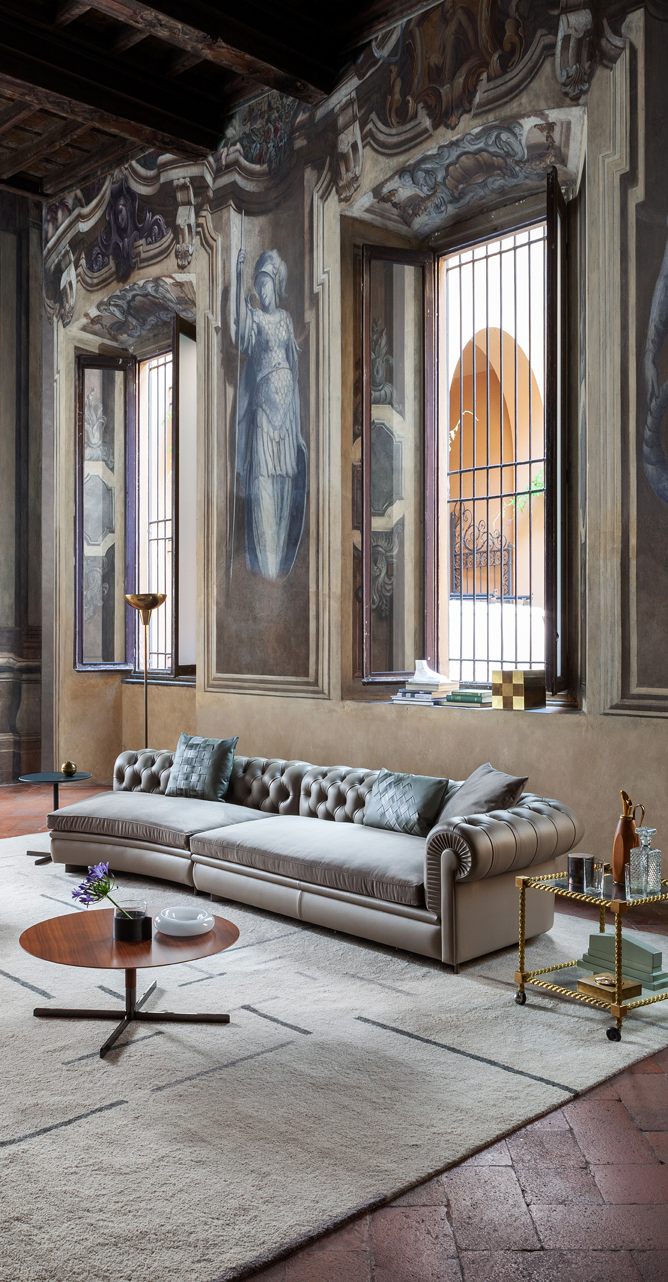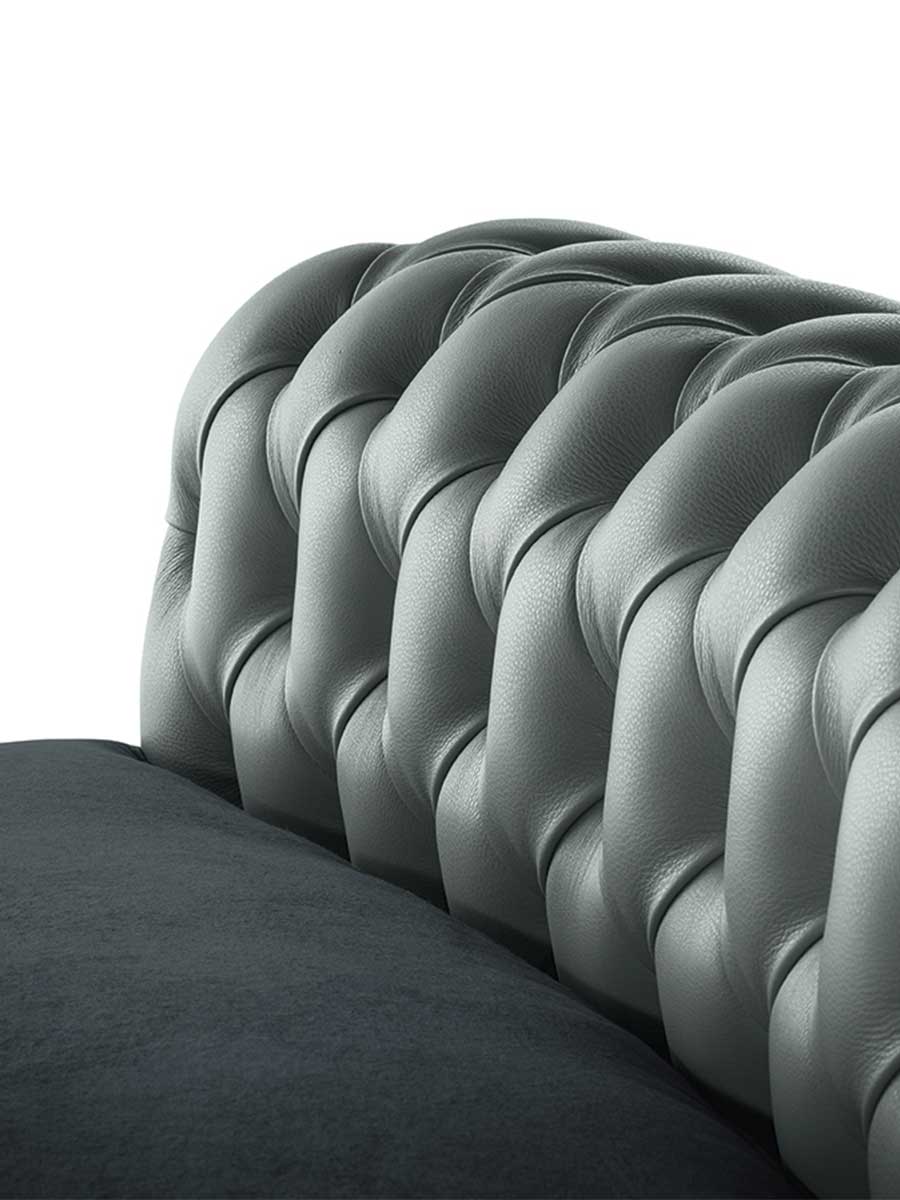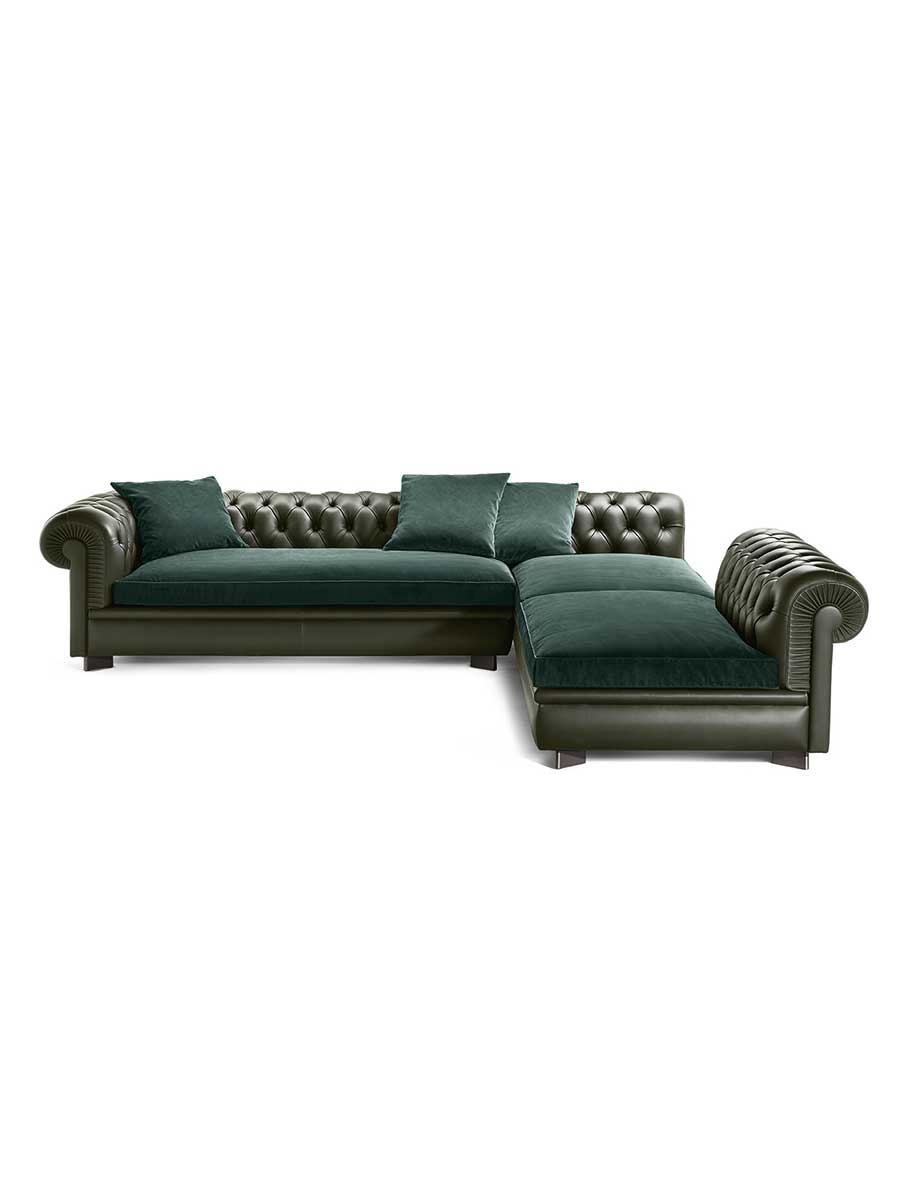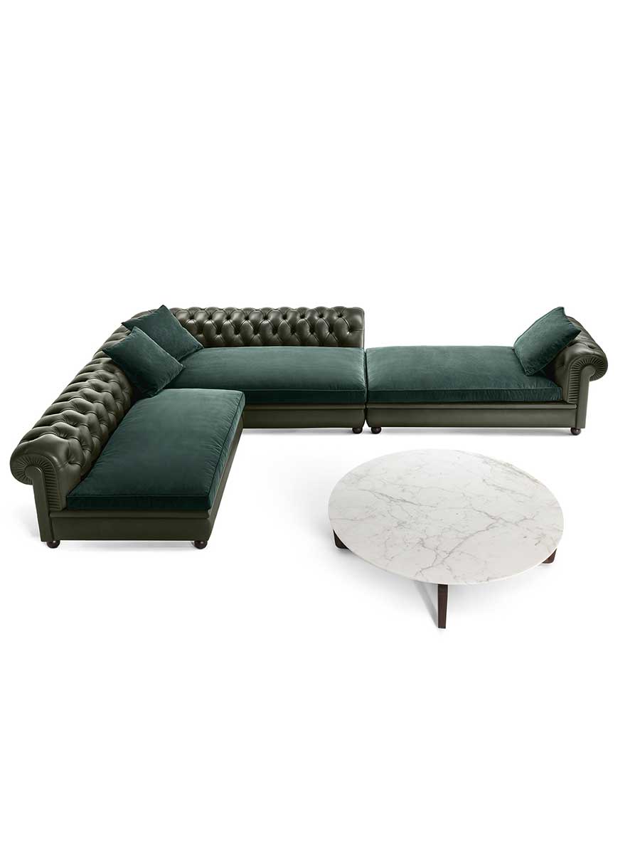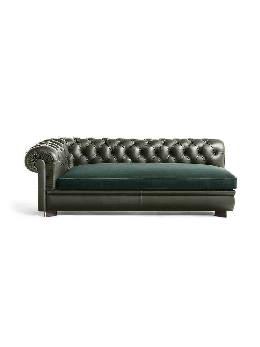 Каркас дивана Chester Line изготовлен из массива выдержанного бука. Подвеска сиденья, спинки и подлокотников выполнена на двухконусных пружинах ручной сборки, опирающихся на джутовые ремни. Наполнитель спинки и подлокотников – конский волос растительного происхождения, сформированный вручную. Подушки сиденья набиты гусиным пухом с дополнительной стабилизирующей вставкой из пенополиуретана. Обивка выполнена из материала Pelle Frau®, который можно комбинировать с тканями Poltrona Frau в различных сочетаниях. Ножки доступны в различных размерах и отделках.
