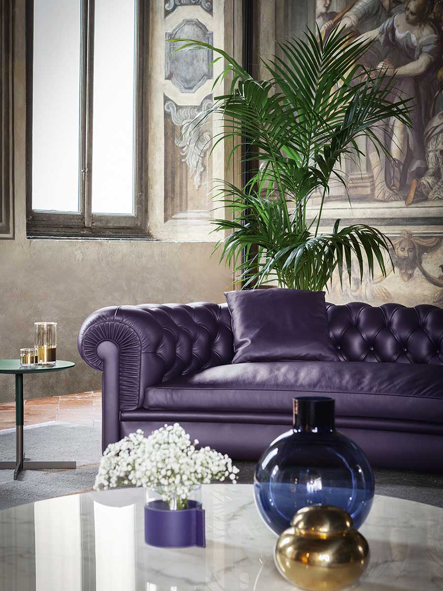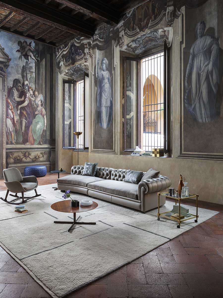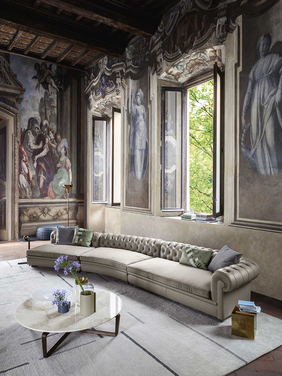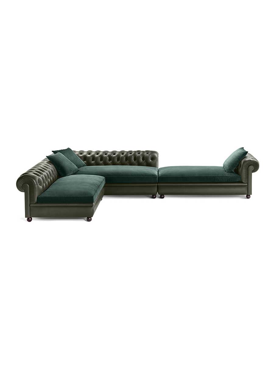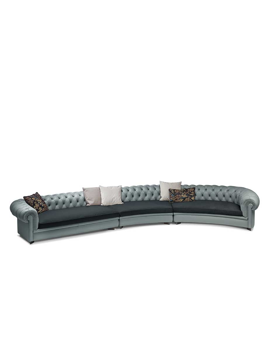 Каркас дивана Chester Line изготовлен из массива выдержанного бука. Подвеска сиденья, спинки и подлокотников выполнена на двухконусных пружинах ручной сборки, опирающихся на джутовые ремни. Наполнитель спинки и подлокотников – конский волос растительного происхождения, сформированный вручную. Подушки сиденья набиты гусиным пухом с дополнительной стабилизирующей вставкой из пенополиуретана. Обивка выполнена из материала Pelle Frau®, который можно комбинировать с тканями Poltrona Frau в различных сочетаниях. Ножки доступны в различных размерах и отделках.