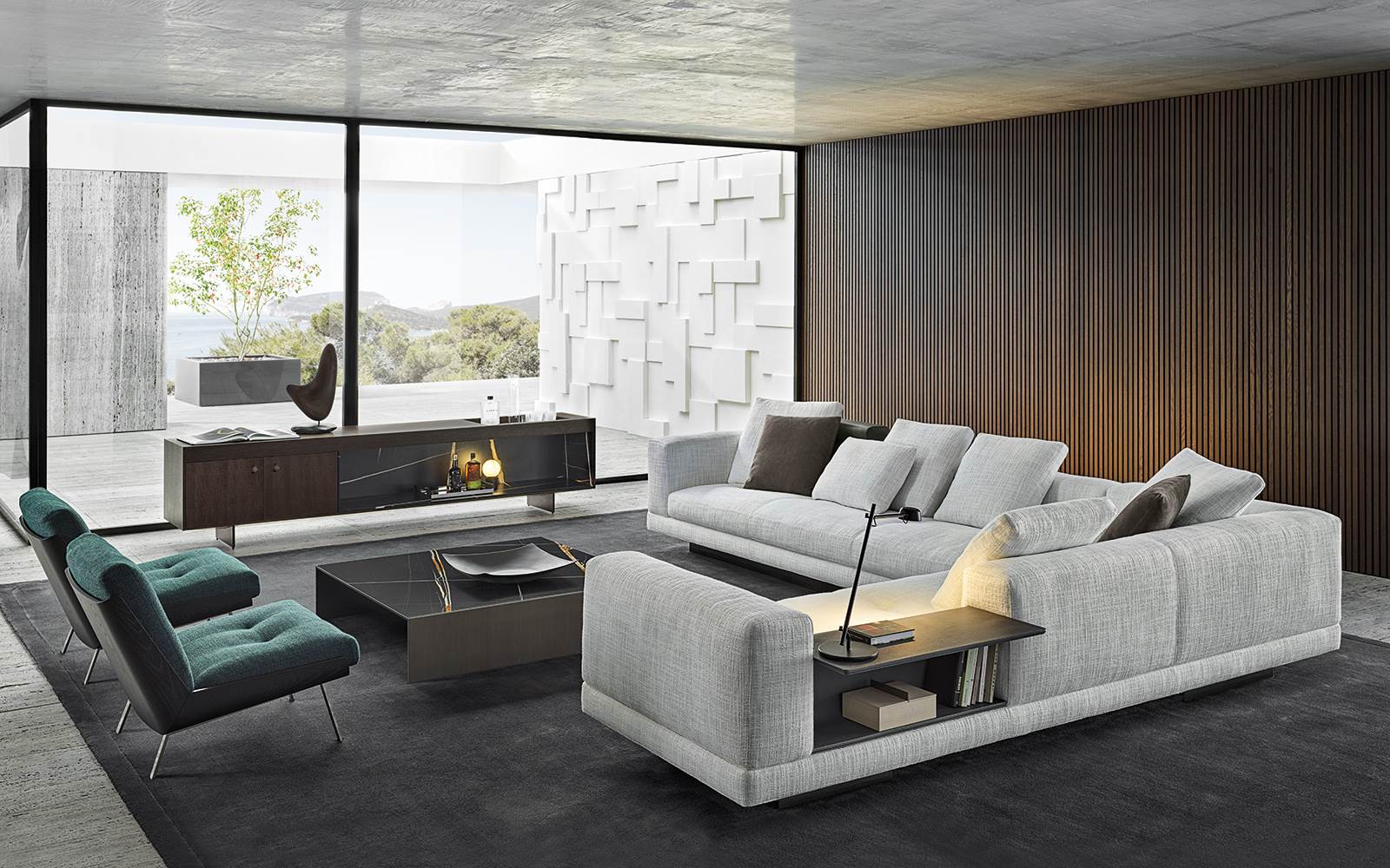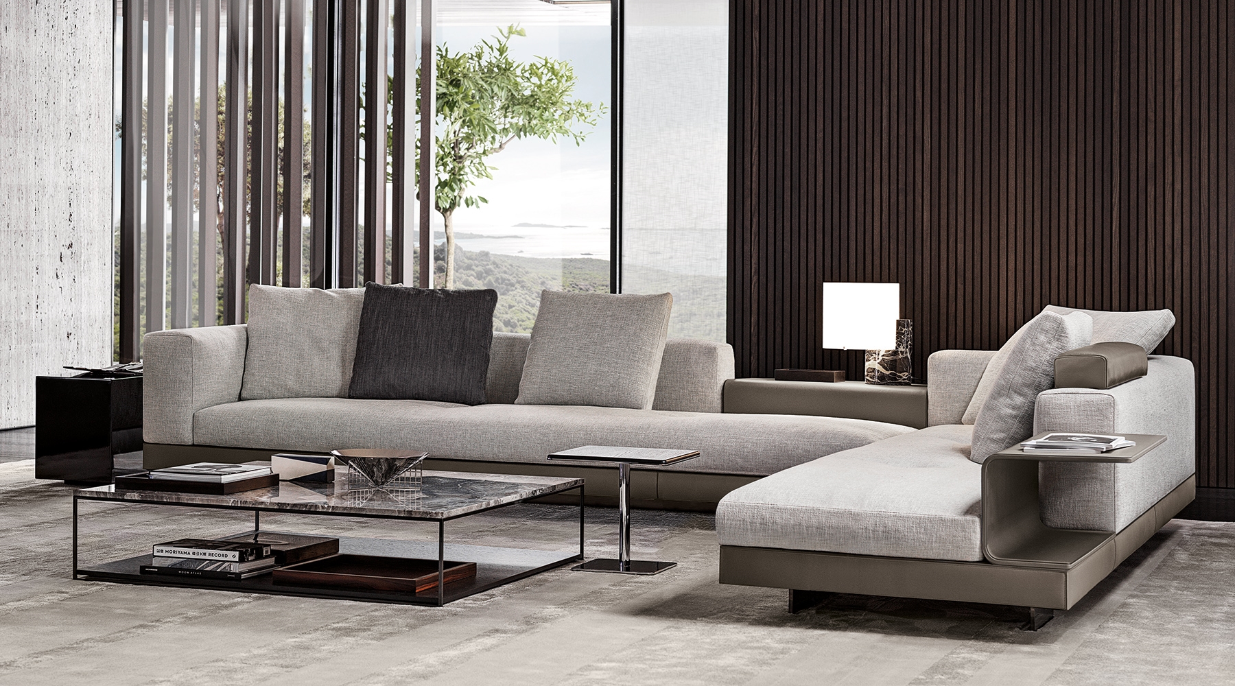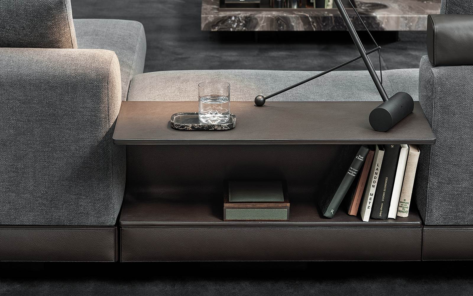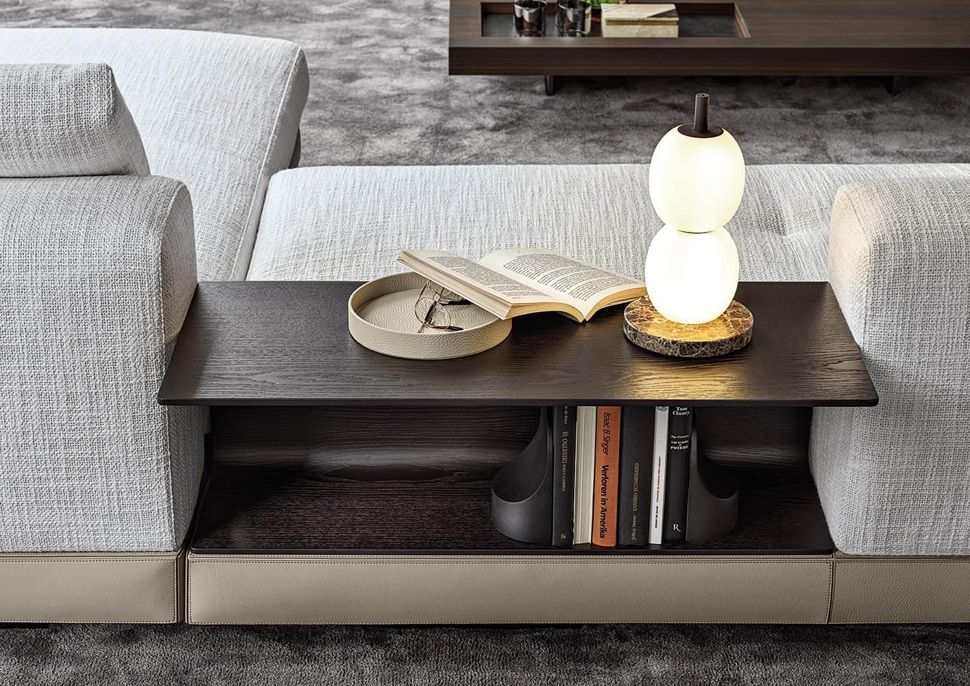 Серия столиков Connery включает разнообразные формы — от небольших приставных моделей до полноценного журнального центра. Эстетика выдержана в духе коллекции Connery: минимализм, архитектурность и дорогие материалы.