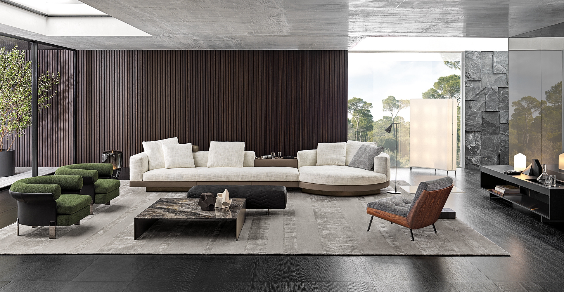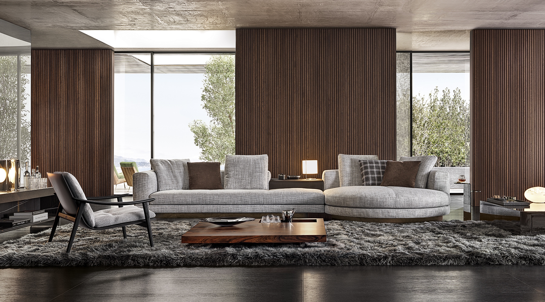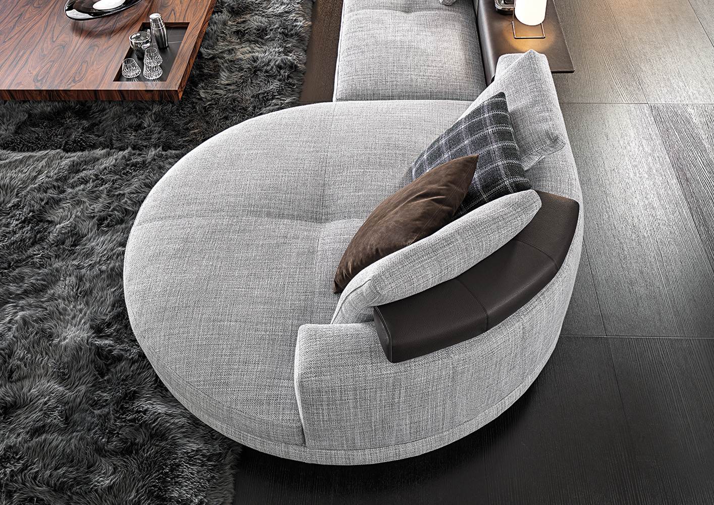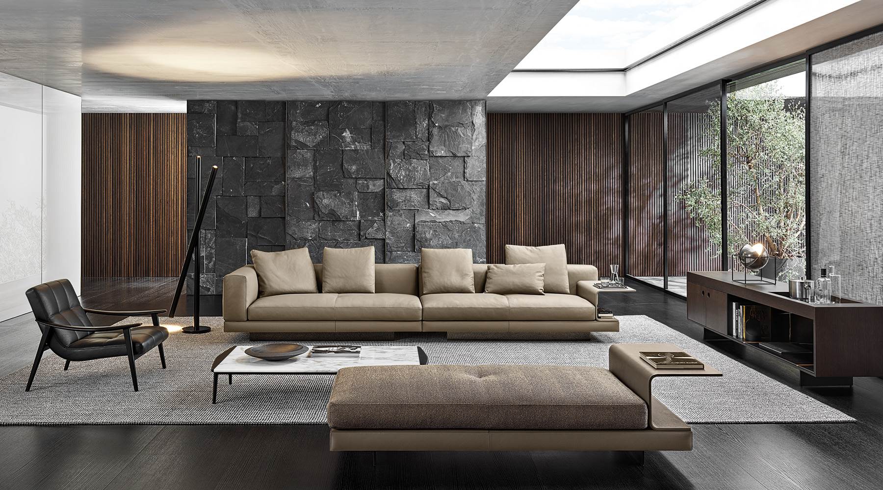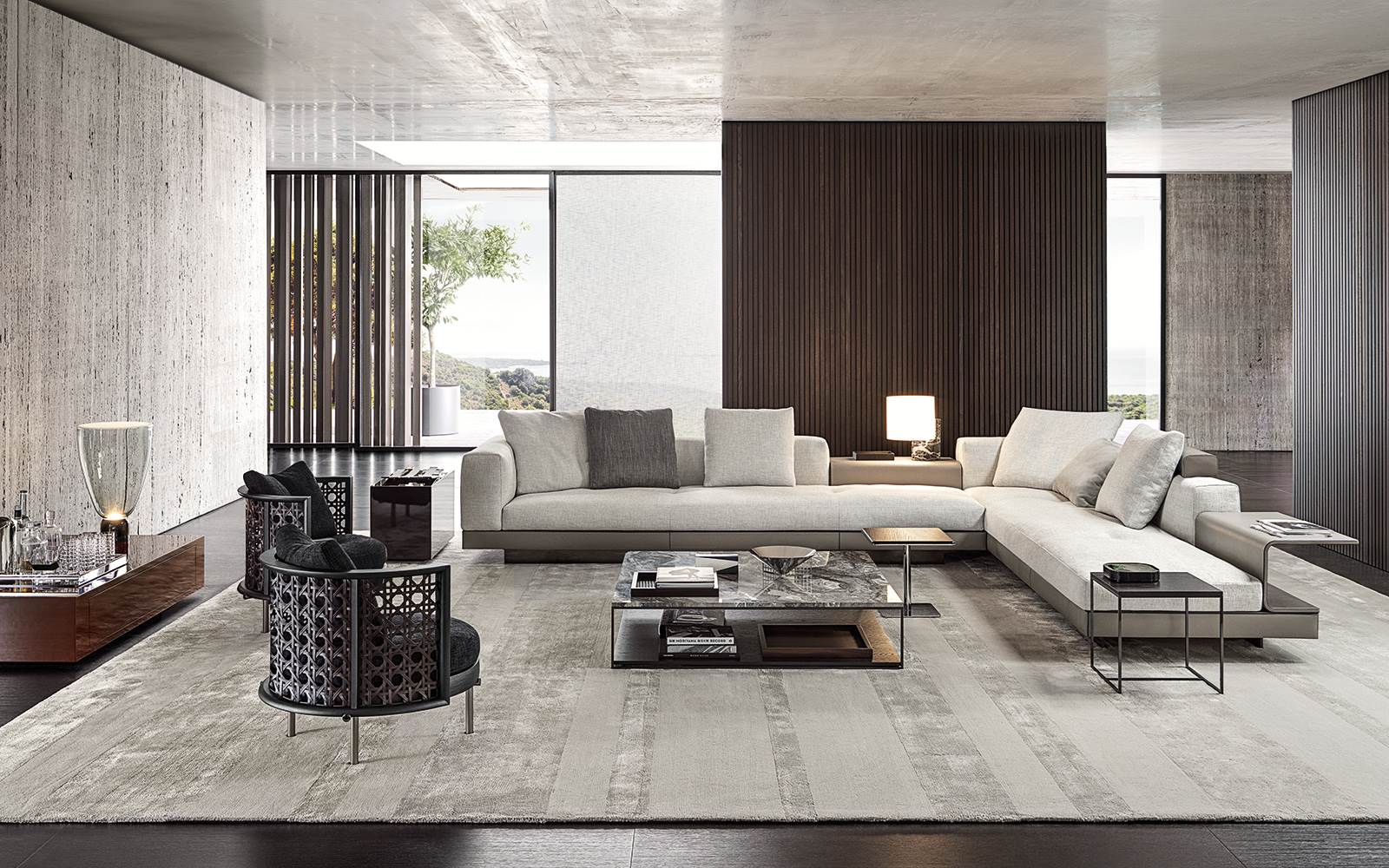 Серия столиков Connery включает разнообразные формы — от небольших приставных моделей до полноценного журнального центра. Эстетика выдержана в духе коллекции Connery: минимализм, архитектурность и дорогие материалы.
