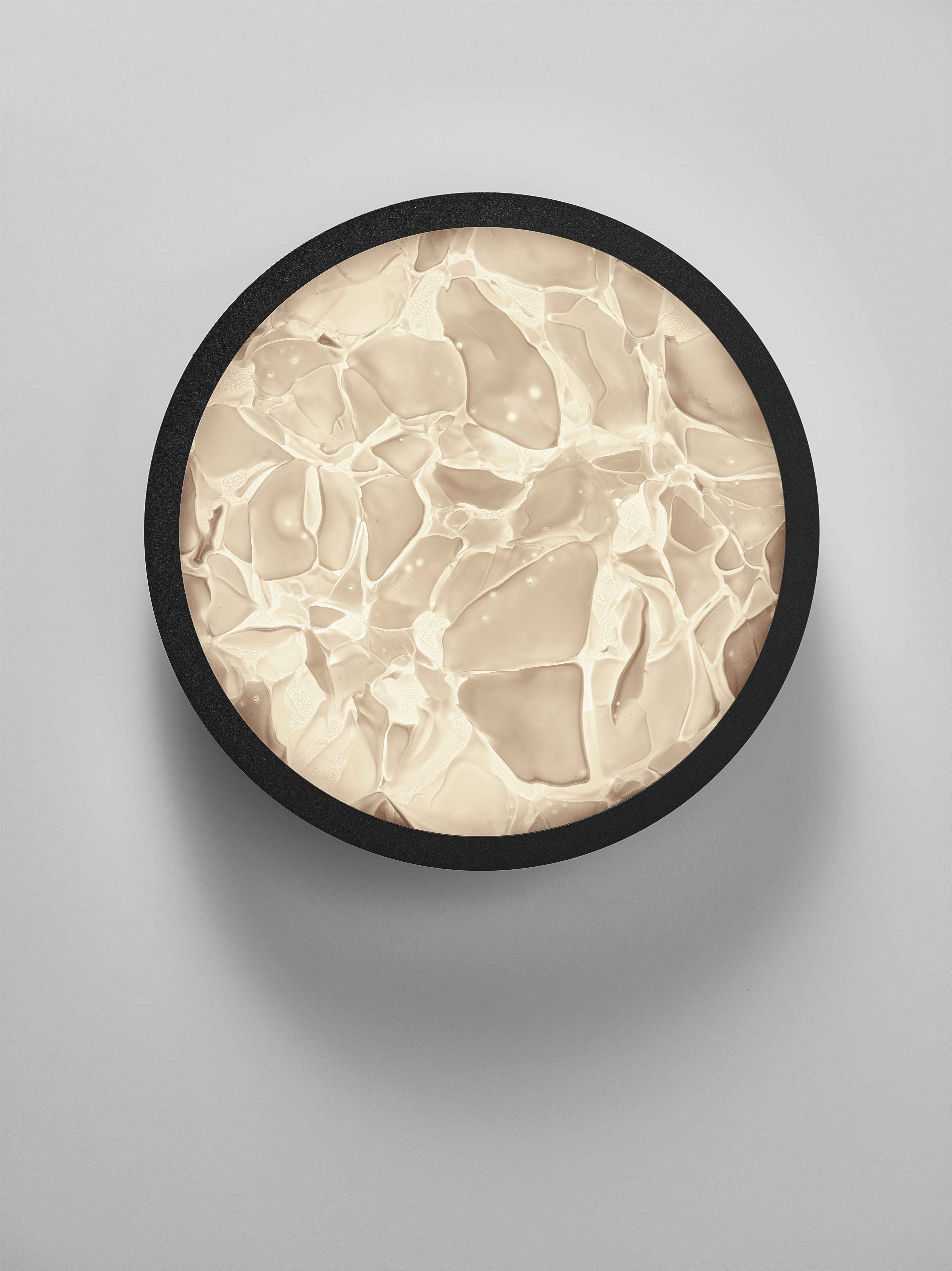 Источник света деликатно рассеивается через стекло, усиливая глубину и многослойность материала.