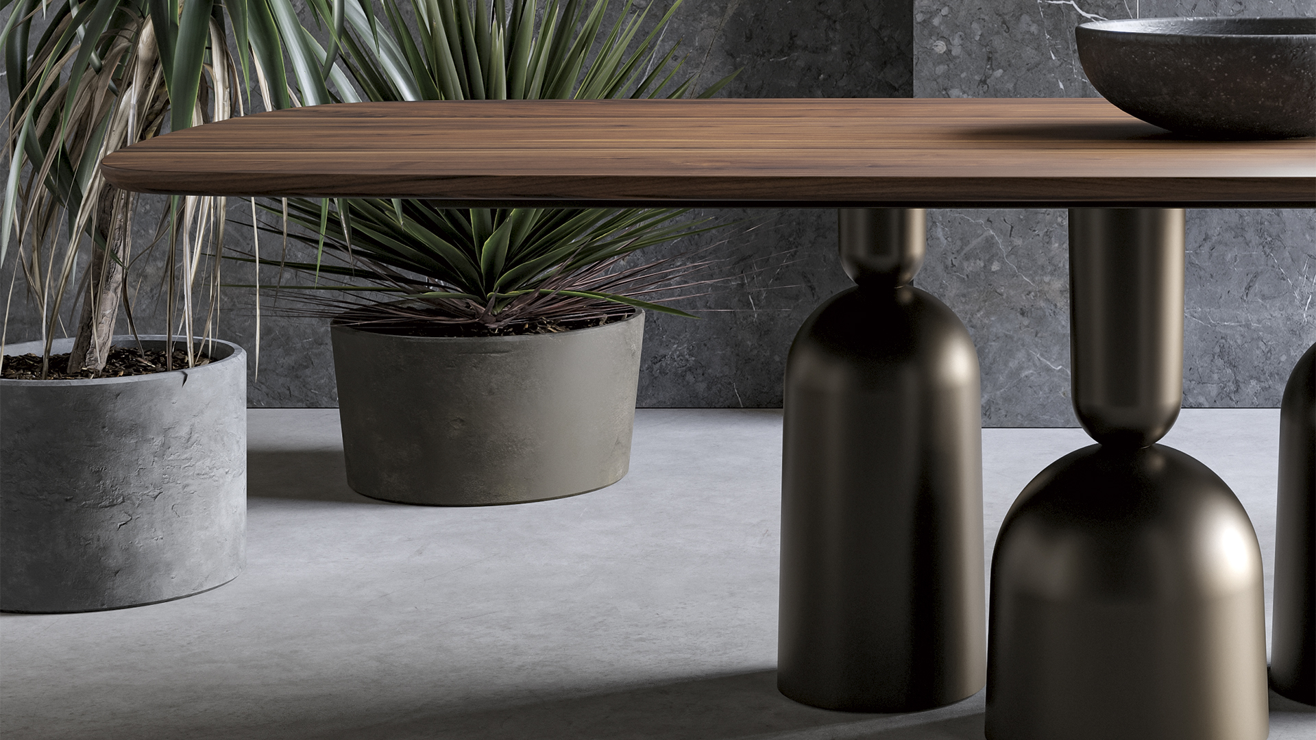 Дизайн стола строится на гармонии плавных линий и тщательной проработке формы. Он задуман как место встречи — людей, идей, взглядов.