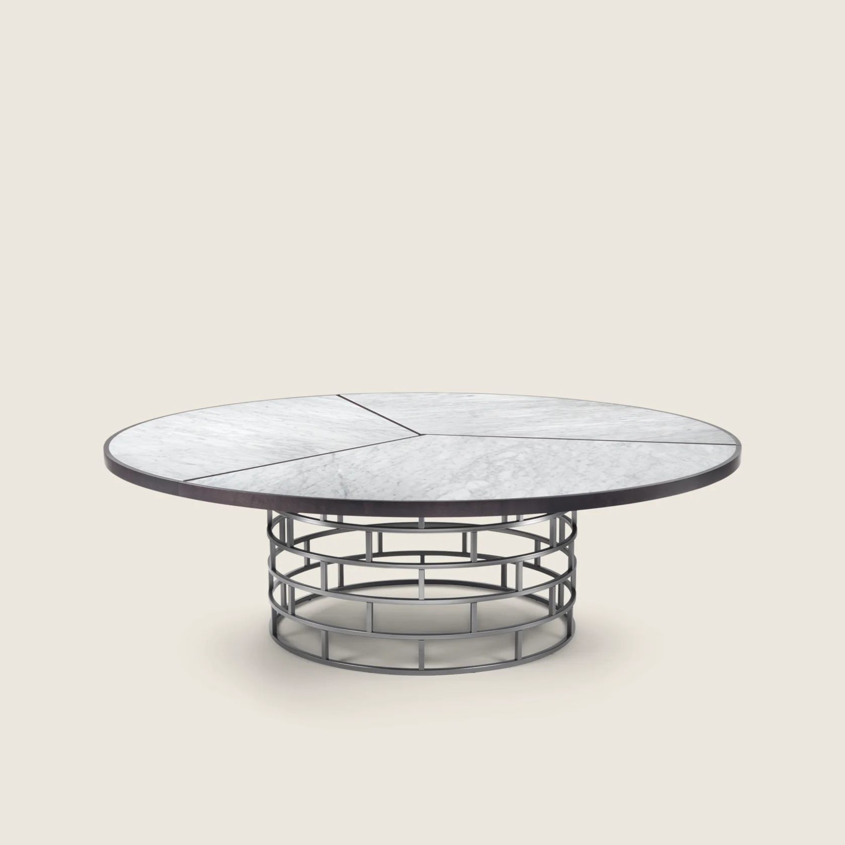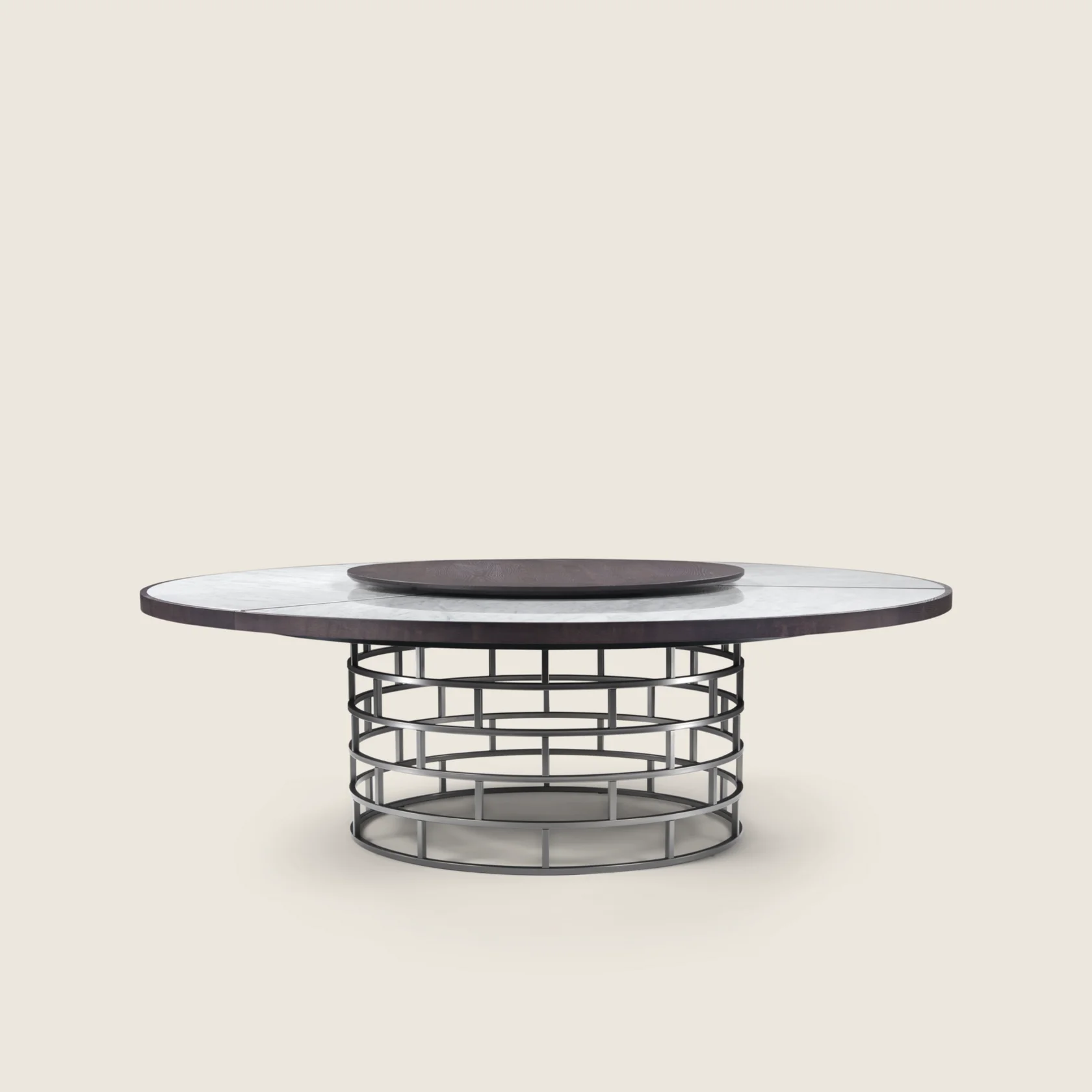 Crown — элегантный круглый стол с уникальной геометрией, сочетающий изысканность и функциональность.